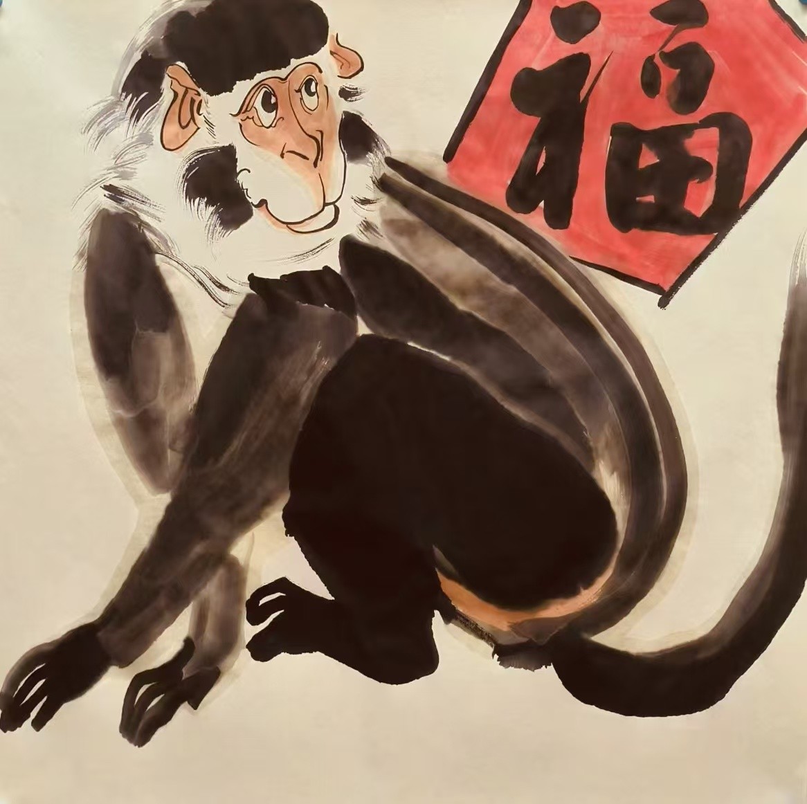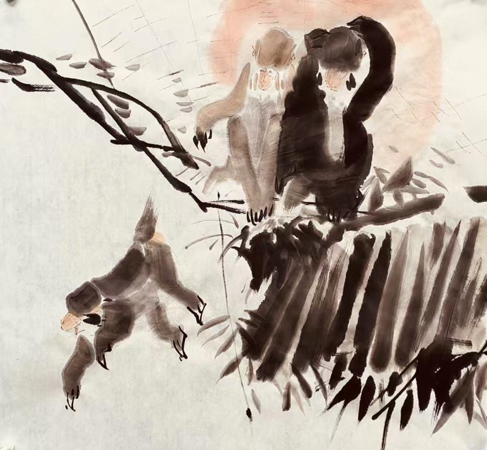 任予民擅长作水墨美猴,10米长券在2010年世博会展出被外国友人收藏;
