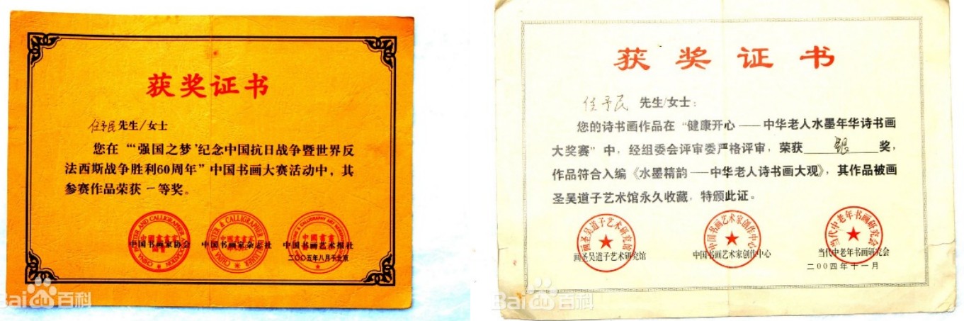 9《疏影清风舞月夜 暗香浮动水云间》在上海市中西美术融合协会主办的首届“任伯年杯”全国书画大展赛中获银奖;