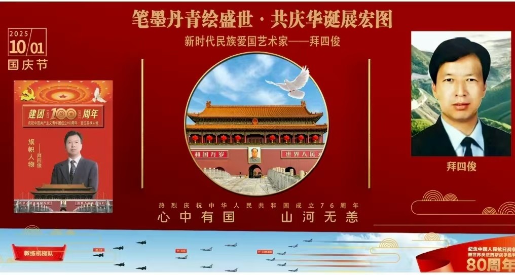 2025年,入选决策中国栏目联合中国影响力人物数据库编撰出版“蛇年大吉 万事如意——2025行业影响力人物”典藏挂历12人(拜四俊、陈薇、范曾、李振声、苏炳添、张挂梅、任正非、莫言、王传福、王亚平、张伯礼、张卓元)之首;中央电视台国际书画频道栏目特别推荐乙巳蛇年重点艺术家:拜四俊,以灵蛇岁月 喜迎元旦为题,对他进行了视频报道;中国科学文化出版社出版发行了《大国榜样》专刊第9版。