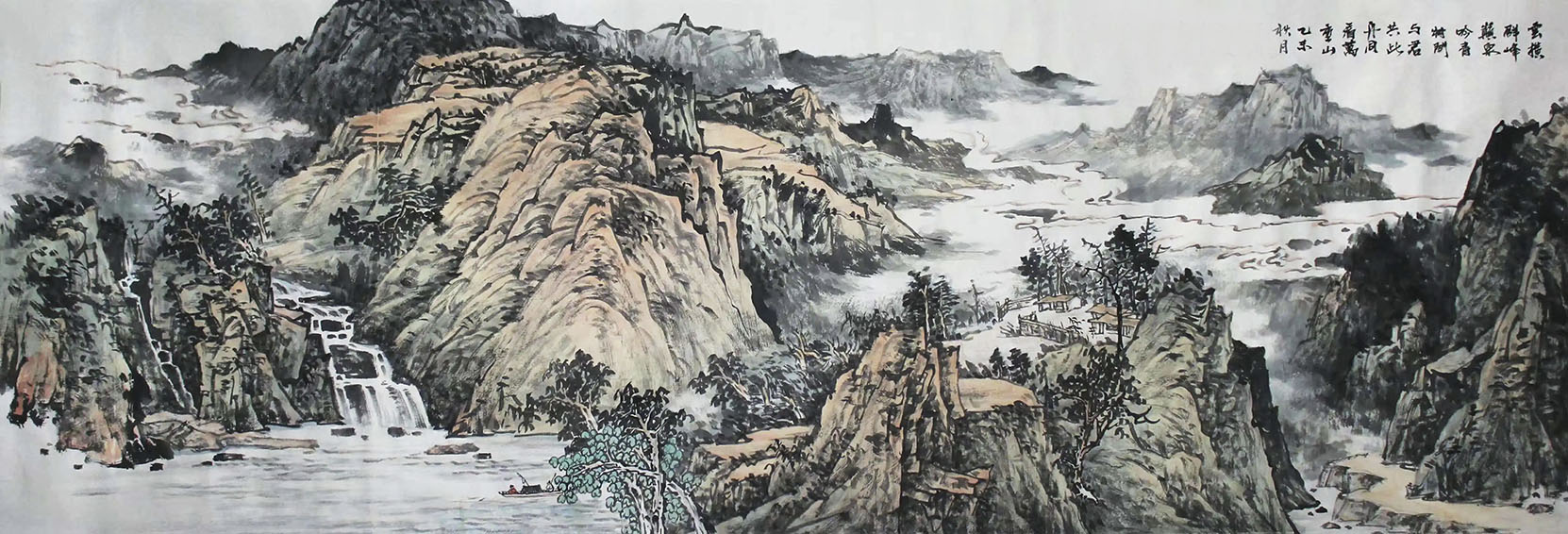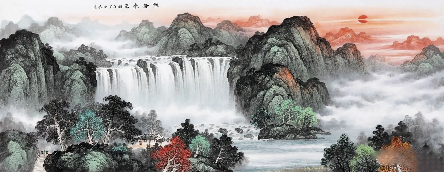 在传统丹青艺术中,唯有山水题材的渊源最为高古!在山水的创作上,景宇刚先生是极重视于对自然的体悟和把握,尤其是在山水画的深层内蕴上,他更是善于对其进行深度的挖掘和展现!画中那高度的山水形态和浑然意境,可谓皆是悉收笔底,尽展无遗!其作中风格是融合了传统的水墨写意和现代的墨彩审美,画中山水具传统而又不失于意象,具灵动而又不失于法度!实谓尚古求新,独显个性!众幅山水作品具高雅之情怀,更具时代之审美!