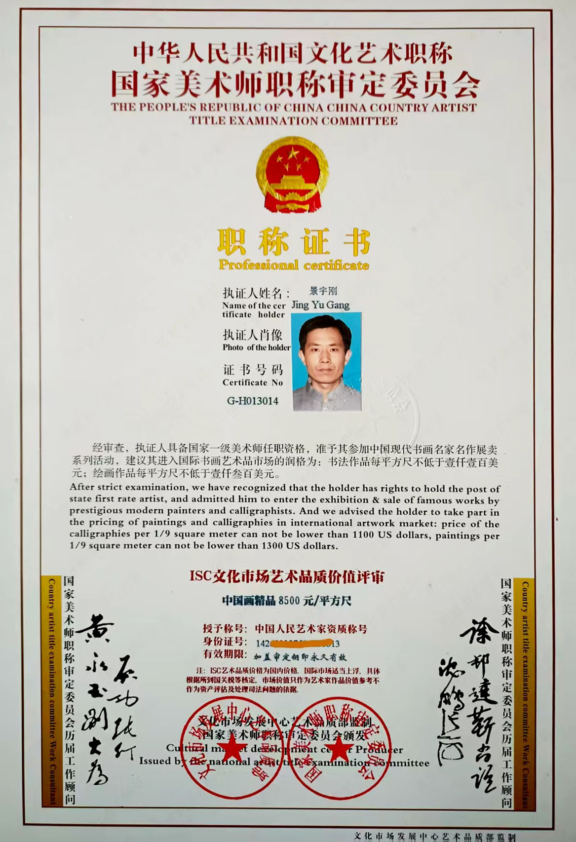 经专业润格评估机构评定其作品润格: