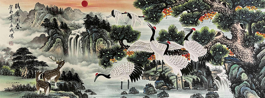 钱立成 鹤鹿同春