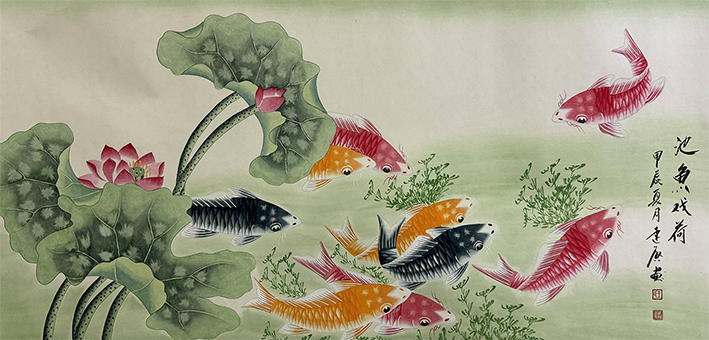 王连启 池鱼戏荷