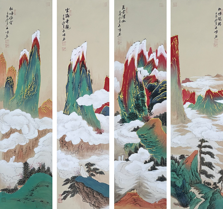 苑承峰 松夏云峰图(四条屏)