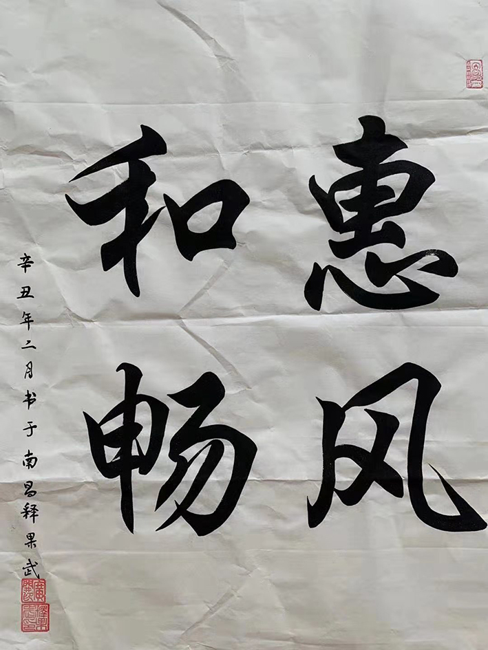 释果武,男,汉族,学历,硕士研究生,中国中央机关书法家协会会员,国家一级美术师,画家一级书法师,香港文联美术家协会理事,中国华夏万里行书画家协会副会长,中国国际书画交流协会副会长,陕西盛唐书画研究院副院长,新建区政协委员,南昌市佛教协会副会长。新建区佛教协会会长,江西省南昌市新建区佛禅寺住持。