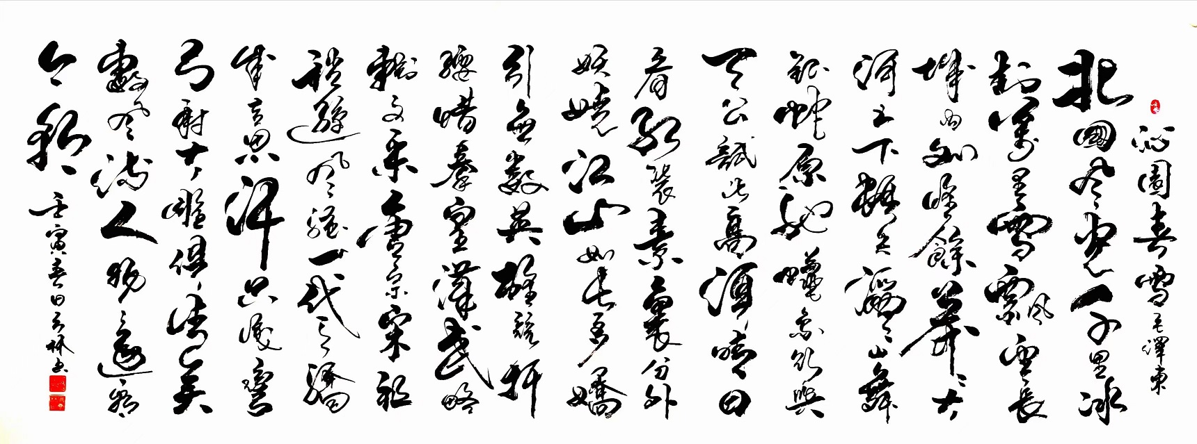 新世纪时代:历经岁月洗礼,已至知天命之年,先生书法写出知天命的味道,书法带有容纳众生佛道之意。顺天意行天笔,笔随意动,意在笔先,已为上上品。无论功底技法笔法无不透露着浓厚的沧桑感自然感,犹如天成,著名书法家沈鹏老师称先生书法透佛义,含佛理,有神韵,显秀丽,谓之禅宗神秀体,观云林书法可修心养性。