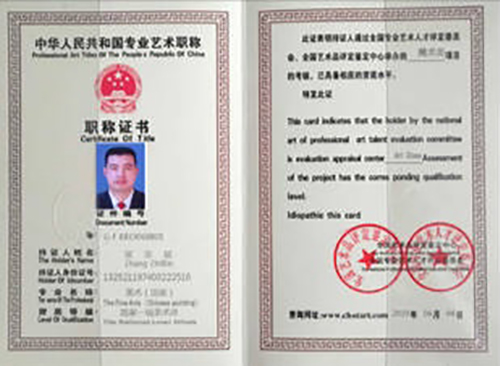 头 衔:中国实力派青年书画家, 中国水墨画世界非遗文化传承人, 中国文化促进会会员,中国美术家协会会员; 中国文旅部授予国家高级美术师职称,一级美术师; 国务院中南海国礼艺术家,北京美协,河北美协会员; 西班牙皇家艺术协会理事,中国硬笔书法家会员; 中国楹联协会理事,中国诗歌会员,中华诗词协会会员, 中国书画家联谊会理事,香港文联美协理事, 人民艺术家网长期签约艺术家、中国硬笔书法协会会员, 北京心海艺术研究院高级研究员,顾问。 “中国民族建筑“杂志签约画家作家,”中华文学“”签约作家