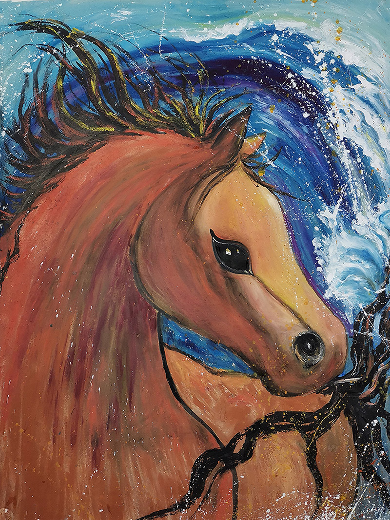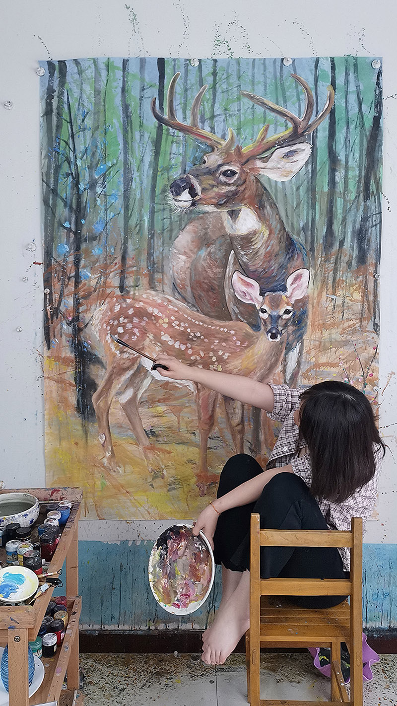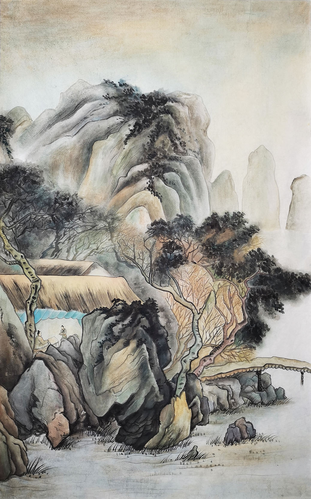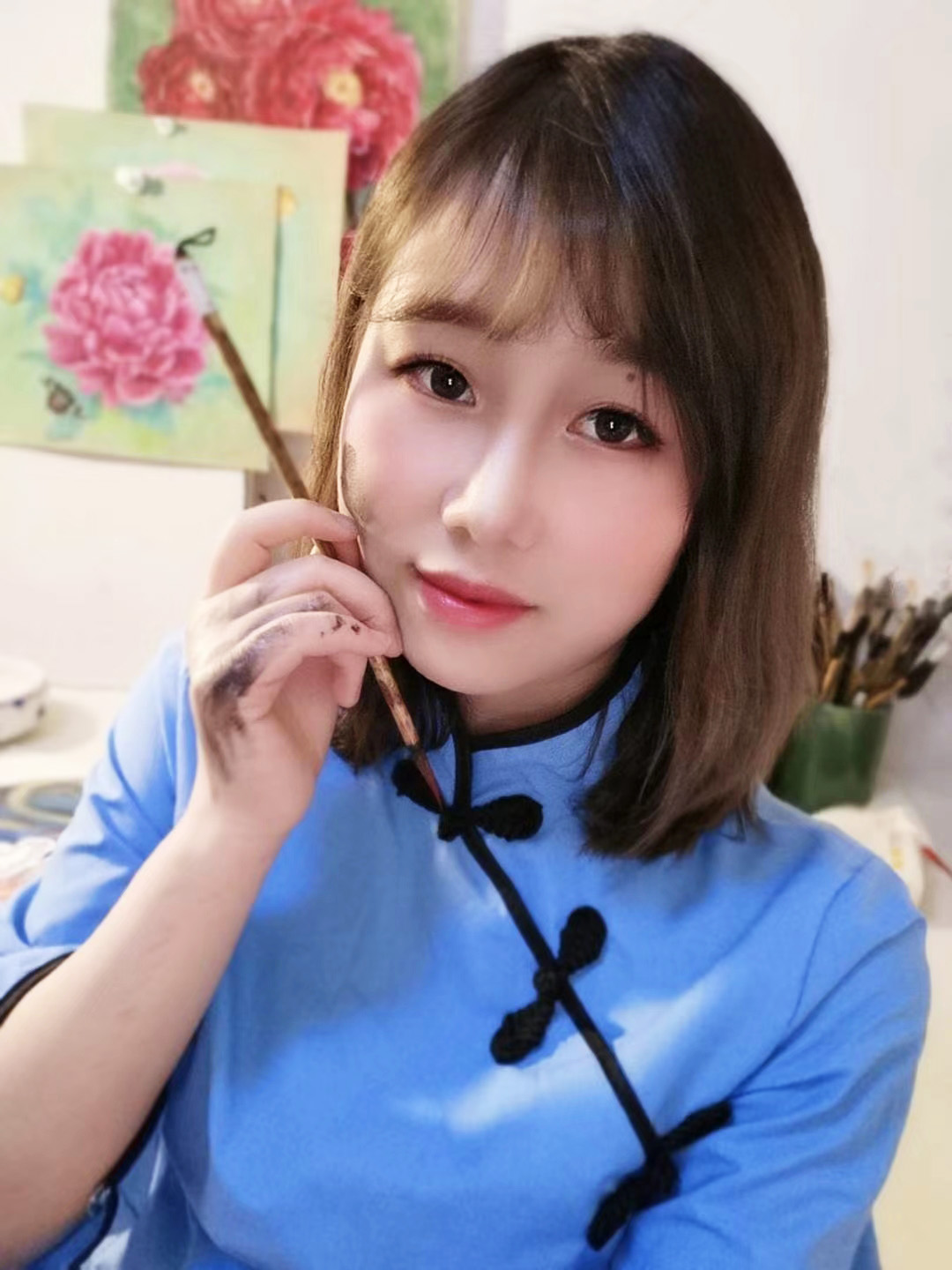 擅长中国画。人物、动物、山水、花鸟皆精。