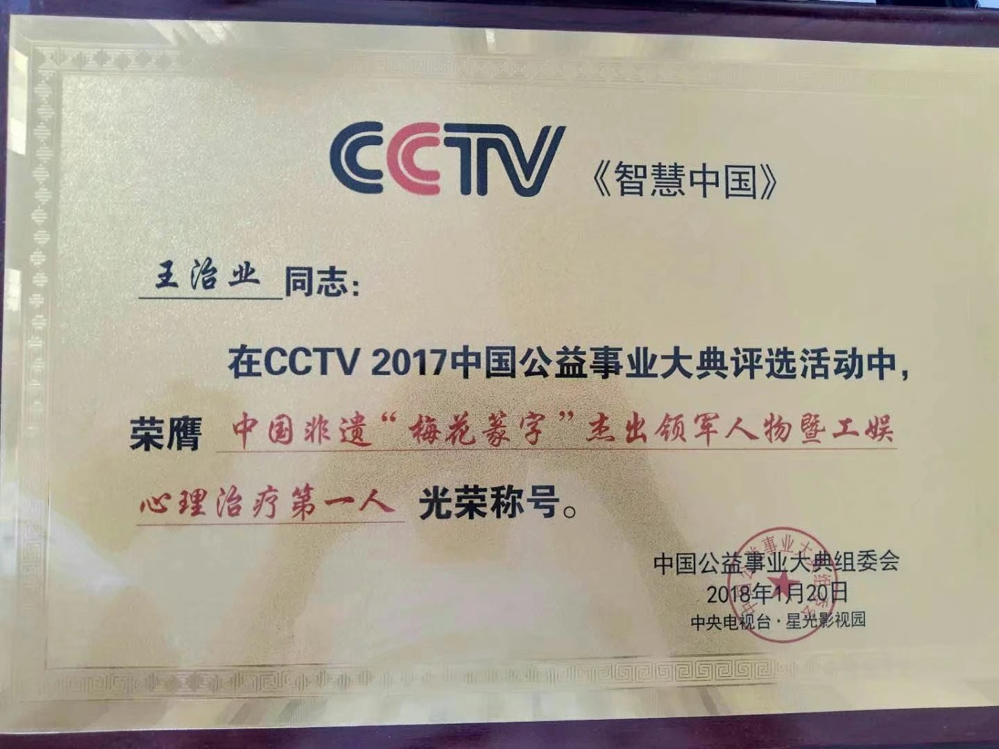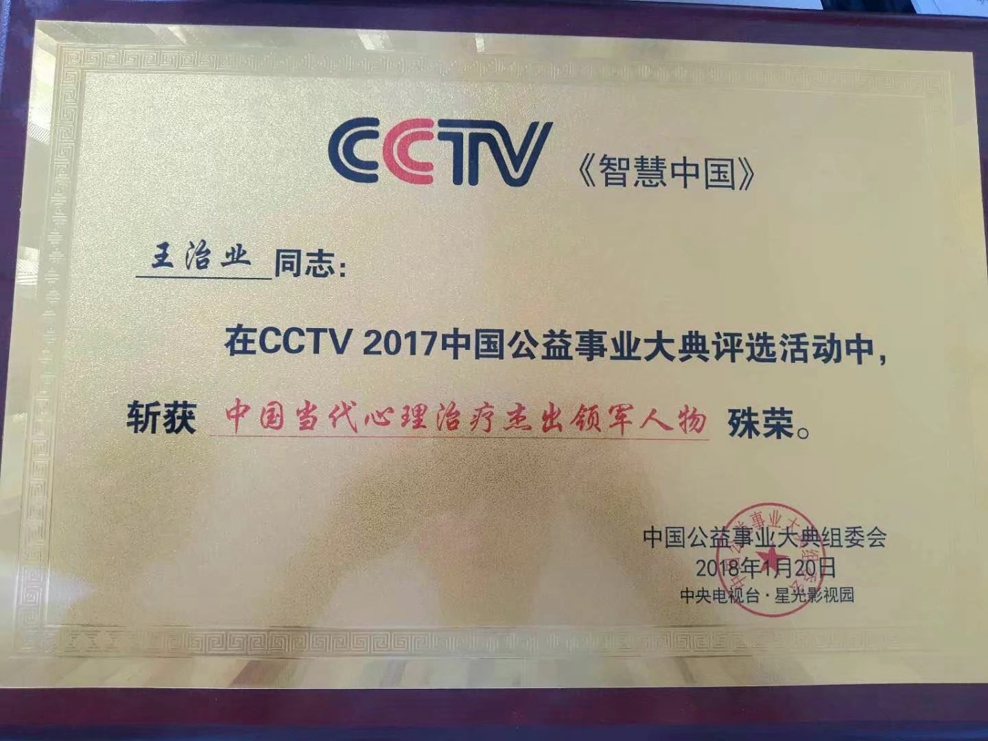 曾在国家年度公益事业大典上被央视评定及授予“中国国家心理治疗杰出领军人物”、