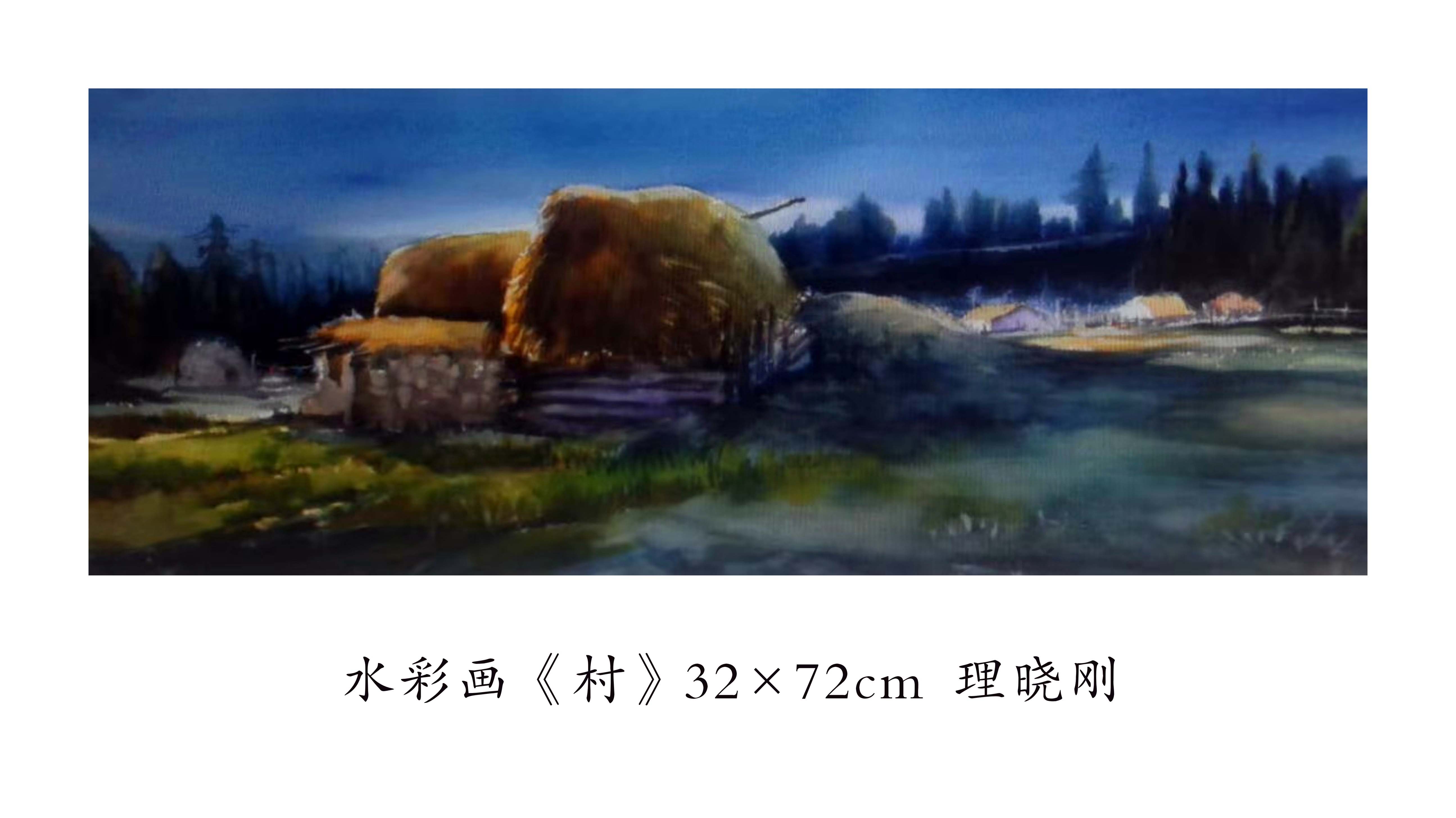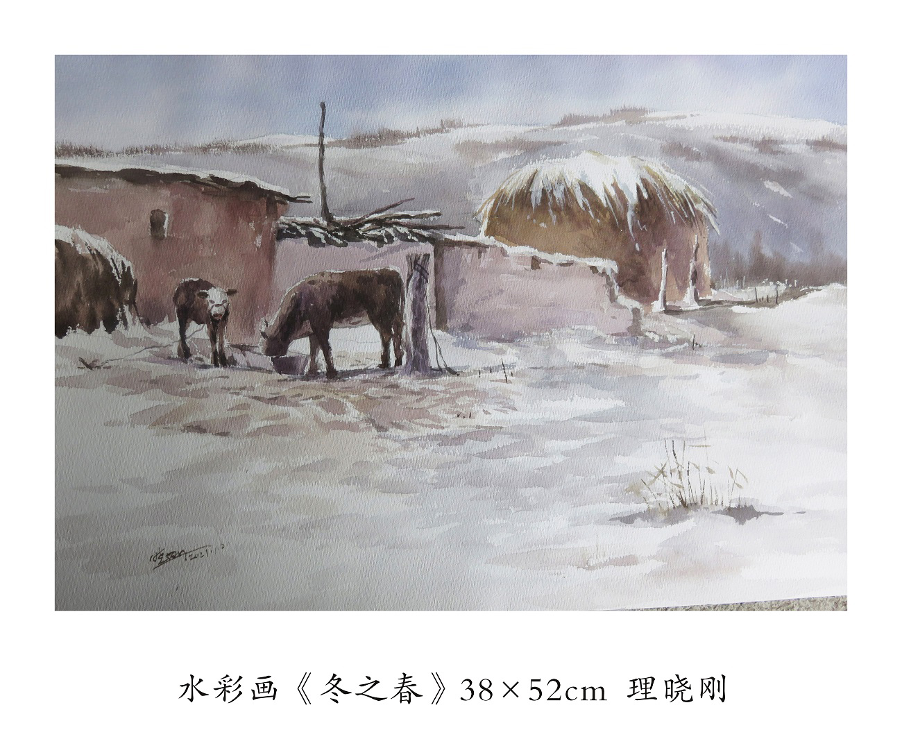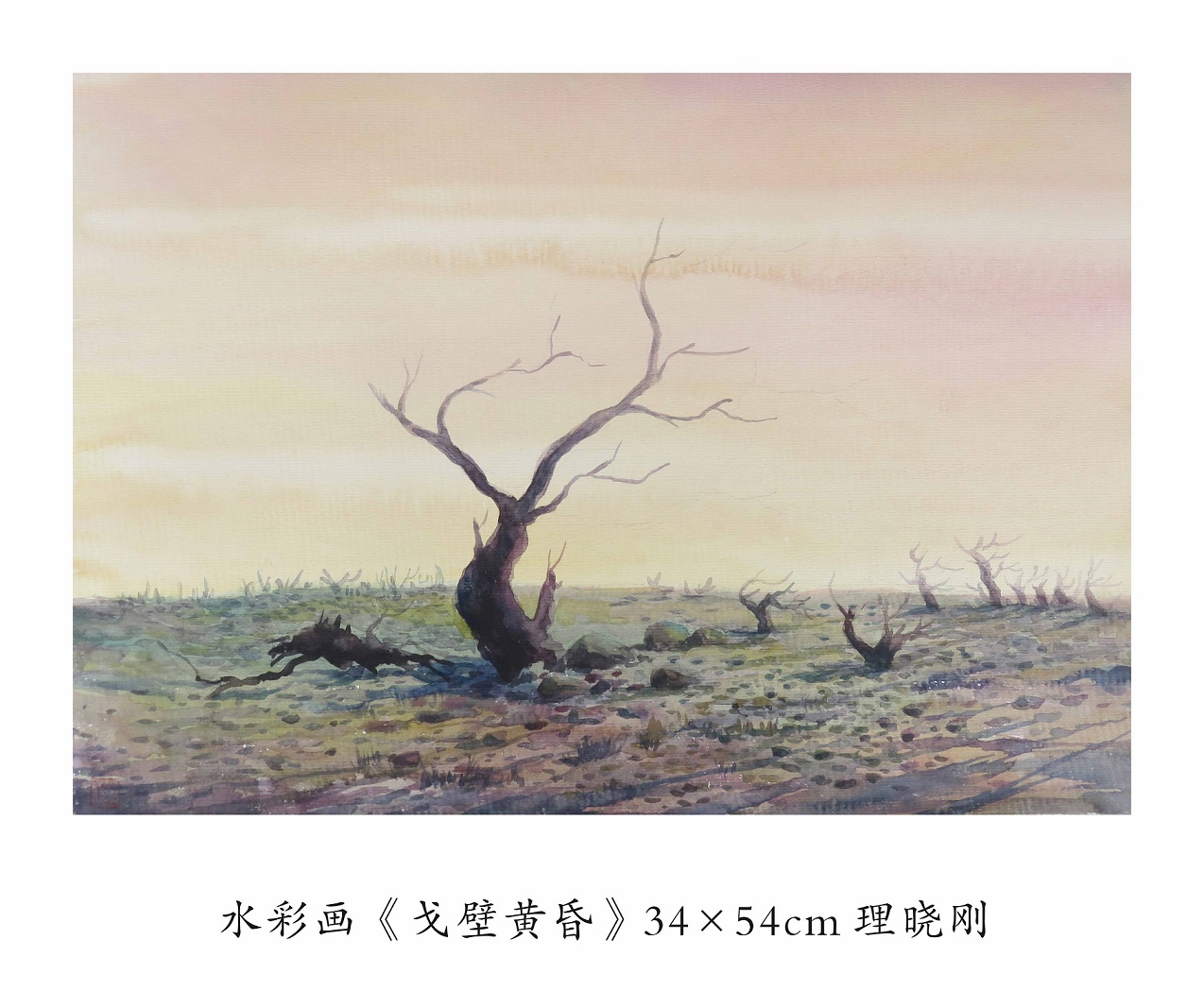 作者理晓刚是兵团的第二代人,经历了六十年代到目前的2020年,可以说:风风雨雨、坎坎坷坷,这些经历与绘画一但联系起来,他的水彩画艺术就不难理解了,比如他的《黄昏.白哈巴》、《戈壁雪情》等水彩画表达了画家非常安静、神密的一种情怀,作者常用这种黄昏下的光色变化来表达这种西北大自然的顺间美感,这与画家的性格特征也非常吻合,在他的作品里基本没有阳光下的热闹场景及蓝天白云下的激情画面等等,