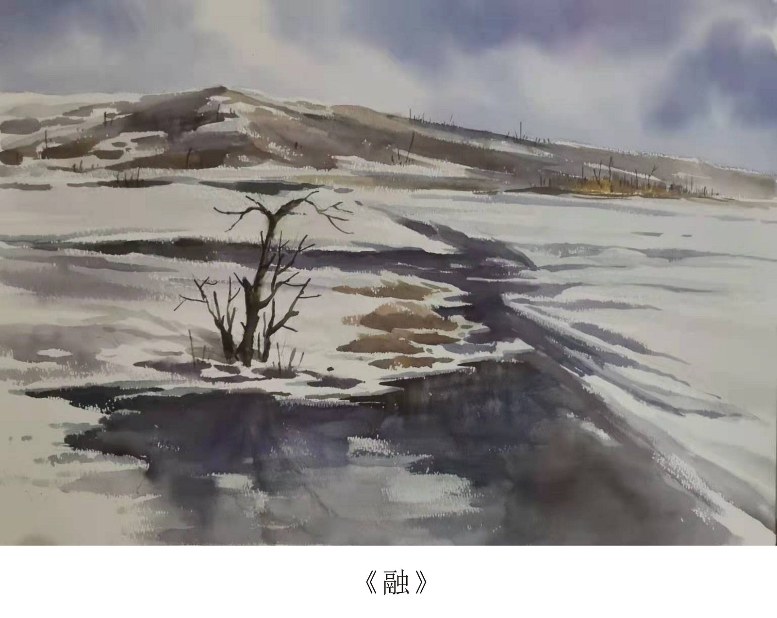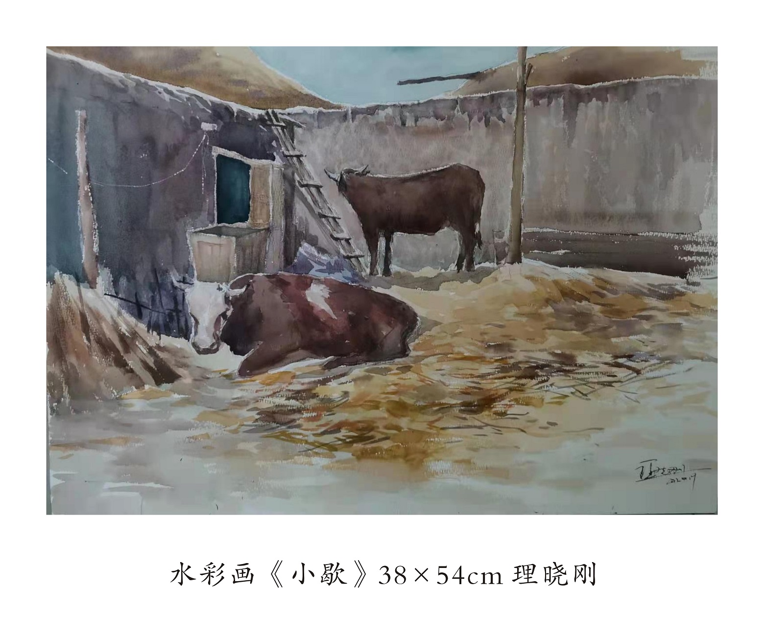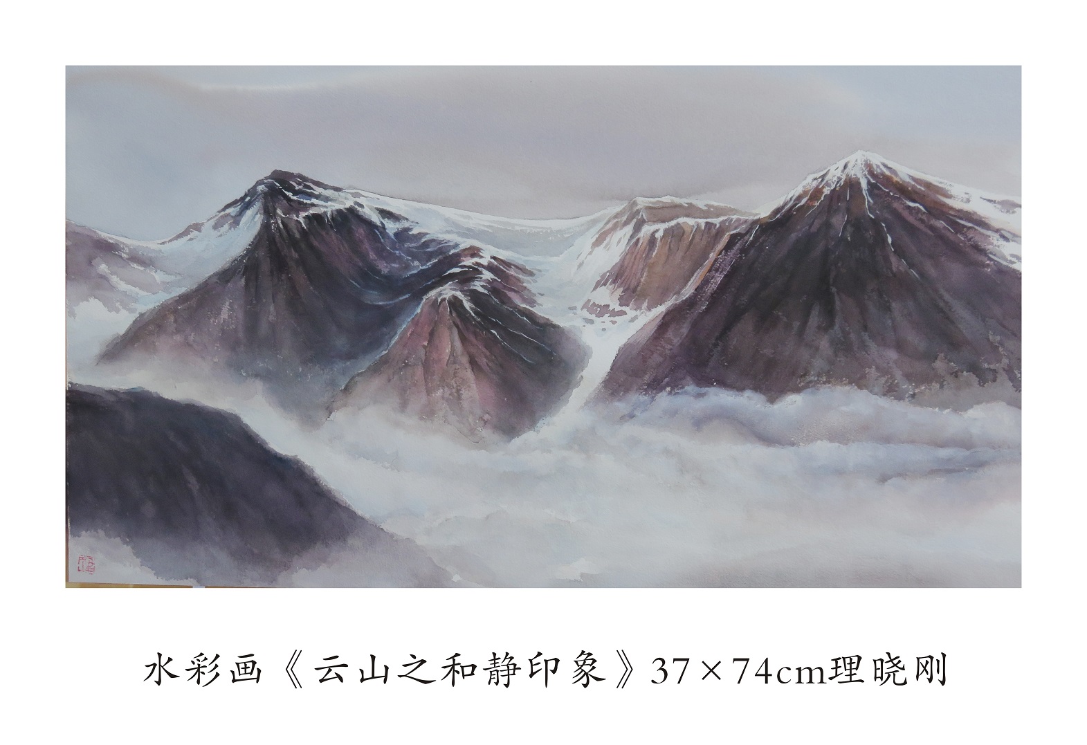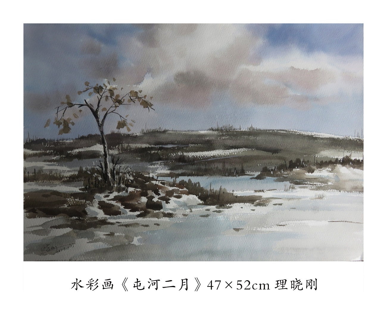 作者理晓刚是兵团的第二代人,经历了六十年代到目前的2020年,可以说:风风雨雨、坎坎坷坷,这些经历与绘画一但联系起来,他的水彩画艺术就不难理解了,比如他的《黄昏.白哈巴》、《戈壁雪情》等水彩画表达了画家非常安静、神密的一种情怀,作者常用这种黄昏下的光色变化来表达这种西北大自然的顺间美感,这与画家的性格特征也非常吻合,在他的作品里基本没有阳光下的热闹场景及蓝天白云下的激情画面等等,