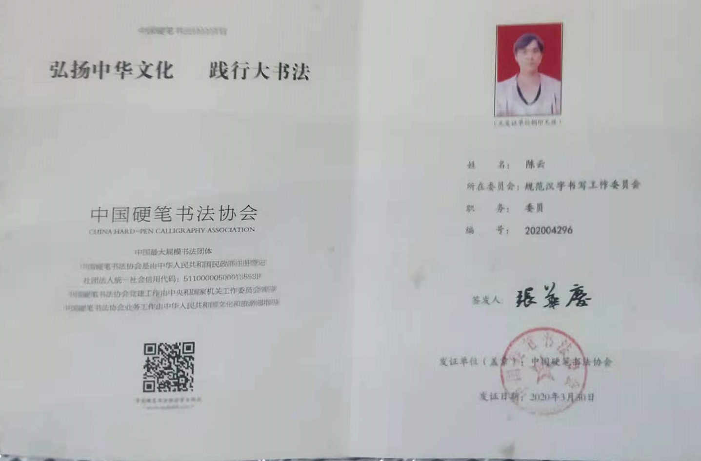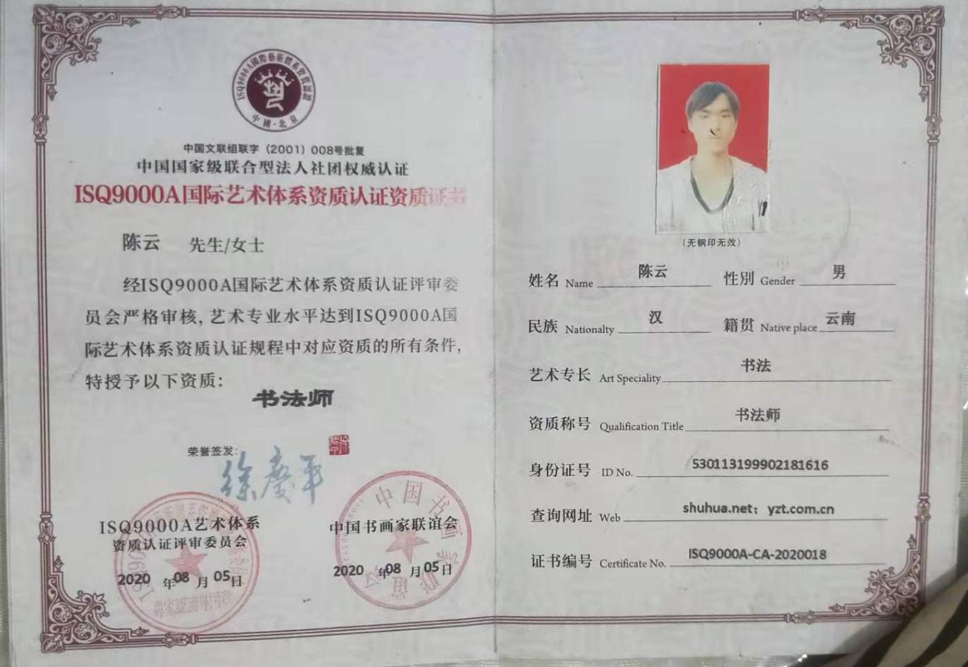 头 衔:国际艺术体系书法师