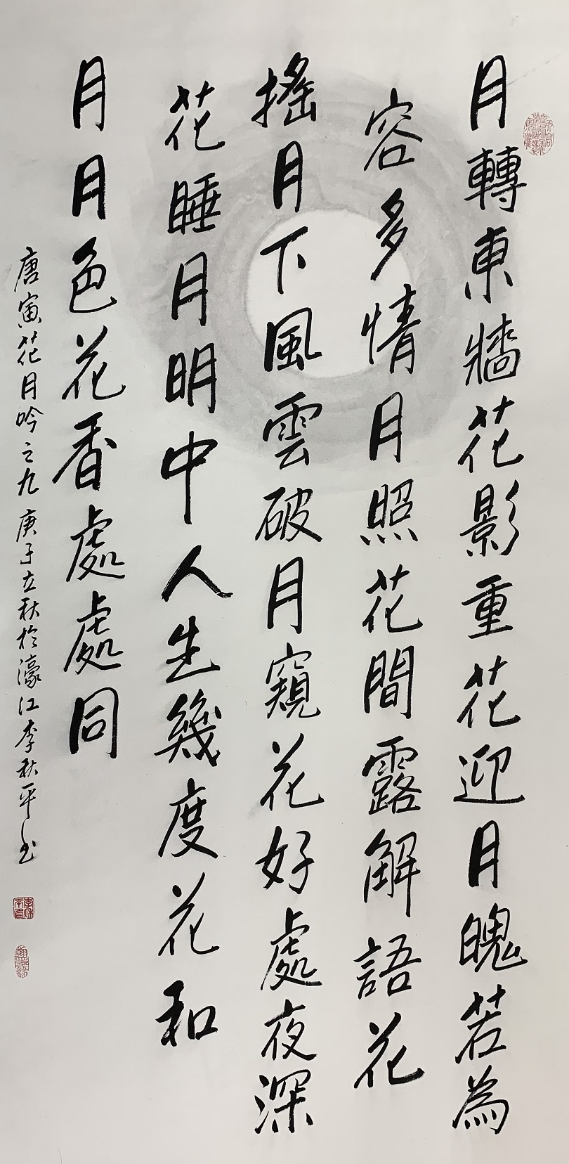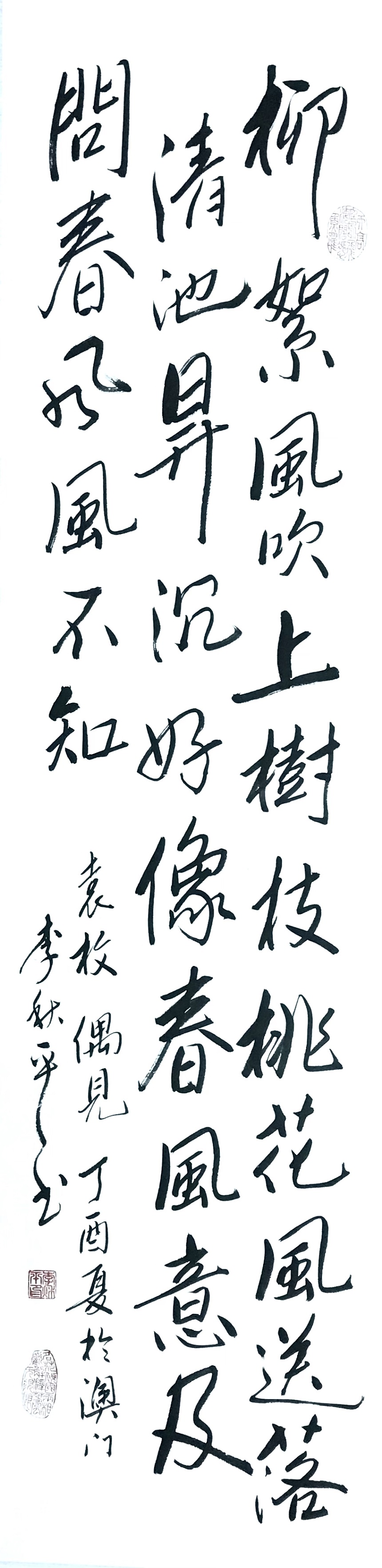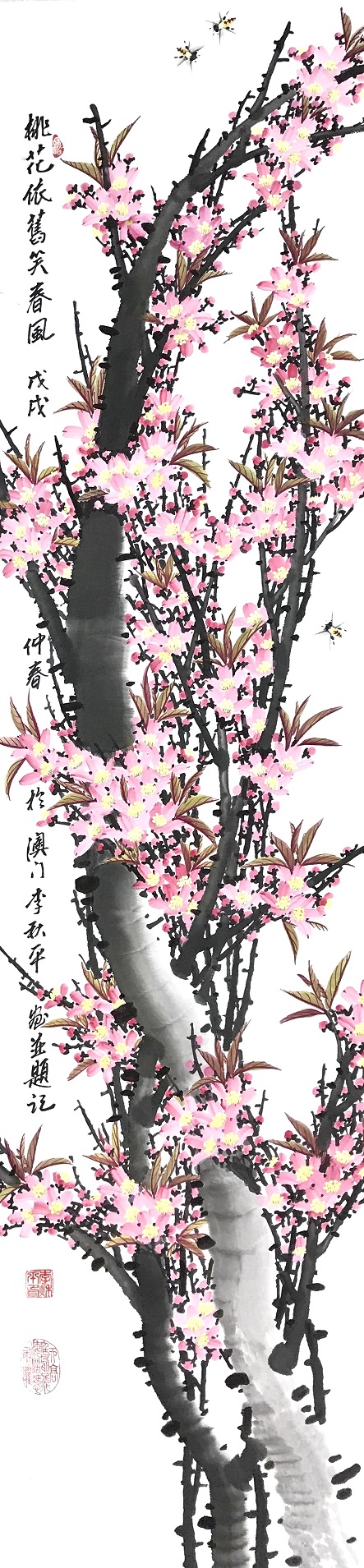 李秋平,1959年生,客家籍,著名嶺南畫派書畫家,國禮藝術家,作品享譽國內外。自幼喜愛繪畫文學藝術,於7、8歲時受父親薰陶下,已習中國水墨畫及中國書法,在中、小學時已屢奪獎狀;大學預科畢業後考入香港政府專科設計工業學院,畢業於香港三年制設計系及五年制高級室內設計系,從事高級室內設計師已有40年。並於1999年考獲中醫師牌照,為澳門政府正式註冊中醫師。其後畢業於加拿大公立皇室大學工商管理碩士、美國普斯頓大學管理哲學博士及中國人民大學工商管理博士。2000年創立澳門書畫藝術聯誼會,為創會會長。繪畫師從嶺南畫派高劍父入室弟子黎明教授;書法師從原澳門大學陳頌聲教授。