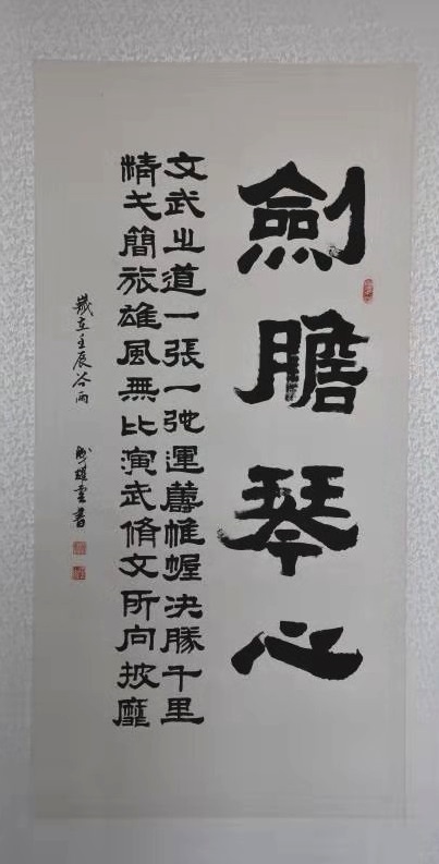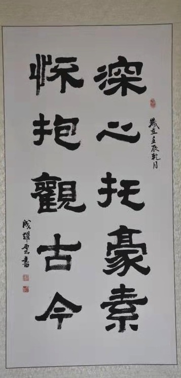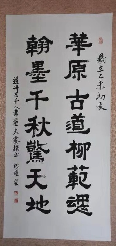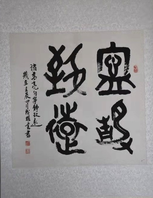 “路漫漫其修远兮,吾将上下而求索。”年已古稀的成耀雲,借中华人民共和国成立70周年大庆之机,申请举办个人书画展,不仅以此展示自己传承弘扬柳範文化的成果,并以此作为自己研习书画第二阶段之起始,足见其“老骥伏枥,志在千里” 和“不用扬鞭自奋蹄”的文化自信。这种不善言表,孜孜不倦的苦研与奋斗精神,是值得我们每个文化人所效仿和发扬的。