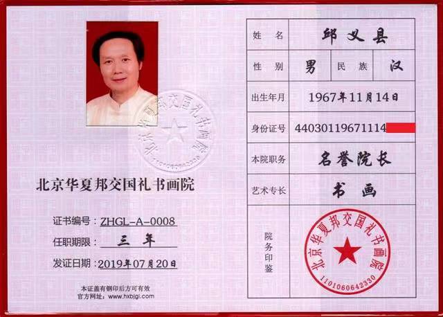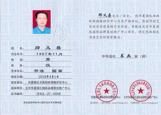 北京华夏邦交国礼书画院院士证编号:ZHGL—A—0008