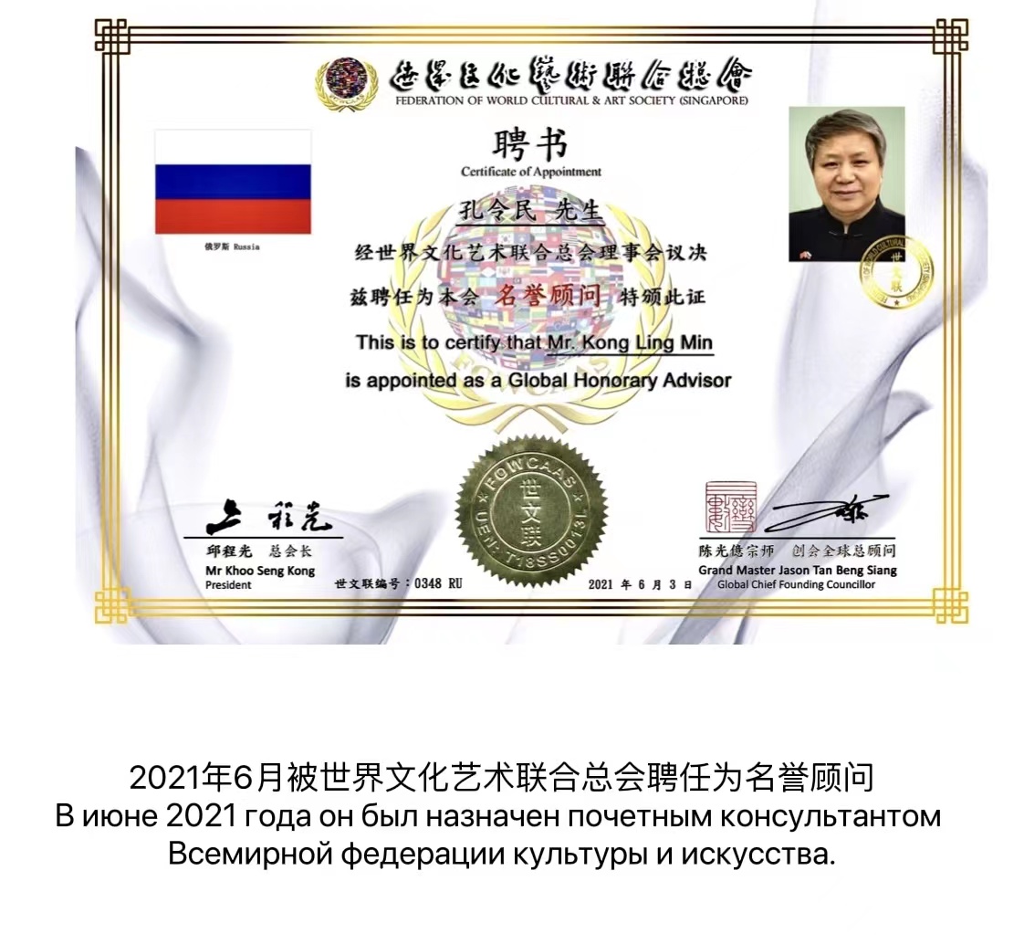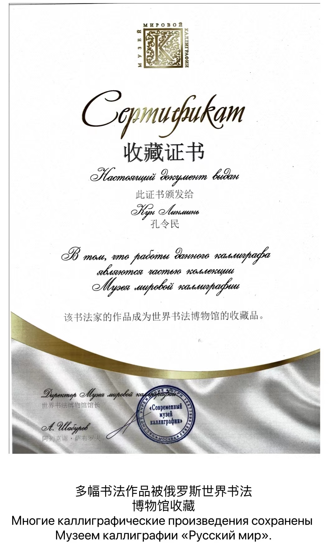 Консультант Объединенной академии каллиграфии и живописи Китая и Президентского отделения России;