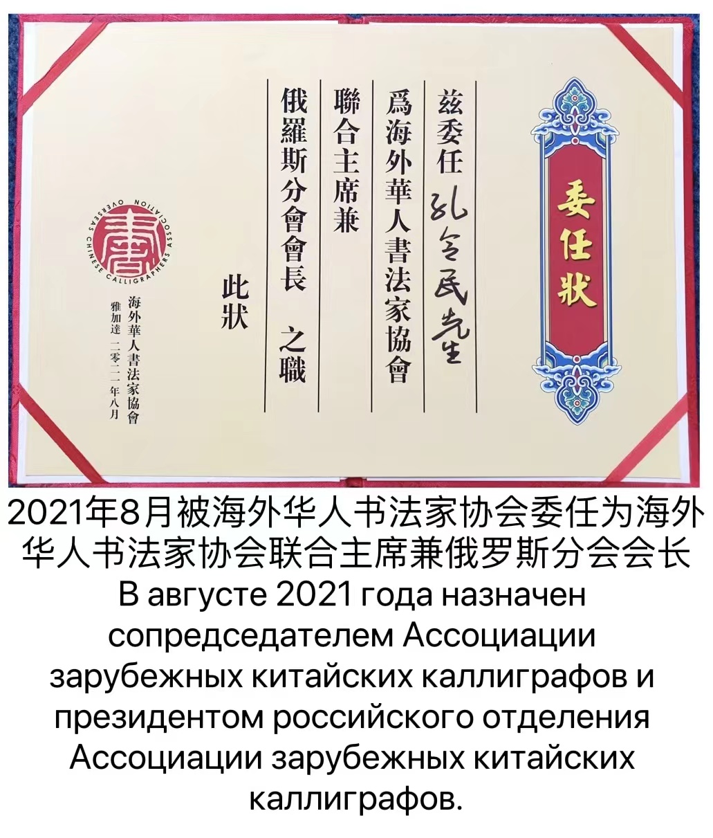 Сопредседатель Ассоциации зарубежных китайских каллиграфов и президент российского отделения;