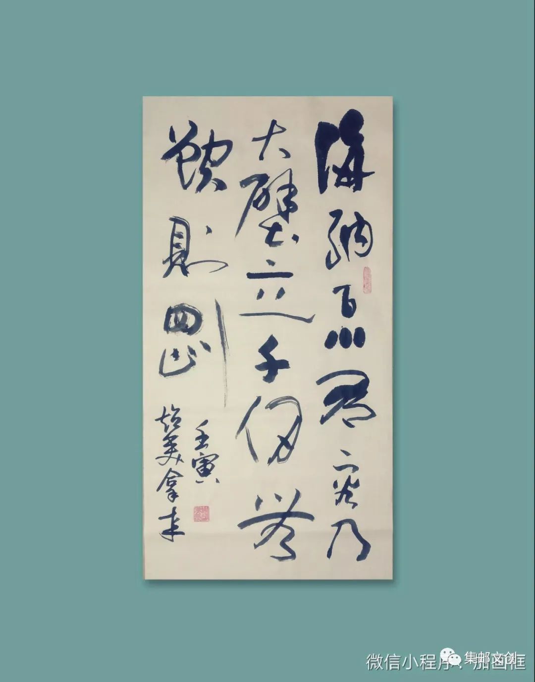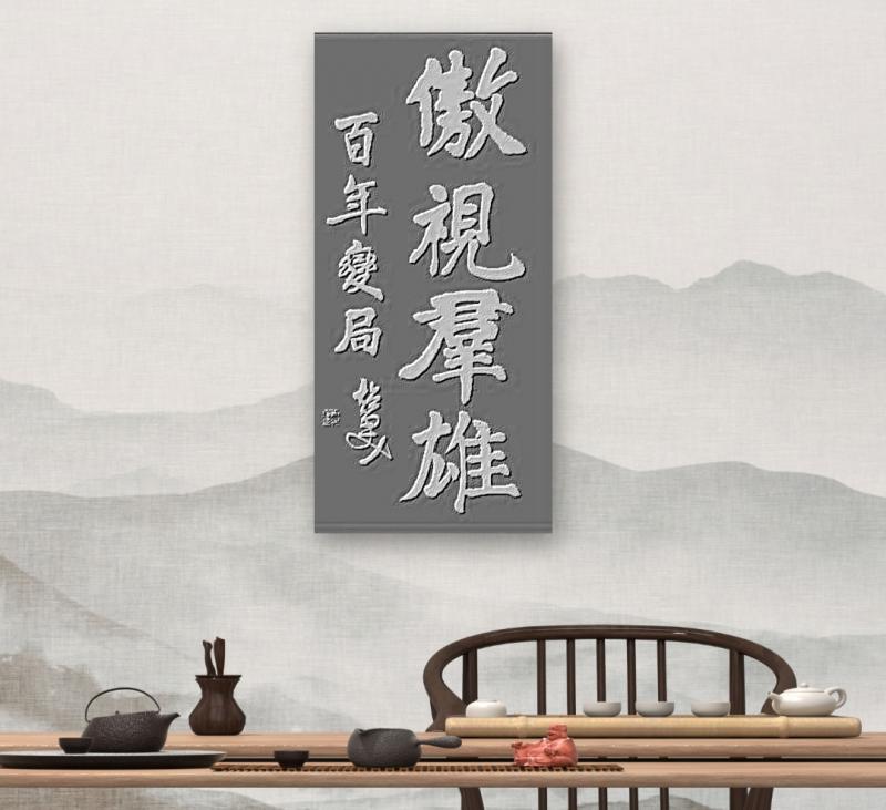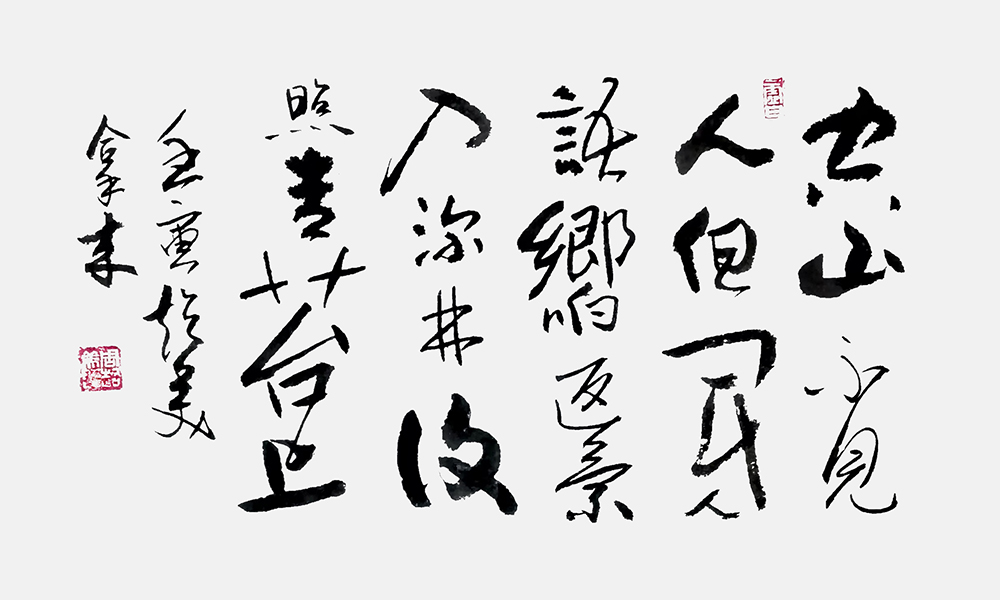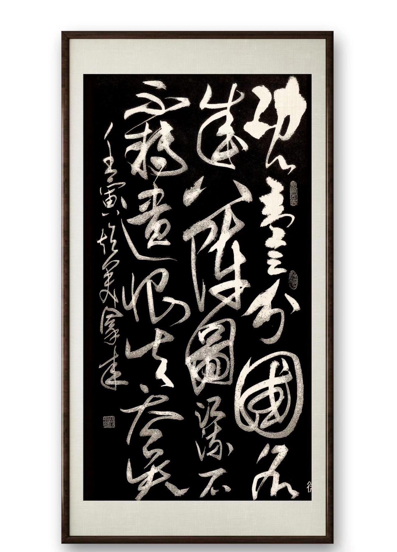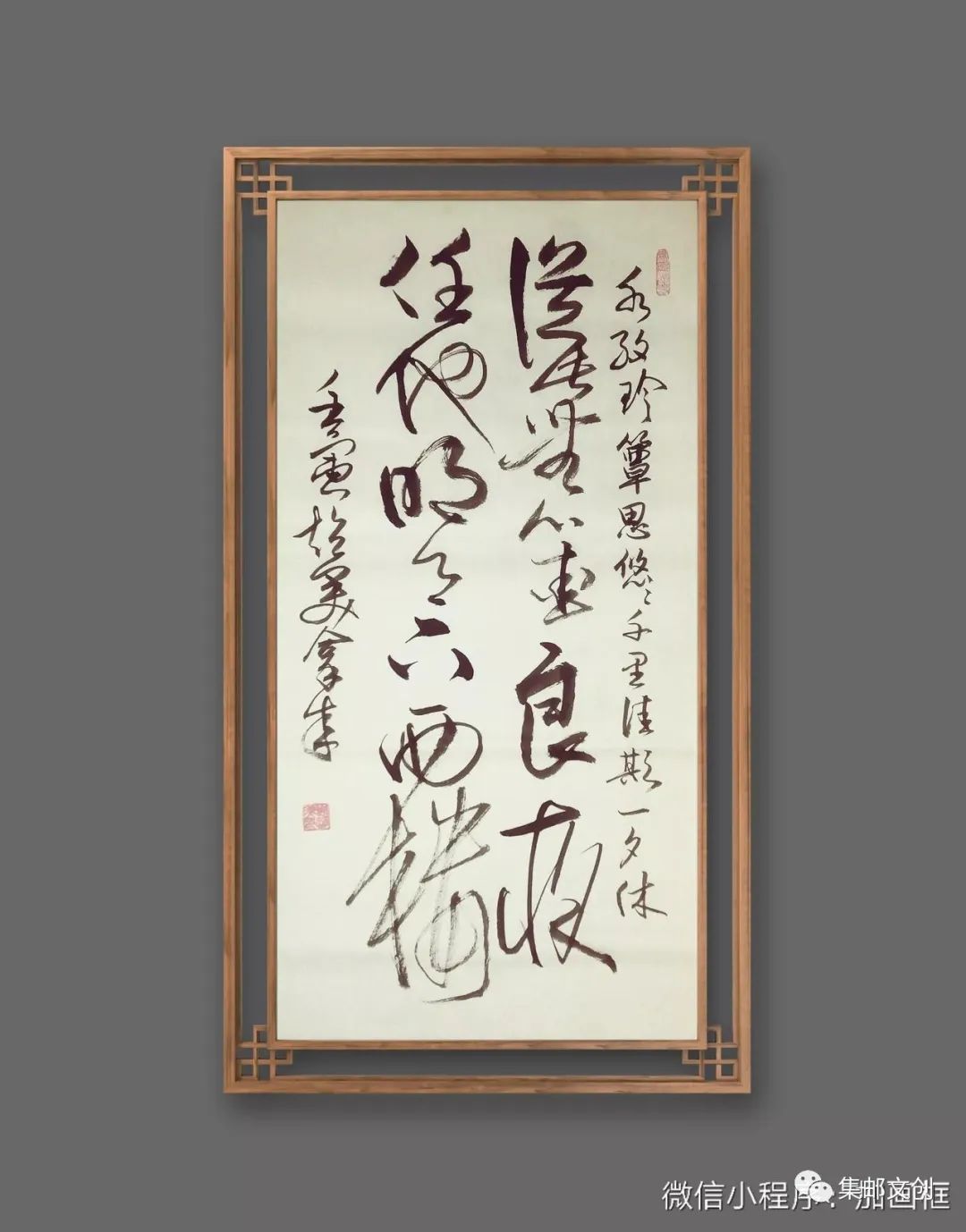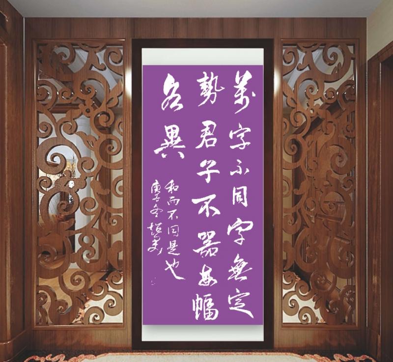 从书法的文化品格上来论,他的笔墨潜涵着传统文化的精髓。以道家的阴阳相和为玄机,笔作阳刚,墨写阴柔,刚柔相济,方圆周备。独阴则不生,孤阳则不长,其书法意象恰谙此论,道法自然。以儒家的进取精神为表现,执笔墨感怀逝者如斯夫,不舍昼夜的激荡,积极进取,笔墨担当。也融入佛门禅意,笔墨不住色声香味触法,依心而作,空鉴从容。笔墨见证真相,唯善从流!这便是他的书法既有技法的精湛,也有文化独见的重要原因,落笔一刹那,妙意证永恒。创新与传承相互加持,让书法的人文精神代不绝人!