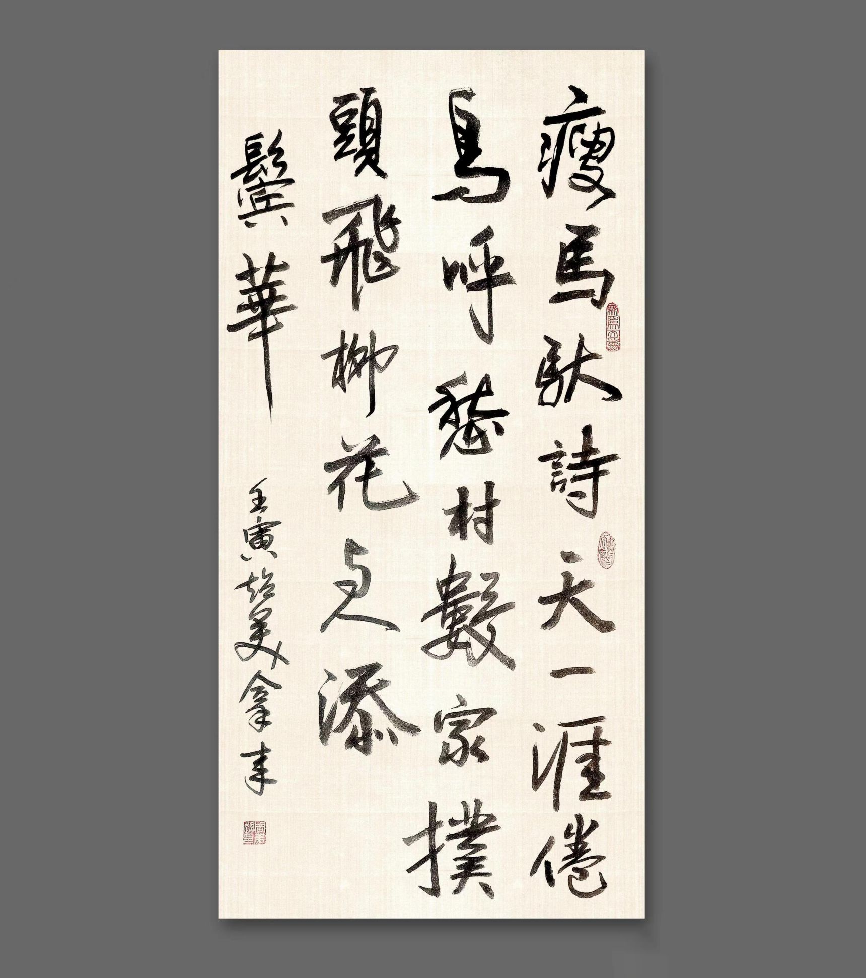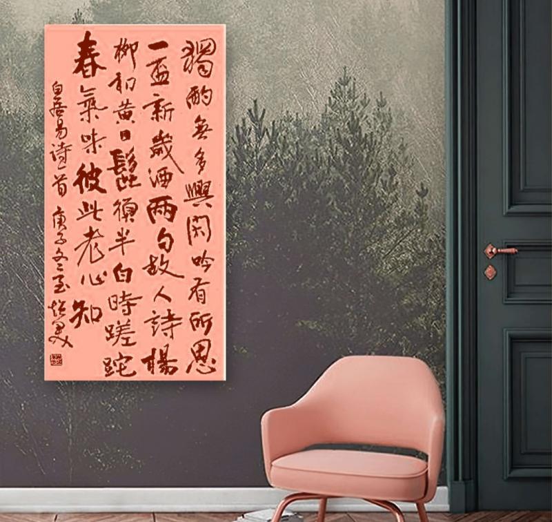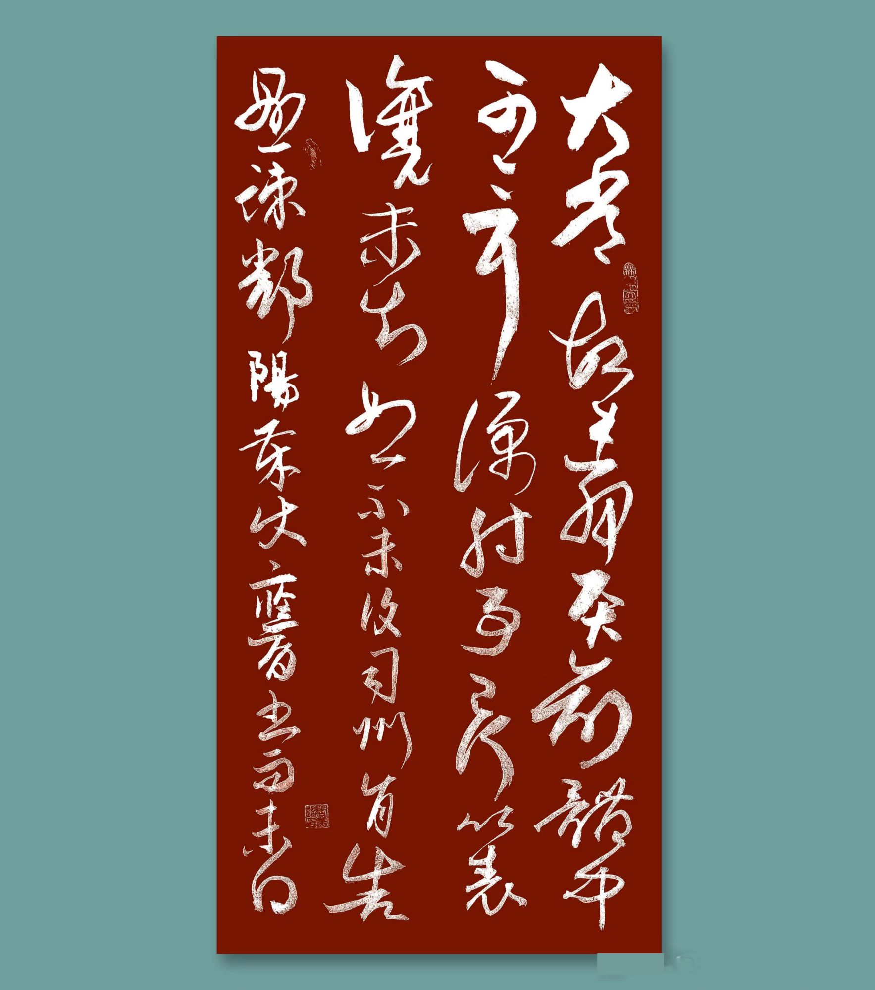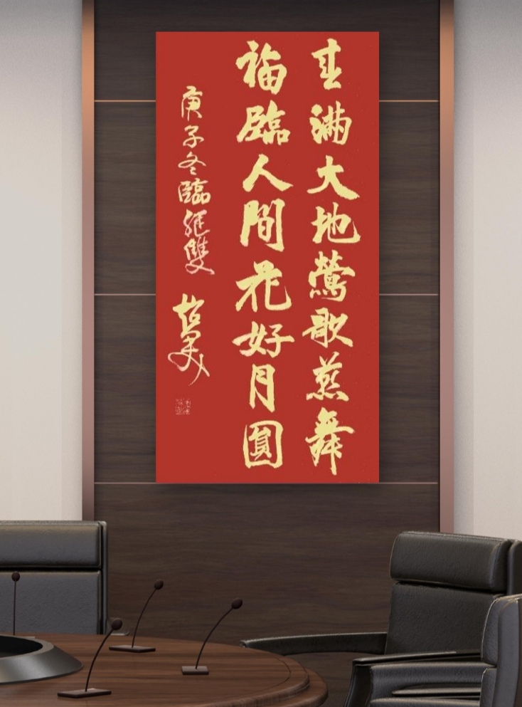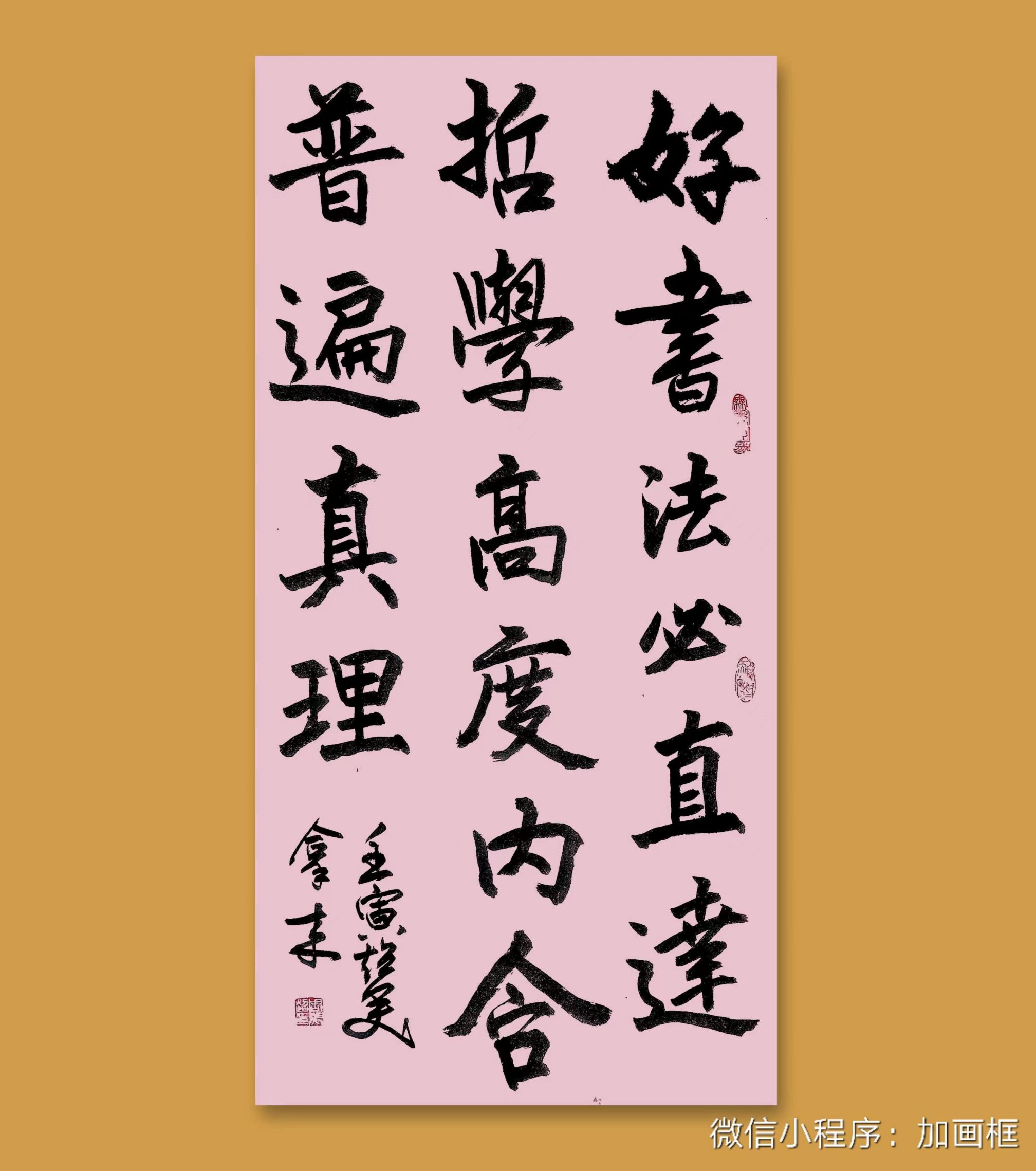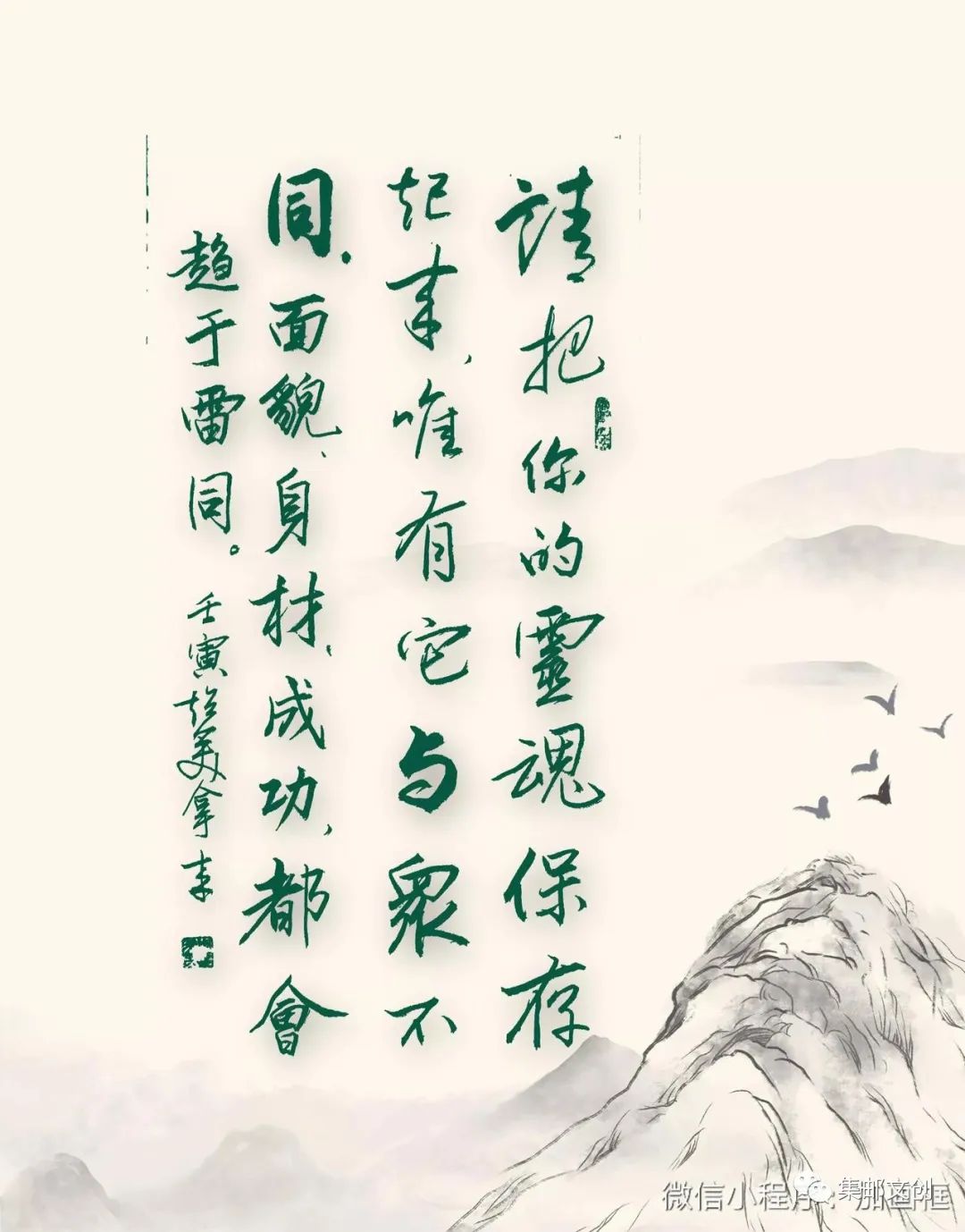 从书法的文化品格上来论,他的笔墨潜涵着传统文化的精髓。以道家的阴阳相和为玄机,笔作阳刚,墨写阴柔,刚柔相济,方圆周备。独阴则不生,孤阳则不长,其书法意象恰谙此论,道法自然。以儒家的进取精神为表现,执笔墨感怀逝者如斯夫,不舍昼夜的激荡,积极进取,笔墨担当。也融入佛门禅意,笔墨不住色声香味触法,依心而作,空鉴从容。笔墨见证真相,唯善从流!这便是他的书法既有技法的精湛,也有文化独见的重要原因,落笔一刹那,妙意证永恒。创新与传承相互加持,让书法的人文精神代不绝人!