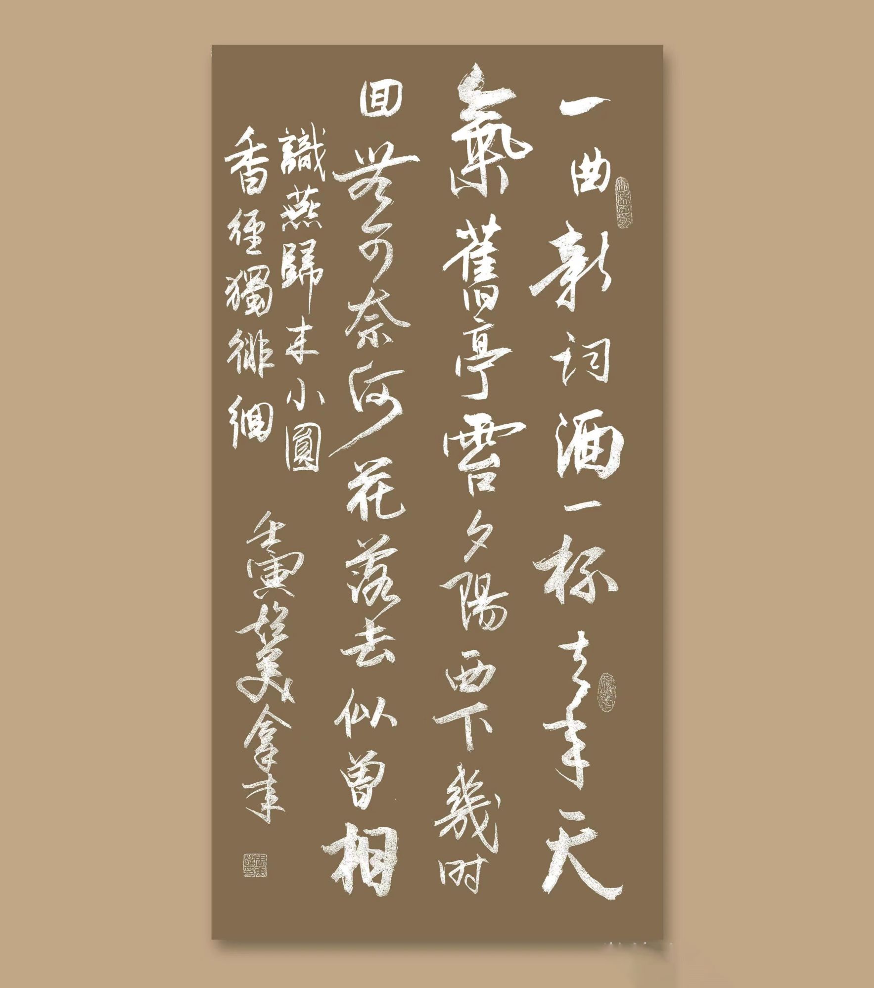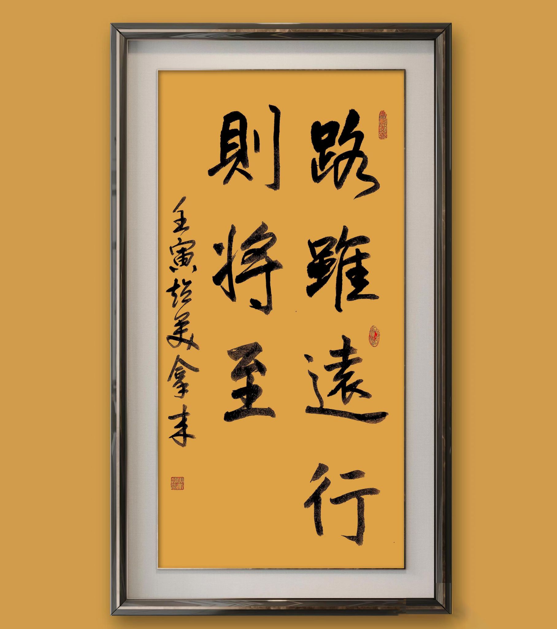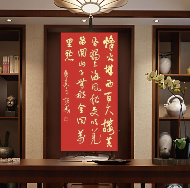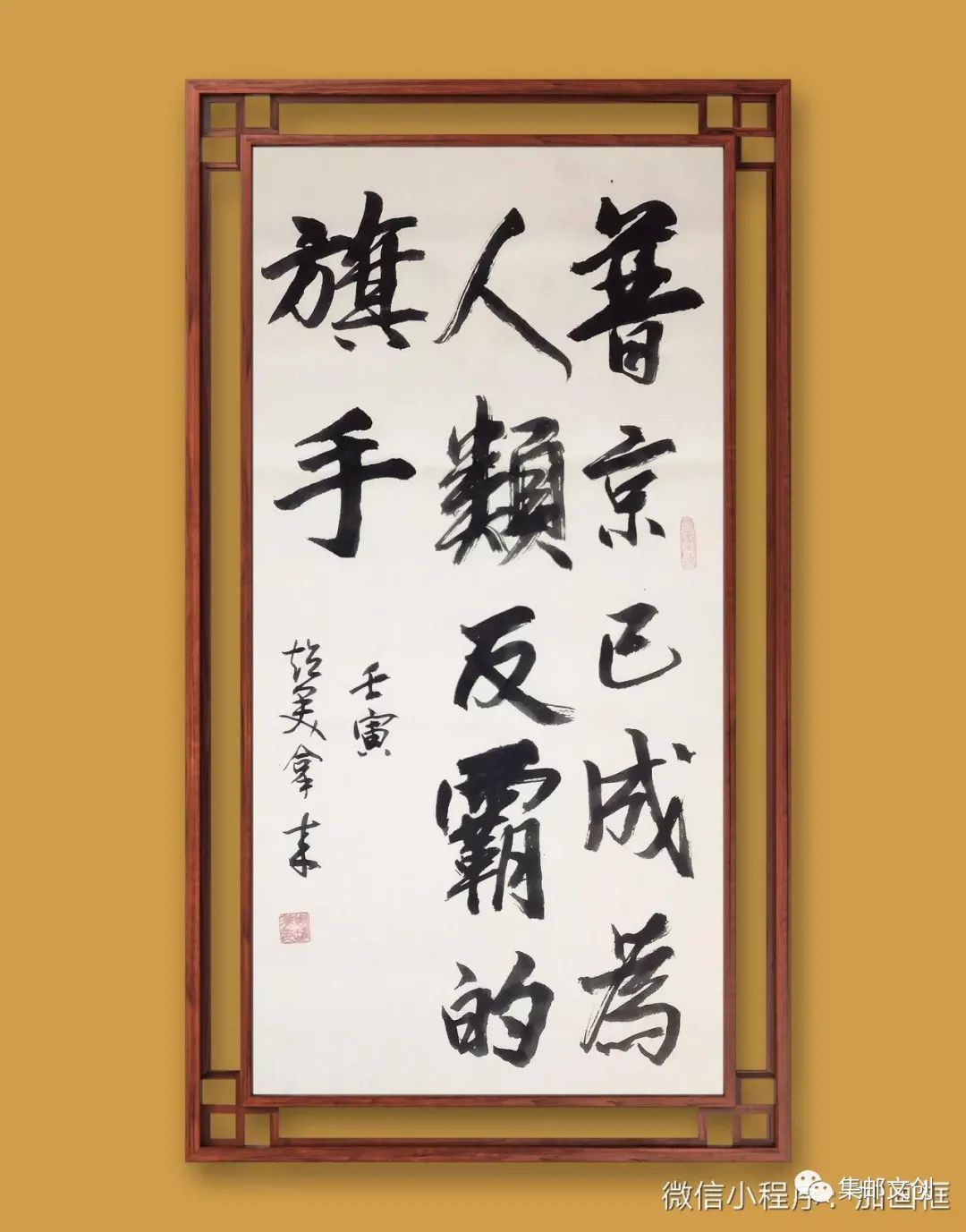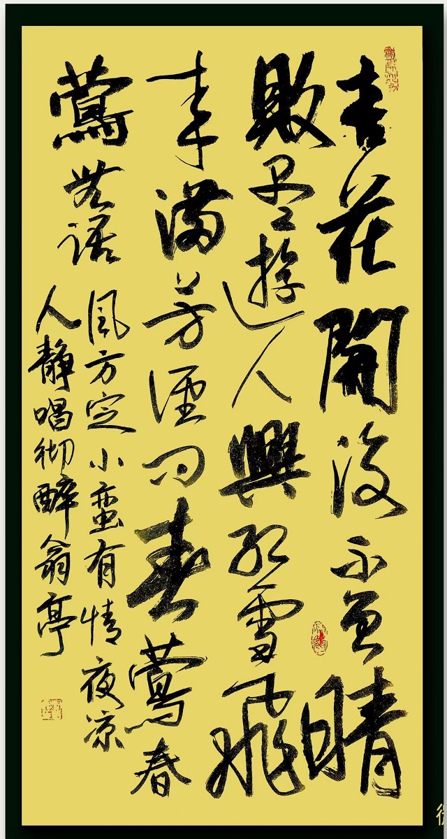 从书法的文化品格上来论,他的笔墨潜涵着传统文化的精髓。以道家的阴阳相和为玄机,笔作阳刚,墨写阴柔,刚柔相济,方圆周备。独阴则不生,孤阳则不长,其书法意象恰谙此论,道法自然。以儒家的进取精神为表现,执笔墨感怀逝者如斯夫,不舍昼夜的激荡,积极进取,笔墨担当。也融入佛门禅意,笔墨不住色声香味触法,依心而作,空鉴从容。笔墨见证真相,唯善从流!这便是他的书法既有技法的精湛,也有文化独见的重要原因,落笔一刹那,妙意证永恒。创新与传承相互加持,让书法的人文精神代不绝人!