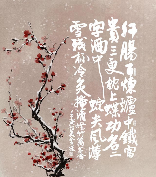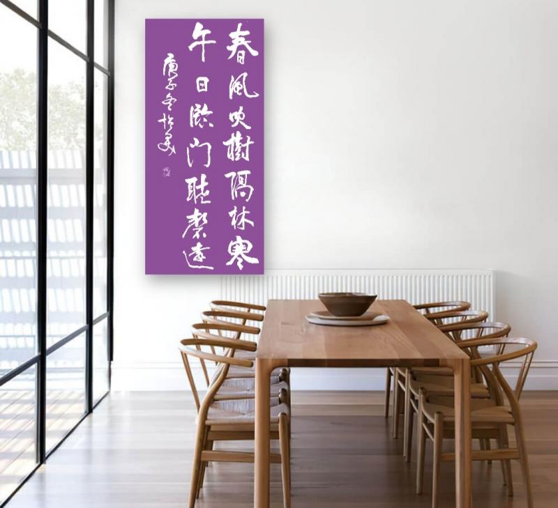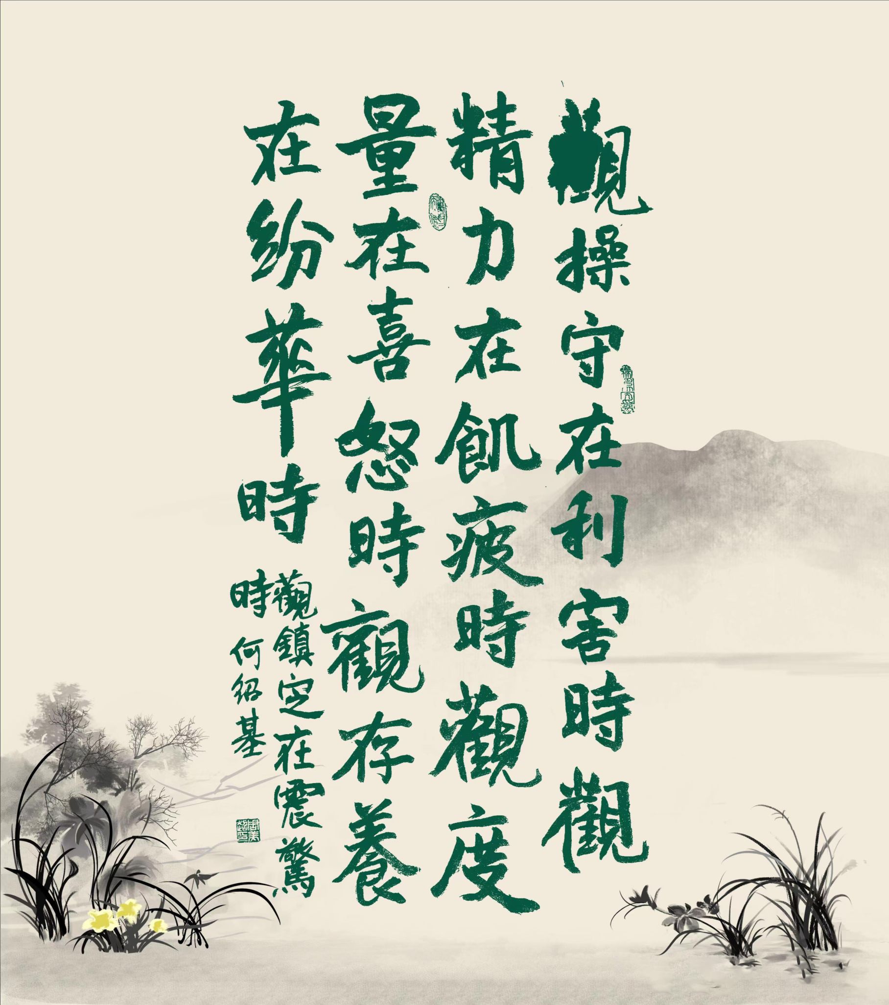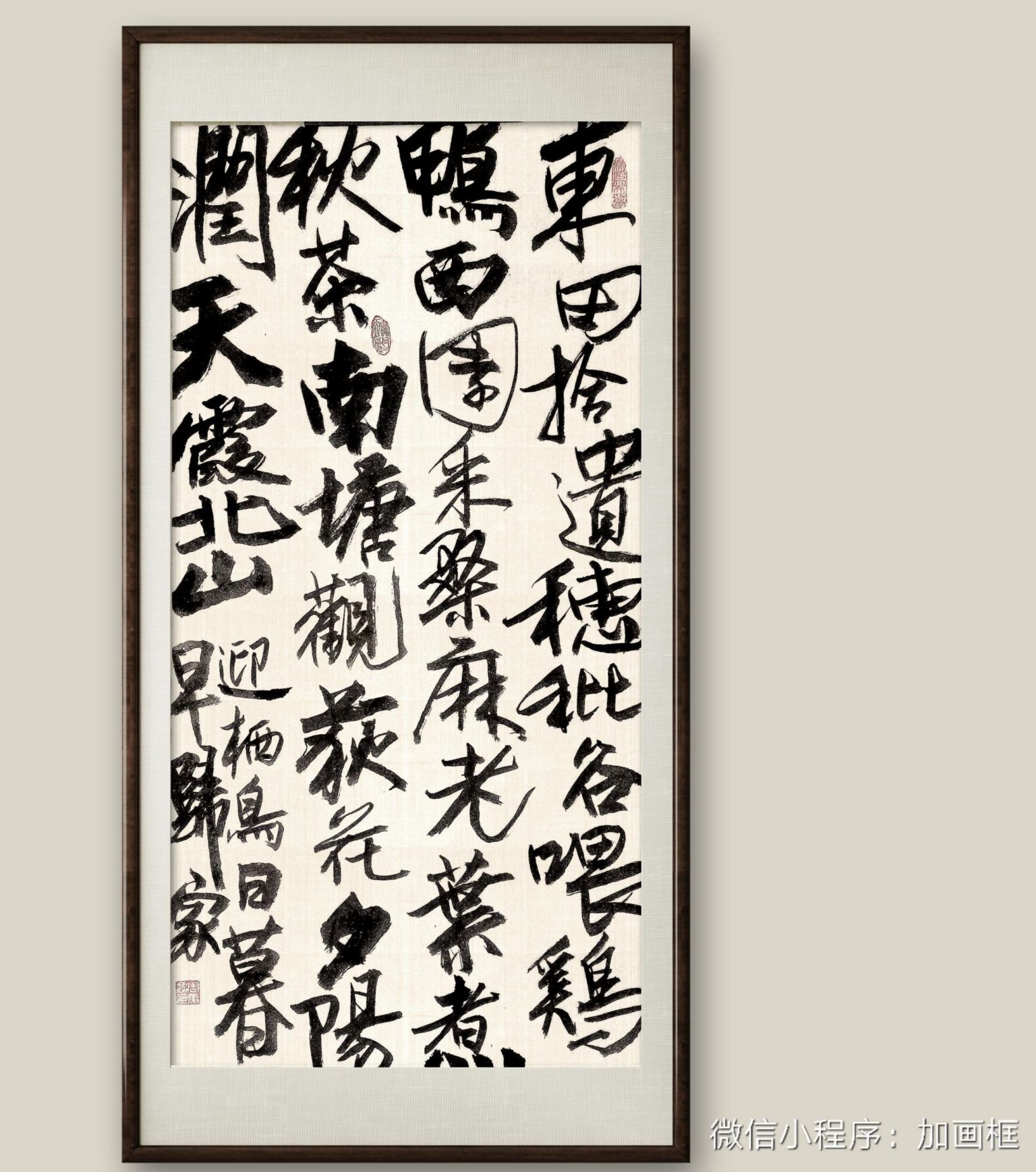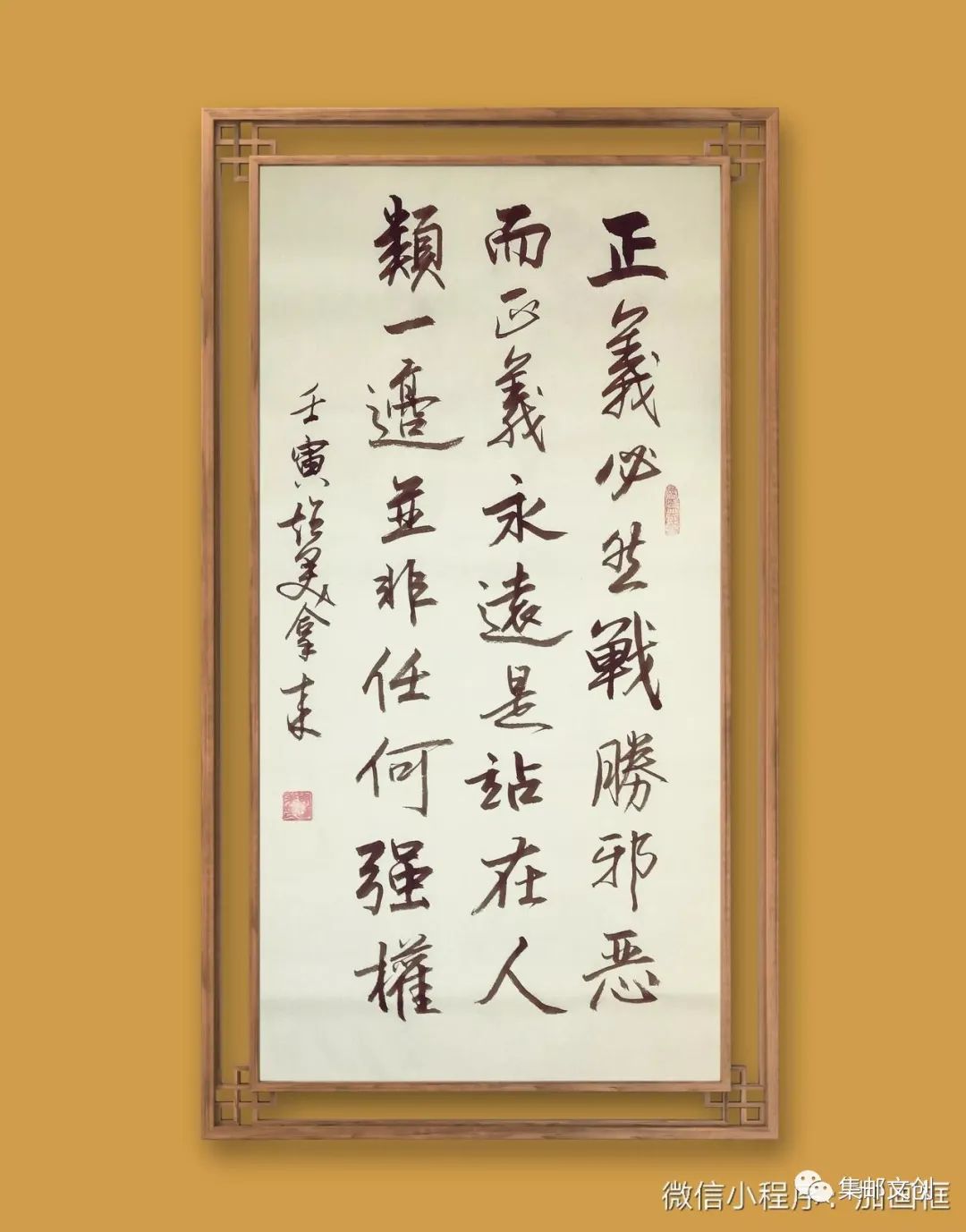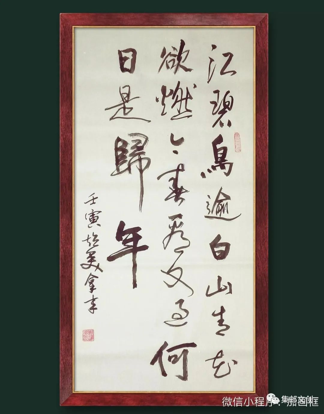 从书法的文化品格上来论,他的笔墨潜涵着传统文化的精髓。以道家的阴阳相和为玄机,笔作阳刚,墨写阴柔,刚柔相济,方圆周备。独阴则不生,孤阳则不长,其书法意象恰谙此论,道法自然。以儒家的进取精神为表现,执笔墨感怀逝者如斯夫,不舍昼夜的激荡,积极进取,笔墨担当。也融入佛门禅意,笔墨不住色声香味触法,依心而作,空鉴从容。笔墨见证真相,唯善从流!这便是他的书法既有技法的精湛,也有文化独见的重要原因,落笔一刹那,妙意证永恒。创新与传承相互加持,让书法的人文精神代不绝人!