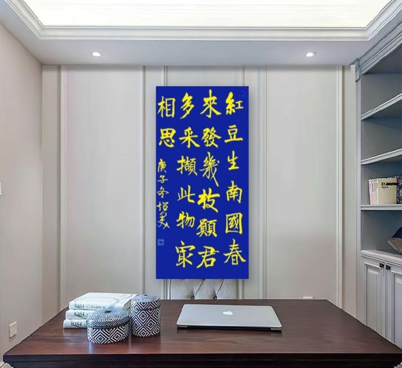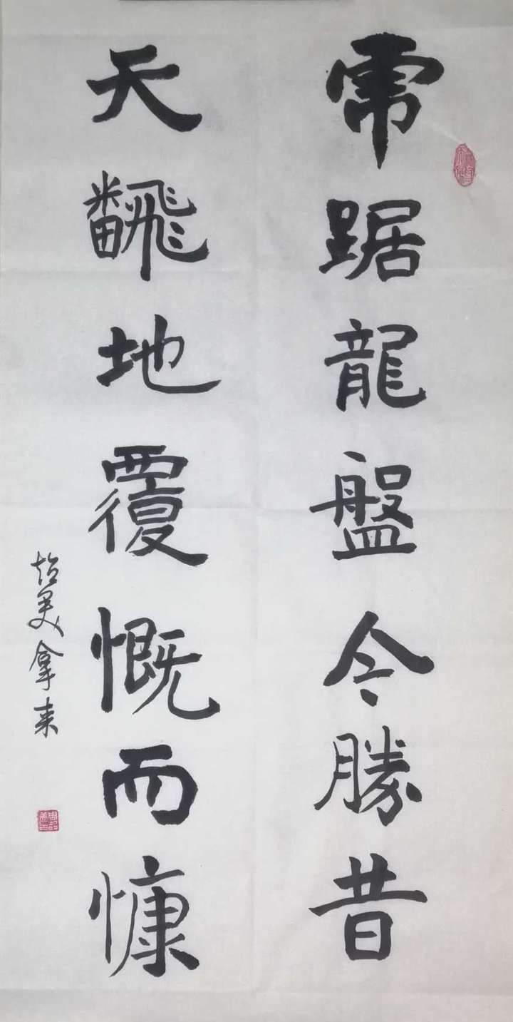 其书法贵有笔法玄机,用笔千古不易,一直以东方审美原则为灵魂,写得刚柔相济!有学士之风度,也有侠者之风骨。微肉而多骨,有筋续有力,是为圣!把这样的书法境界同笔阵图一一对照,可见每作一横如孤舟之列江渚,必正!每作一竖如春笋之抽寒谷,必直!一笔拉过来,直中作曲势,状如布阵排云,亦如万岁枯藤!好的笔法,就是这种心与笔畅,同自然之妙有的无限表达。观赏他的笔墨佳作,足以极视听之愉,游目骋怀,大振心颜,足足的笔墨魅力,铺陈在眼前,如注岸崩崖,临危居高!唯有觉悟翰墨真谛,方可以写就这书法的华章!