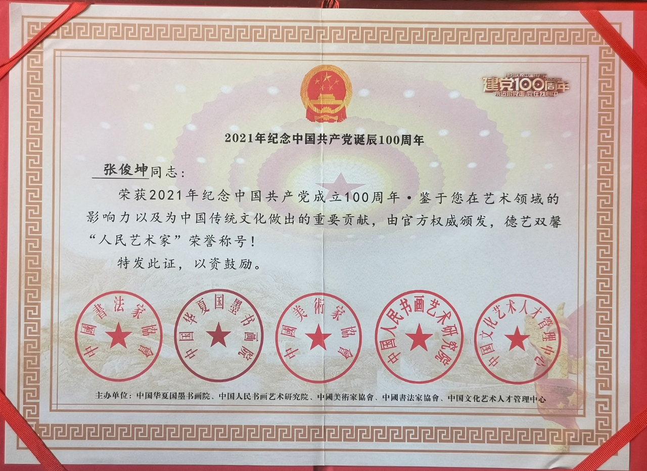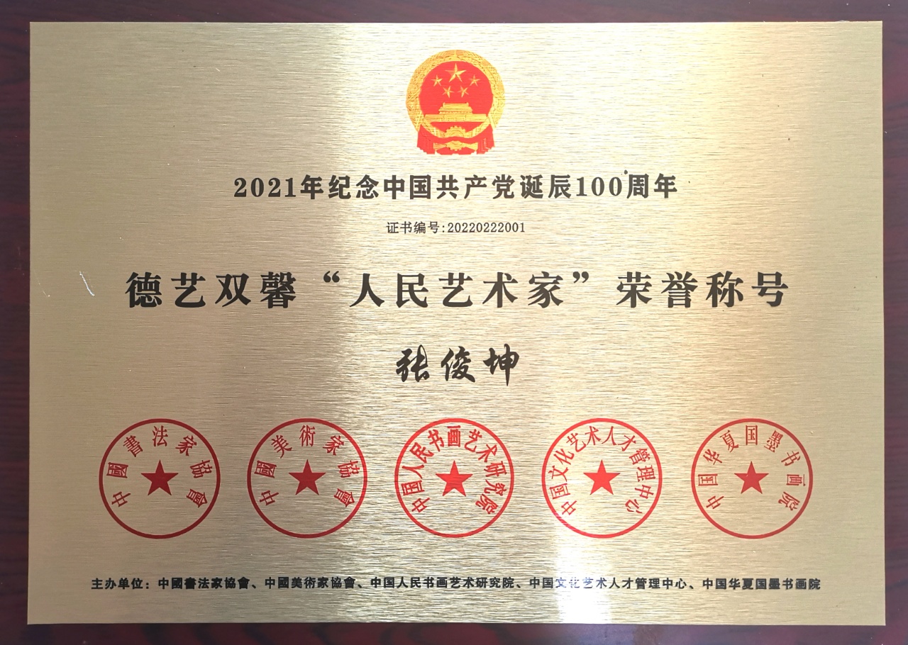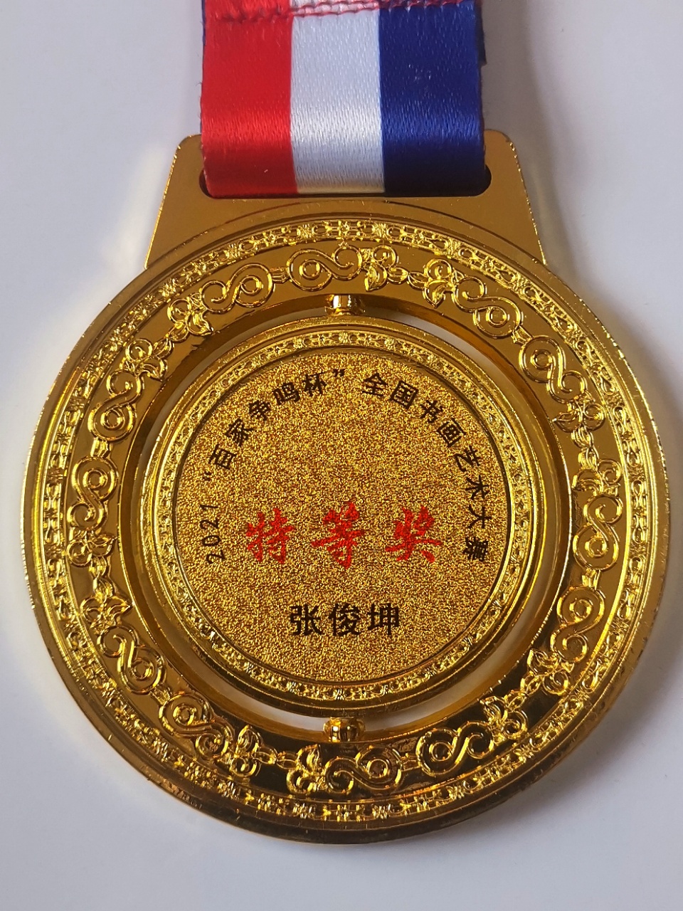 2022年6月参加全国第十届“中国梦想杯”书画诗词大赛,荣获金奖,被授予“书画中国梦·优秀艺术家”荣誉称号。