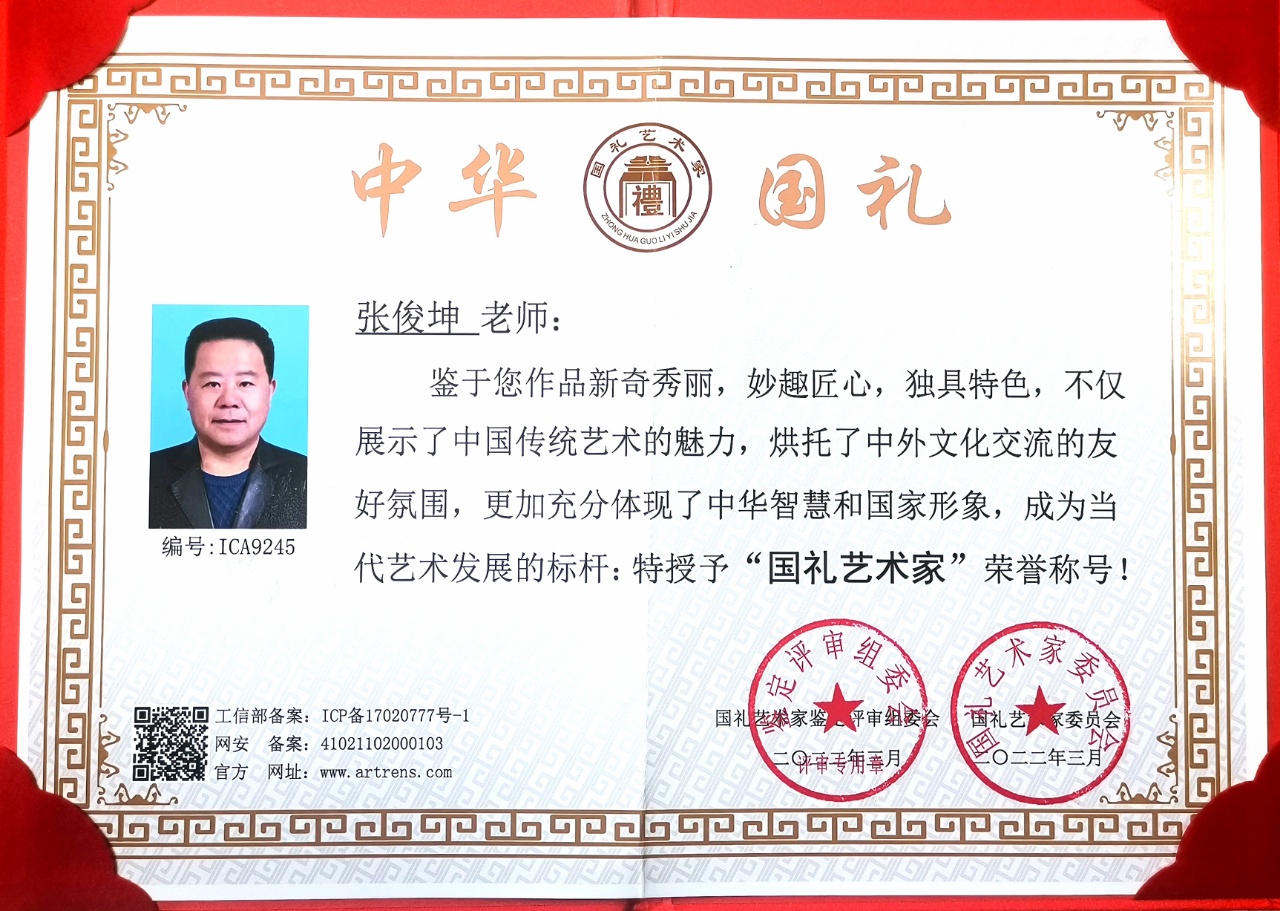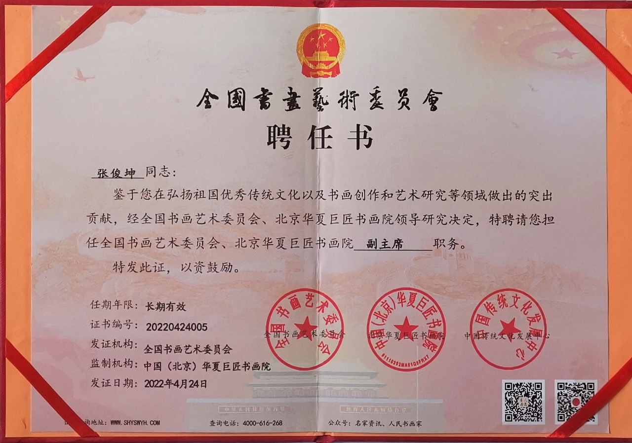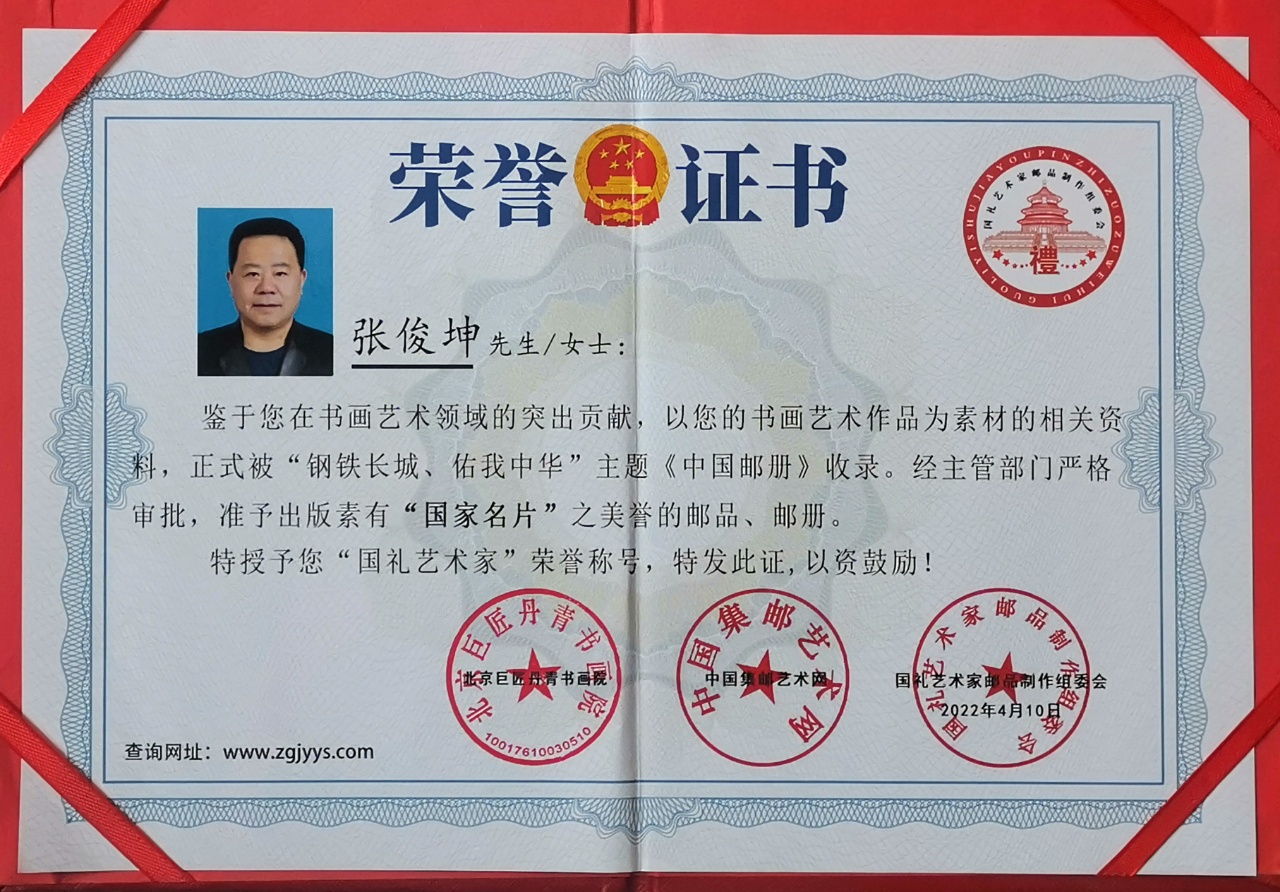 2022年6月参加全国第十届“中国梦想杯”书画诗词大赛,荣获金奖,被授予“书画中国梦·优秀艺术家”荣誉称号。