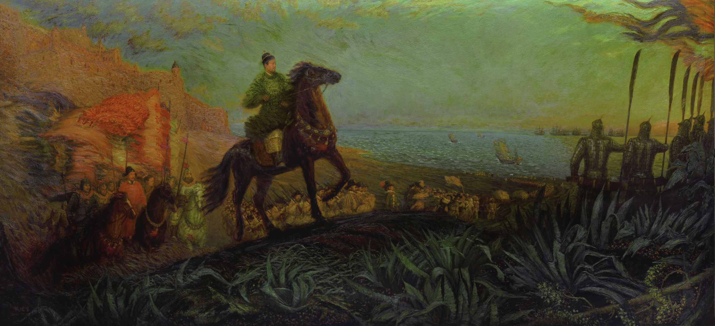 2004,9,--2005,12, 为厦门郑成功纪念馆创作大型历史画《雄风——郑成功收复台湾》。(210cm x450cm)。