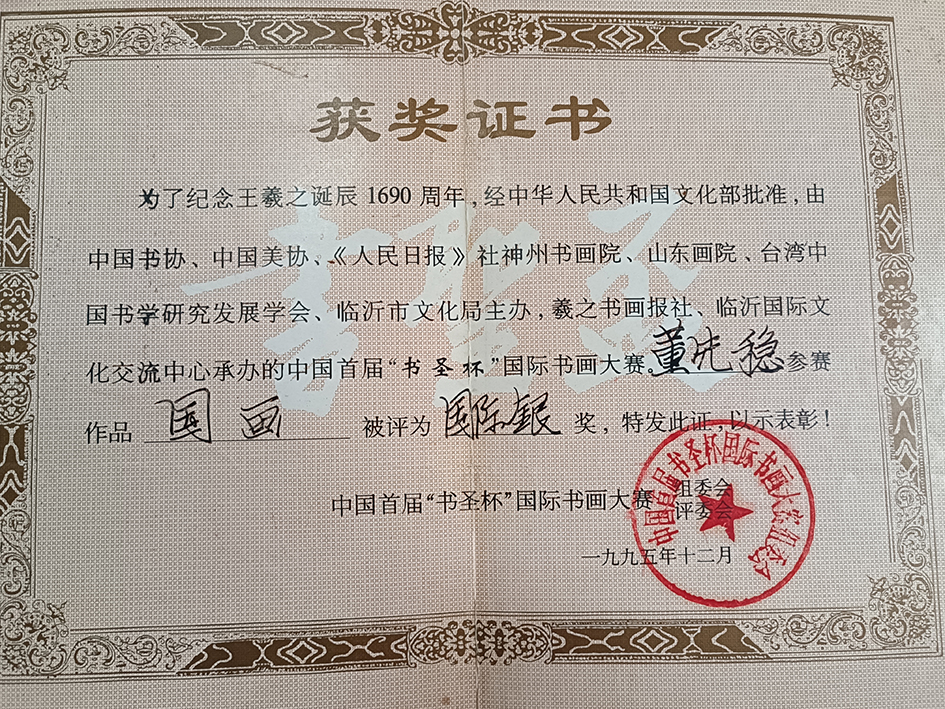 中国首届书圣杯国际书画大赛国际银奖(中国美协、中国书协)