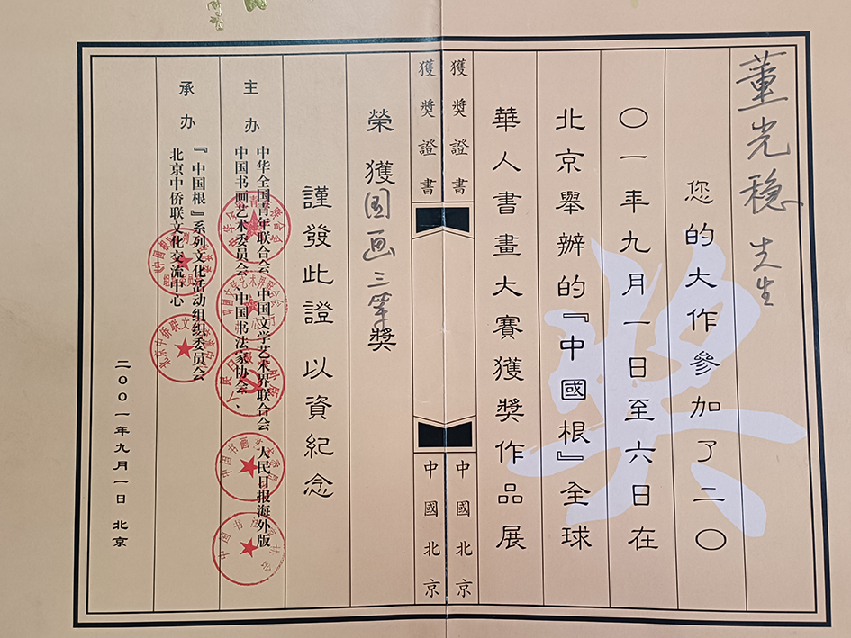 中国根·全球华人书画大赛三等奖(中国书协、中国文联)