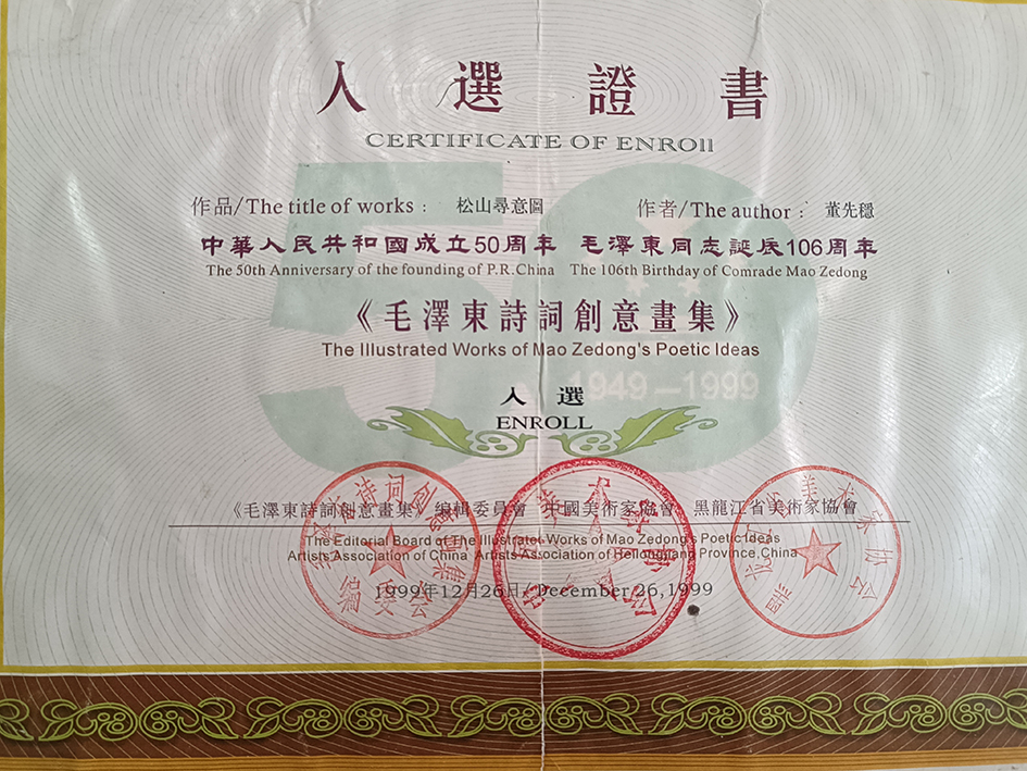 玉女杯国际书画大展优秀作品奖并被福建港台医药文化研究所作为固定展品收藏