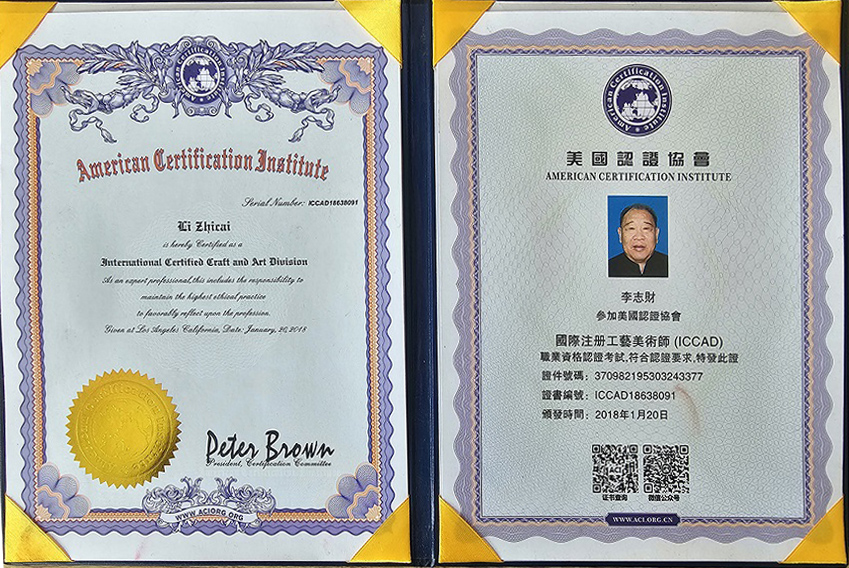 2022年经中华人民共和国专业艺术资质评审委员聘任为国家非遗传承师。