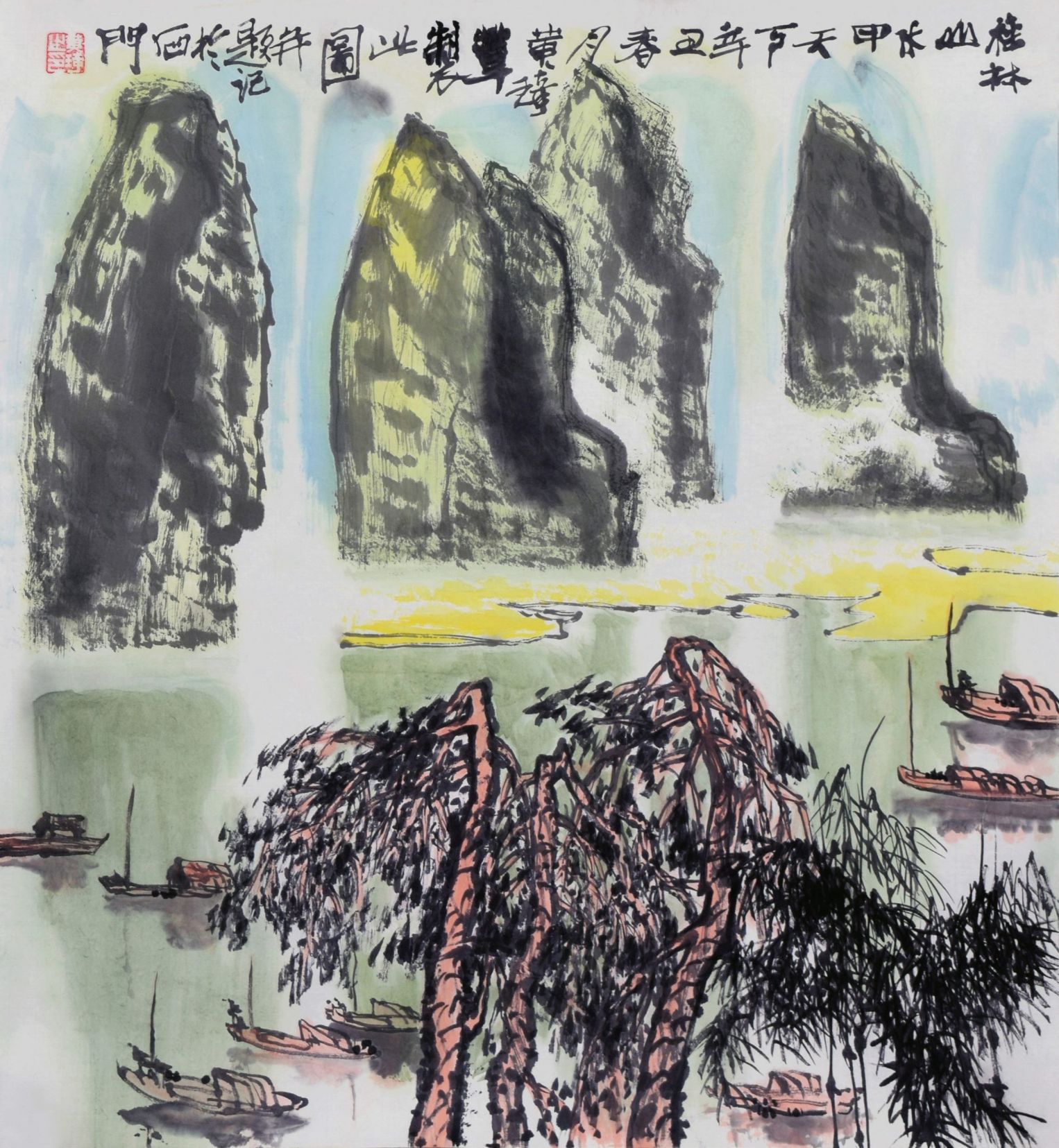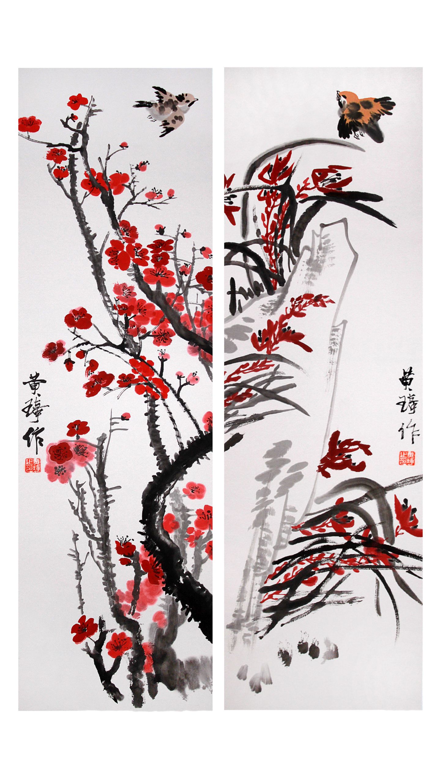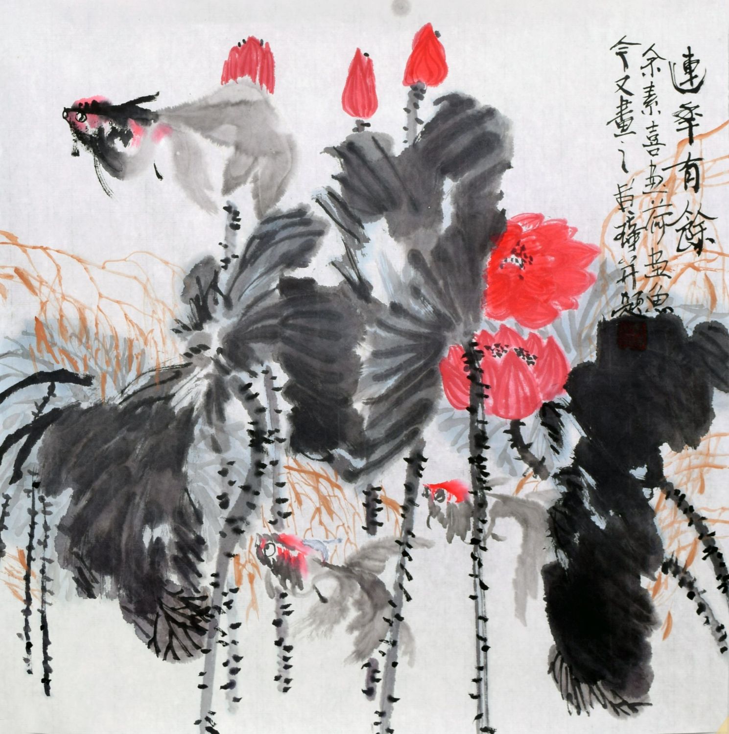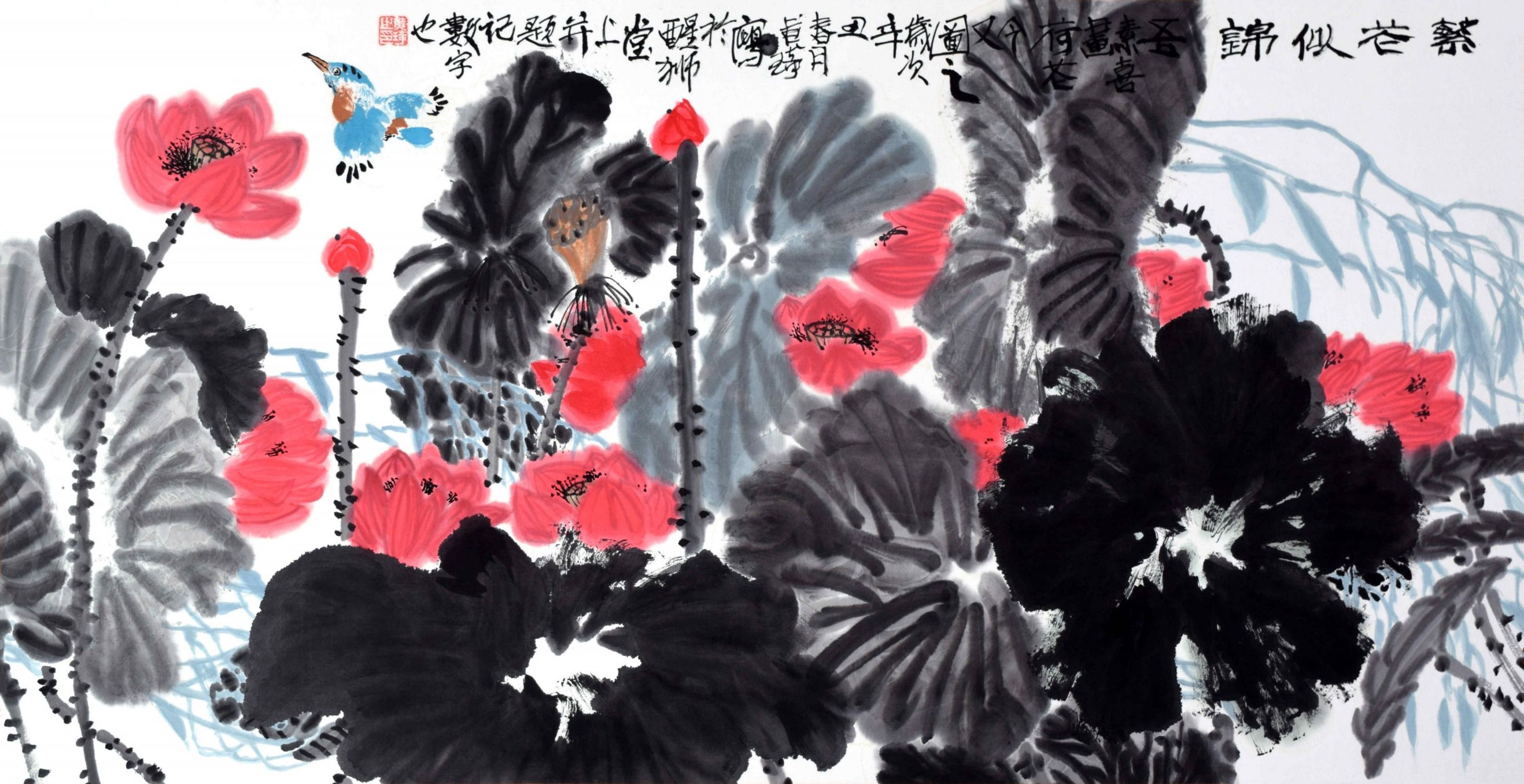 出一股大写意的情感寄托和流露!丹青题材,兼涉山水花鸟,山水笔墨雄强,构意不失于奇绝,其景其境,可谓皆是有致朴茂于自然也!花鸟题材,亦是可独显于生机之盎然,梅花风骨傲立,兰花君子儒雅,荷花更是情景交融而不入俗流, 赋色之际,妙和其神,即是艳而不媚的真切映照!笔墨质朴, 画意盎然,而此般花鸟风情,观之也诚是可令人心驰神往也! 绘意味象,雅俗共赏!