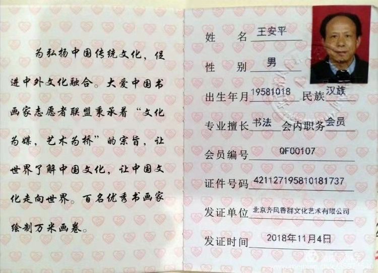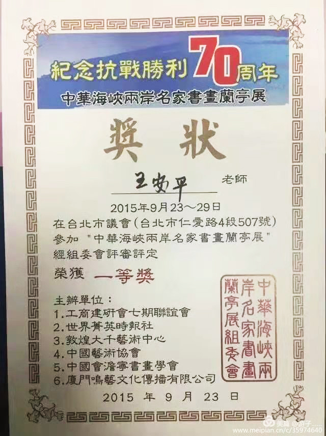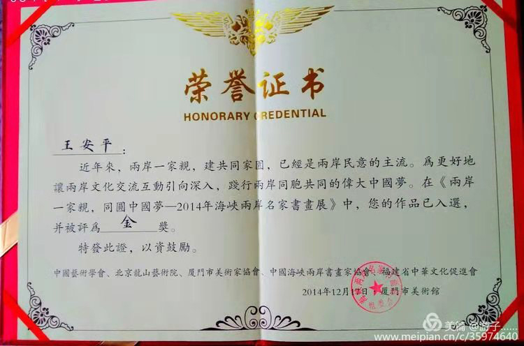 头 衔:中国书画家协会会员,中国艺术大师数据中心人才库认证,中国海峡两岸书画家协会会员兼厦门海西分会副会长,中国民间书画家协会会员,大爱中国书画家志愿者联盟协会会员(万米长卷),世界文艺诗书画特刋专题报导,中国好品牌影响力人物形象大使,世界华人华侨杰出艺术家勋章获得者,河南今网书画院特聘院士。