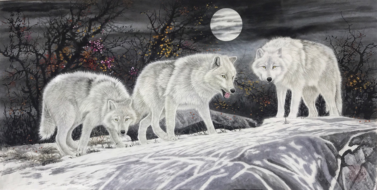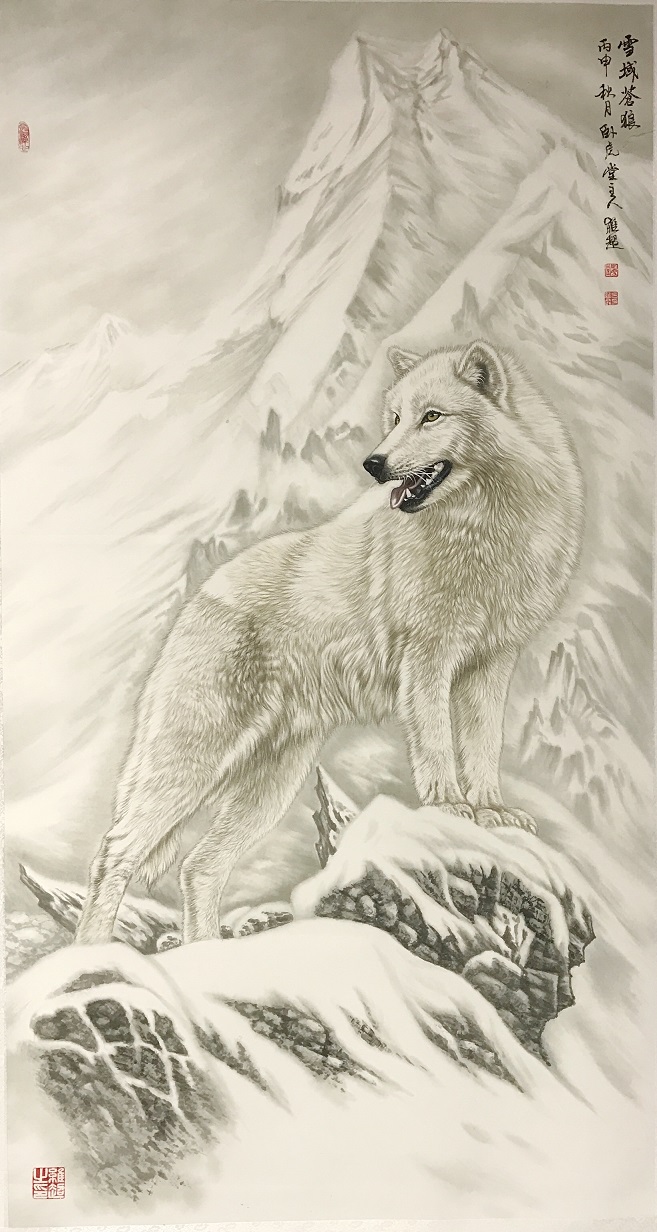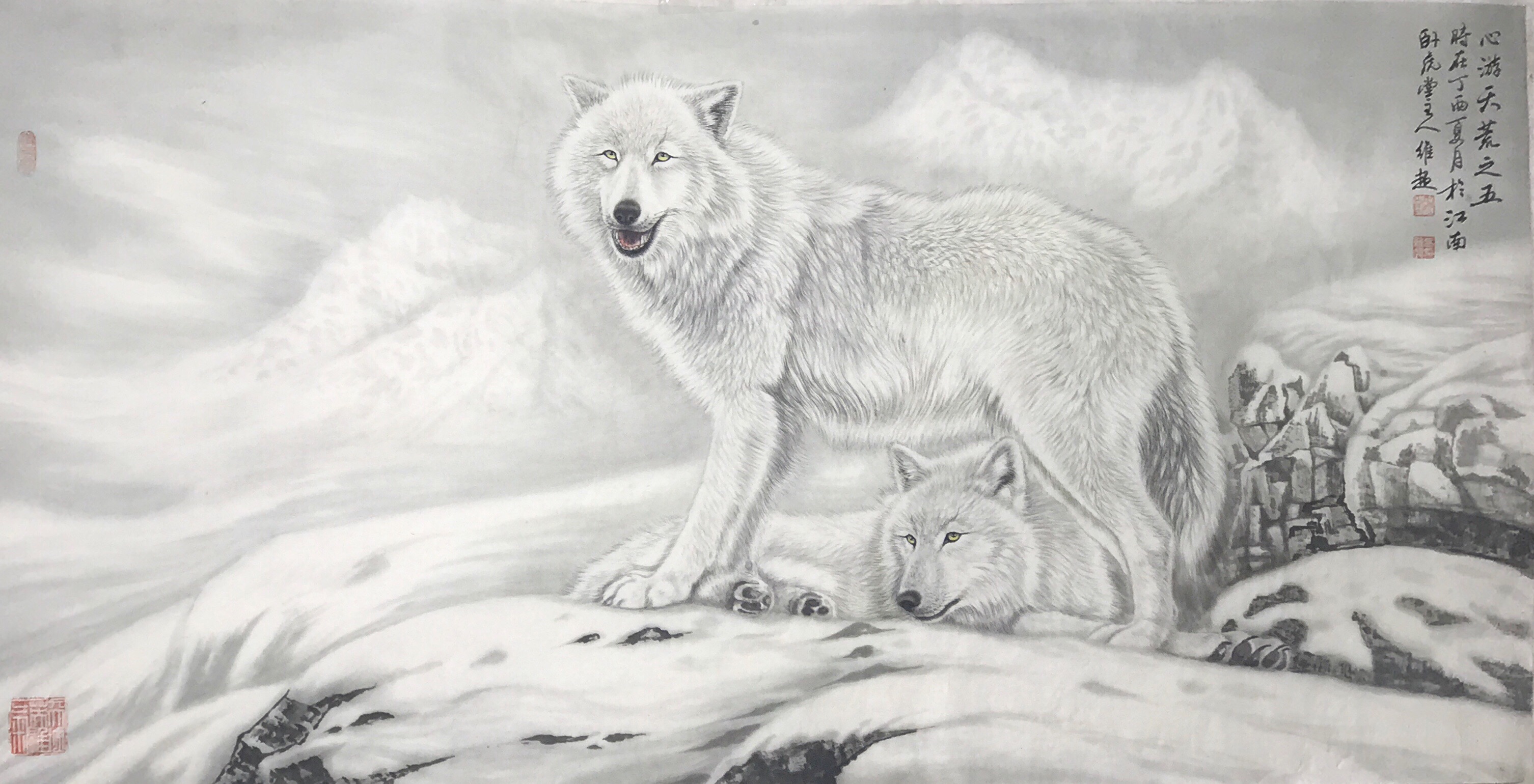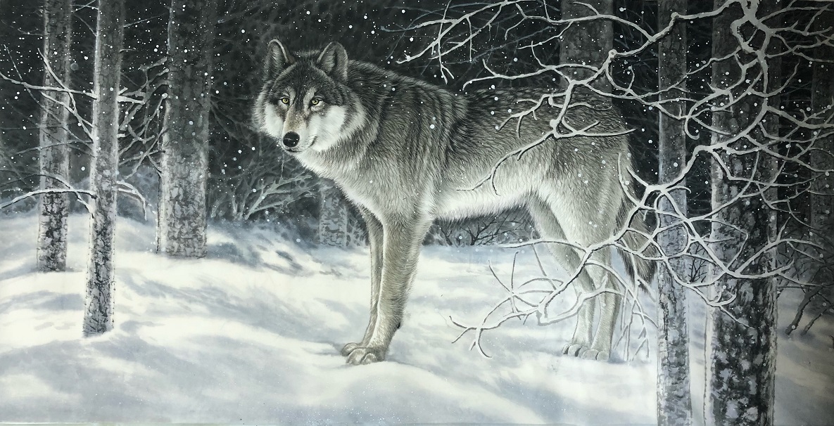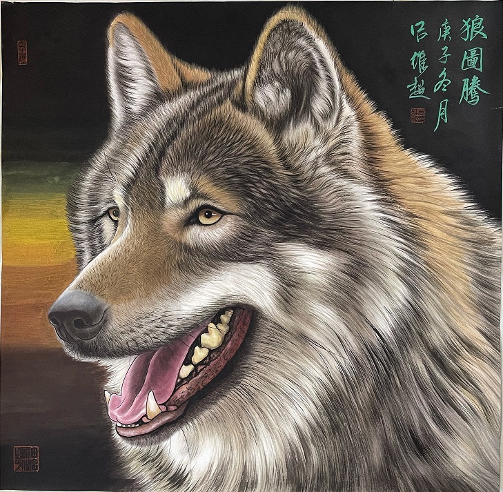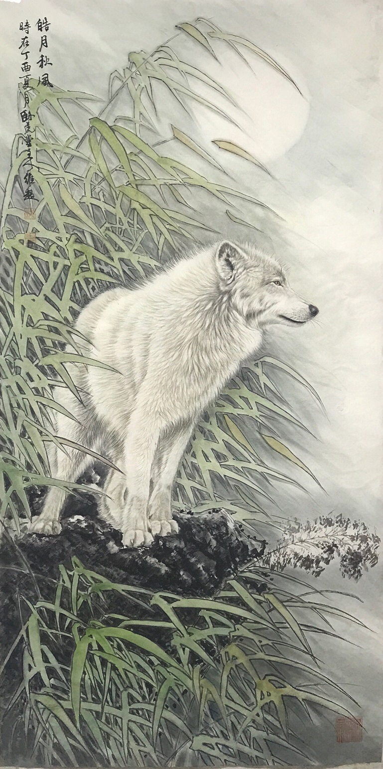 吕维超专攻动物画,并以威猛的走兽为主体,猛虎、野狼、白熊是他笔下的常客。多年来,他不断积累写生经验,在生活中挖掘素材,并对历代动物画大家的作品加以钻研、揣摩,这些努力换来了吕维超严谨精准的造型能力,他工笔勾描和敷染技法皆擅,能够把握动物特征、习性、气息、神态,并且善于构建画面整体气息。