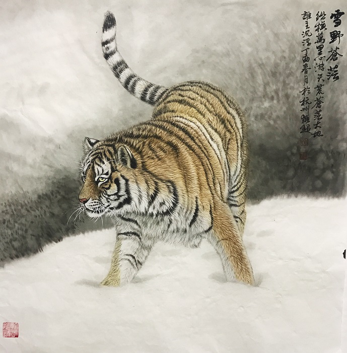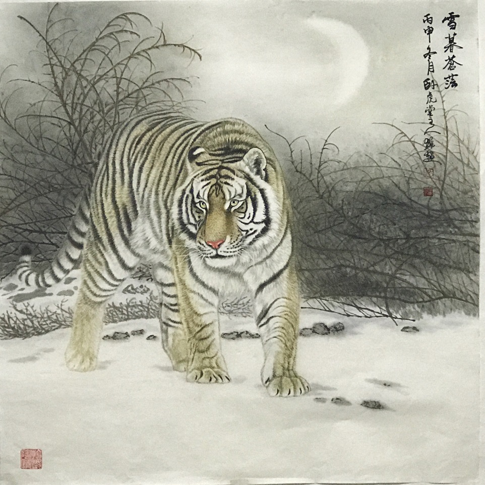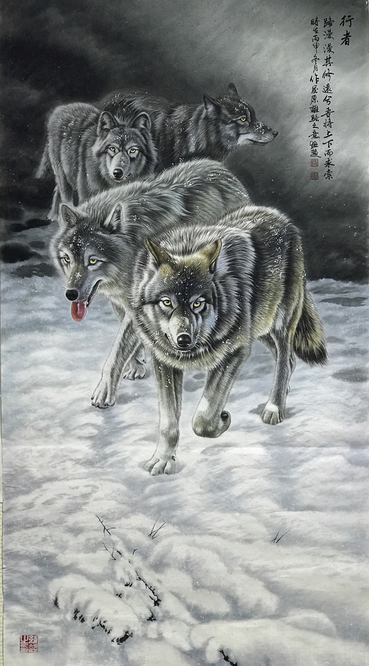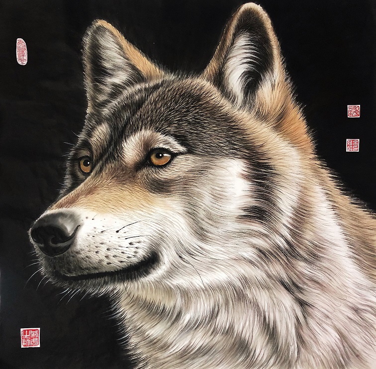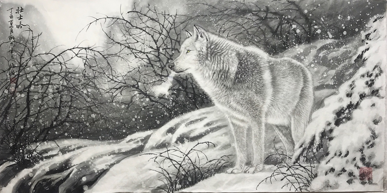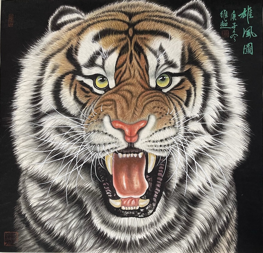 吕维超专攻动物画,并以威猛的走兽为主体,猛虎、野狼、白熊是他笔下的常客。多年来,他不断积累写生经验,在生活中挖掘素材,并对历代动物画大家的作品加以钻研、揣摩,这些努力换来了吕维超严谨精准的造型能力,他工笔勾描和敷染技法皆擅,能够把握动物特征、习性、气息、神态,并且善于构建画面整体气息。
