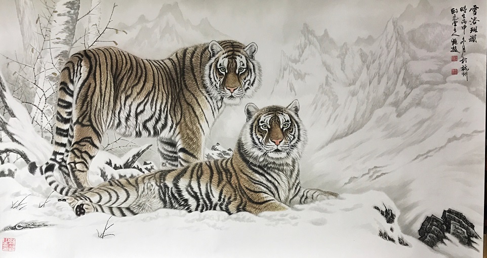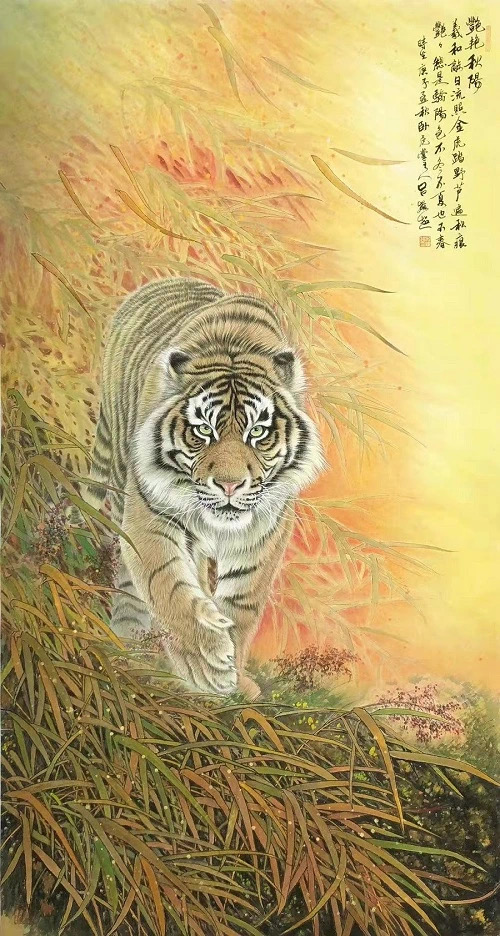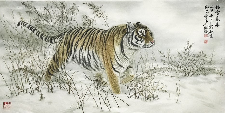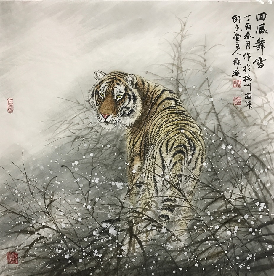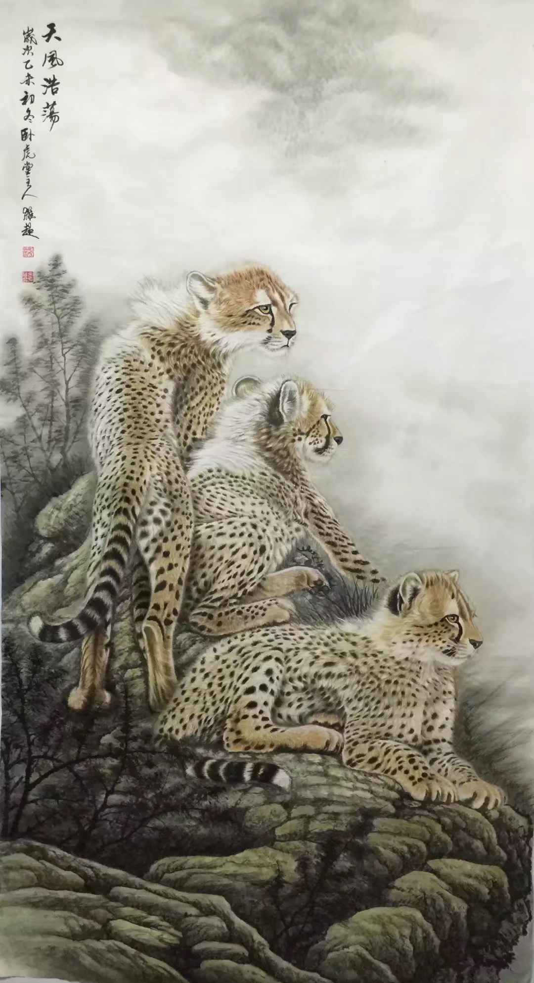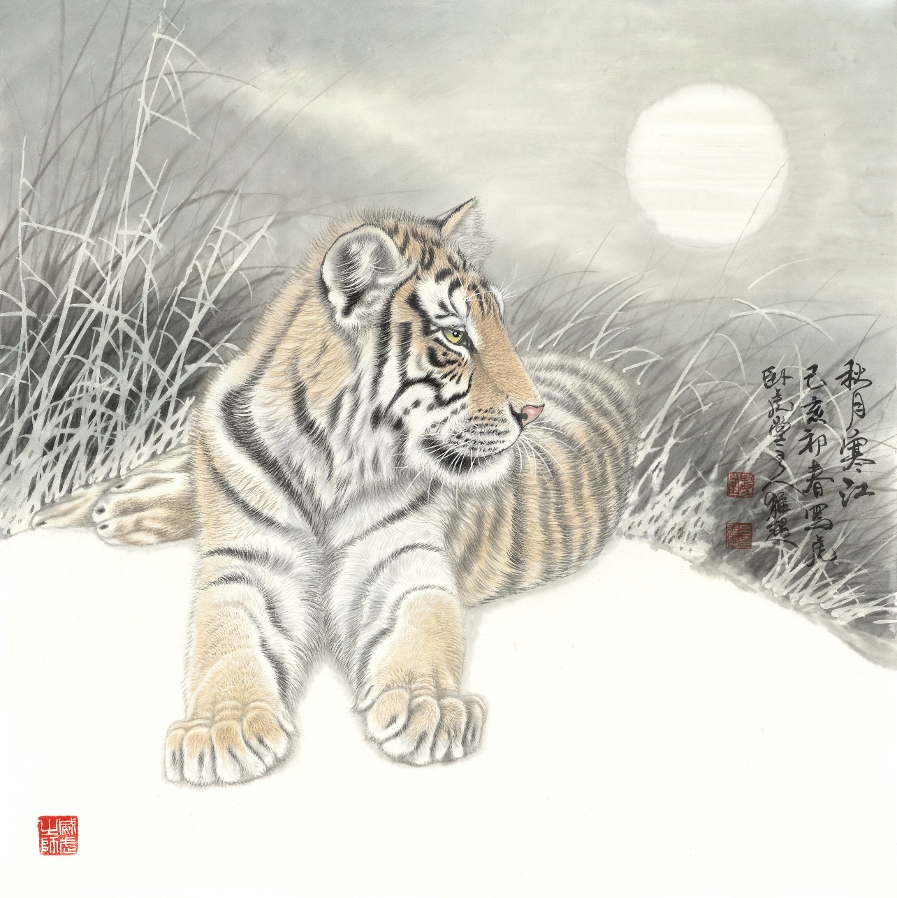 动物画一直是我国绘画体系中体量巨大、内涵宏富的种类,有着久远的历史。从战国青铜器上的错金银动物图案,到韩滉、韩幹笔下的牛马,再到北宋李公麟的鞍马画,又到近代何香凝的狮子,又有刘奎龄、刘继卣父子善画翎毛走兽,20世纪 80 年代,冯大中画虎也产生了一定影响……这些画家在时间线上从传统绵延至现代,无不丰富着花鸟走兽绘画的语汇,留下值得后人学习的中国文化遗产。而在这当中,不能忽视的还有当代画家吕维超的创作。