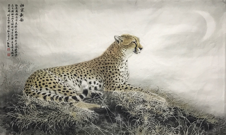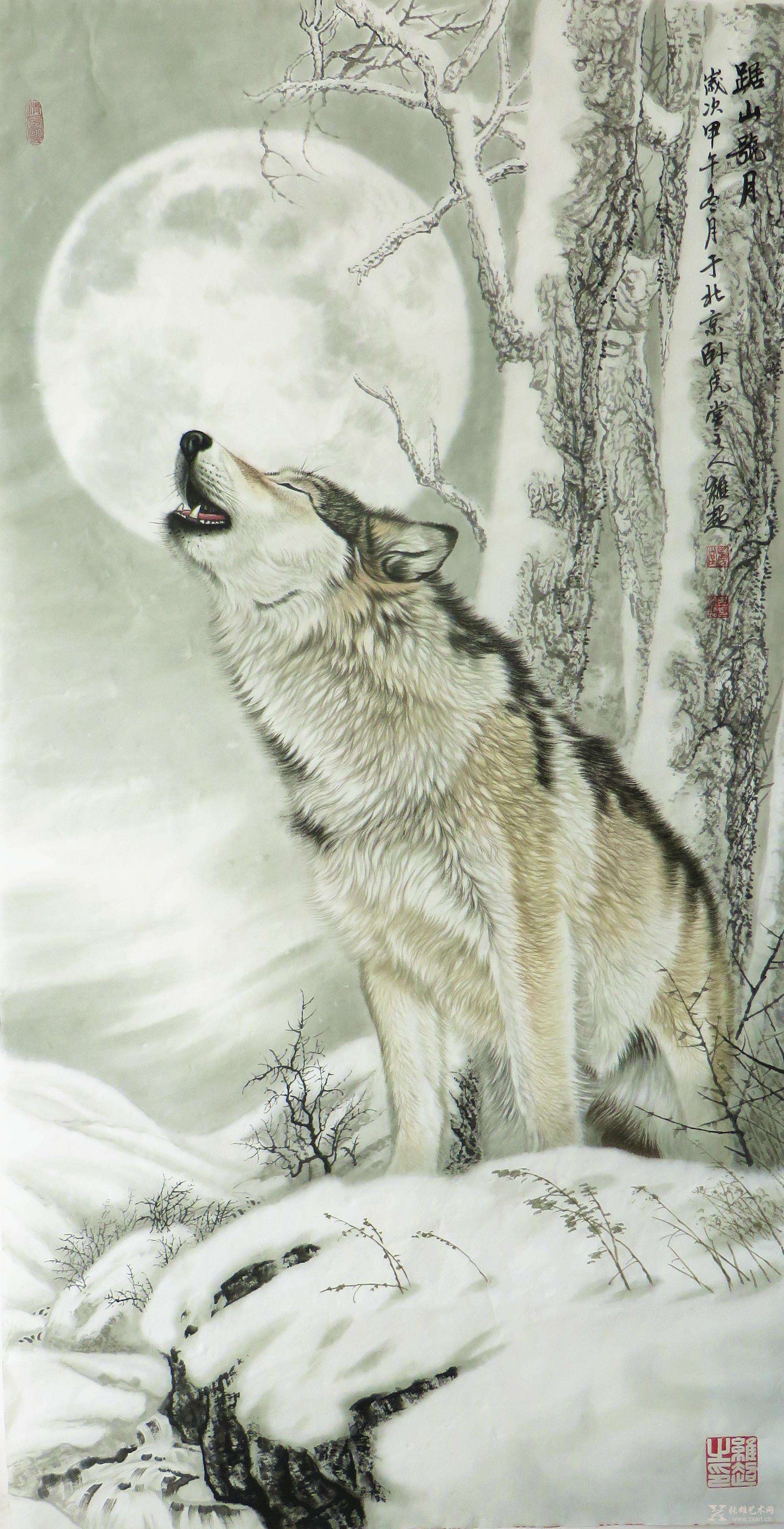 在吕维超的作品中,我们既看到工笔绘画的精微谨严,许多作品背景的营造又是水墨写意的萧疏苍凉,即便是精细得仿佛用显微镜放大的动物毛发,也不失潇洒和爽利,是宋代格物精神和中国文人画传统的有机结合。他的作品不仅是经典的中国花鸟走兽传统的延续和继承,同时也能看到西方绘画中坚实结构、绵长纵深感的影响。在吕维超的画中,很少出现高高在上的俯视的角度,动物与人的视线在同一水平面,产生某种意义上的交流。这种感受天地万物灵性的状态,在今天的画家中是少有的。透过动物那深邃的眼神,我们仿佛能看进动物心底,这既是画家人格心境的外化,同时也带有生灵自我的内化。这也是最为我们观者所激赏的,吕维超的动物画超越了技巧和艺术层面,所流露出来的大爱和大美,那是一种对生命的歌颂,对自然的热爱,是画家拳拳赤子之心,是能抵达许许多多人内心的真实情感,是经由艺术创造而生发出的昂扬向上的正能量,是古代中国画笔墨传统融汇当代文人生活气象,同时也是艺术家那无垠的想象力的凝结。