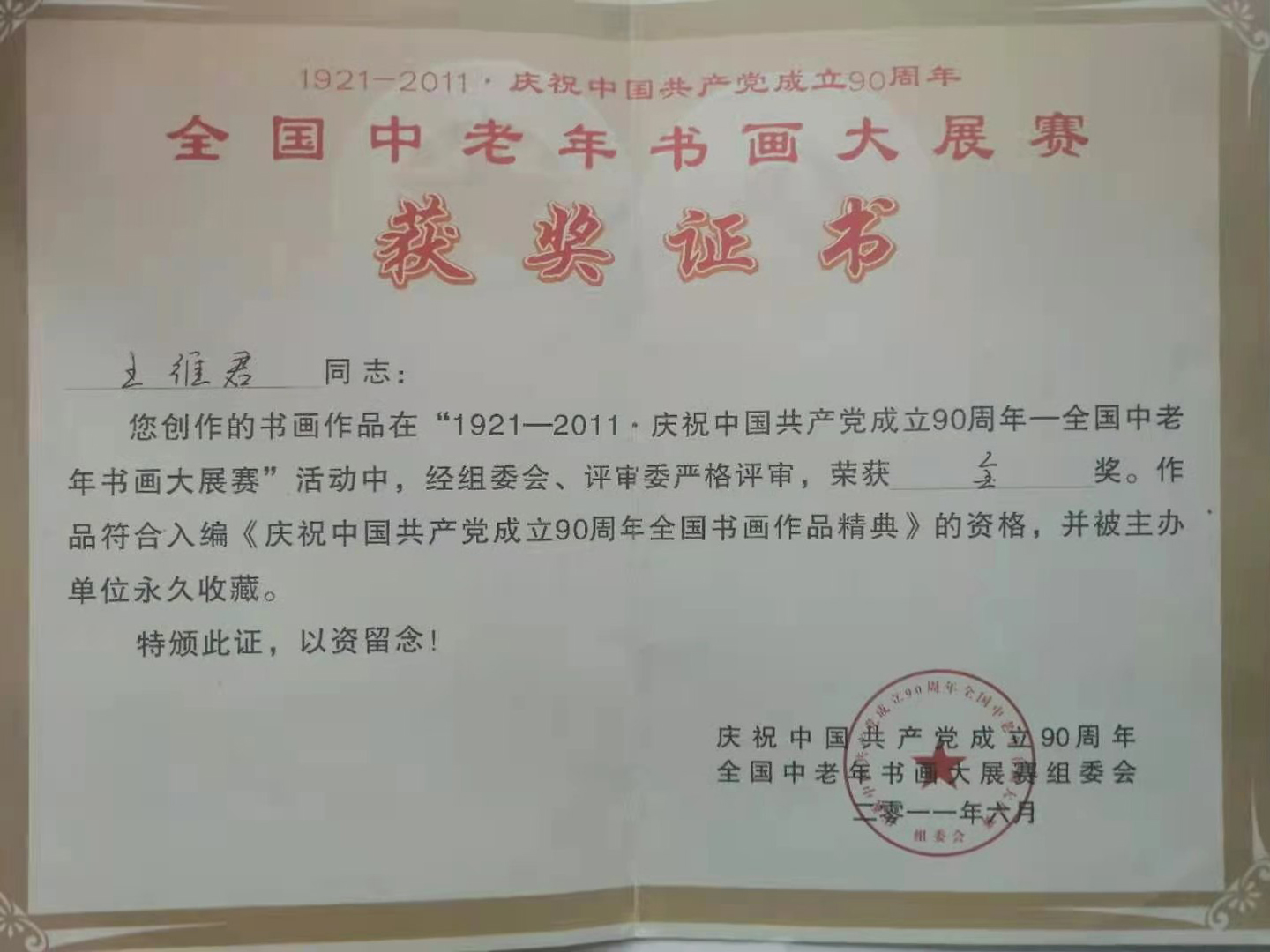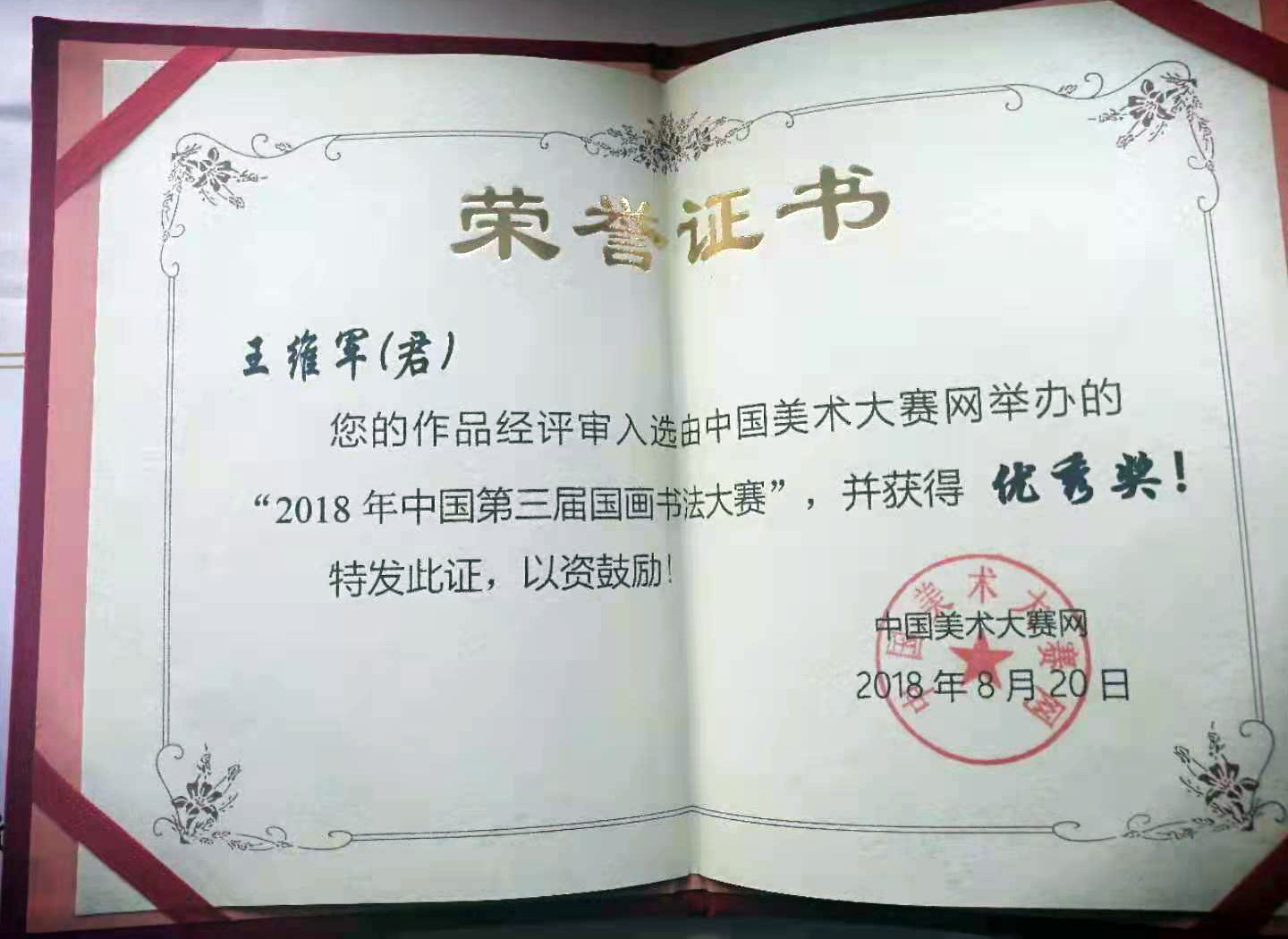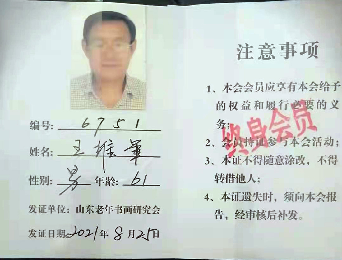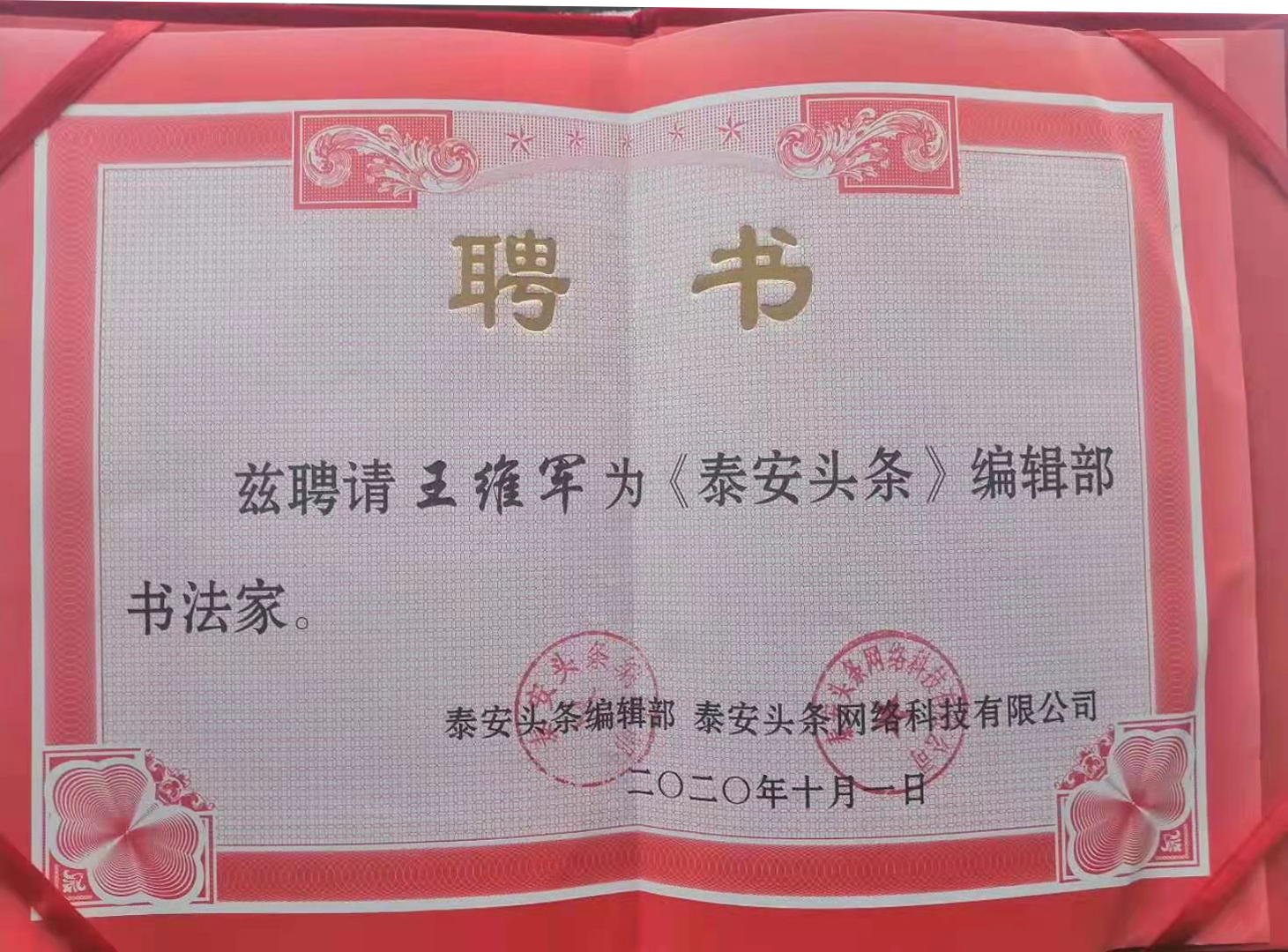 头 衔:肥城市书法美术家协会会员、泰安市老年书画摄影研究院会员、泰安市书法家协会会员、泰安头条特聘著名书法家、肥城市老年书画研究会常务理事、编委肥城市革命老区建设促进会会员、中国杰出书法艺术家。