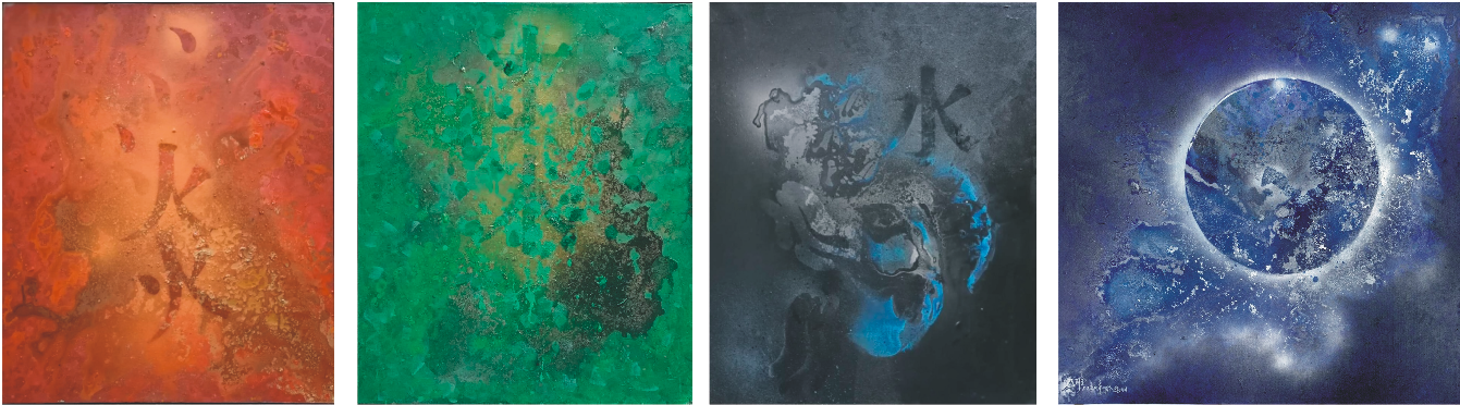 胡亚雄喜欢《易经》,“笔随心转,意由心生。”易经文化也是他创作的灵感之源。 “易有太极,是生两仪,两仪生四象,四象生八卦” (《易·系辞传》)易:“日月为易,象征阴阳,揭示阴阳循环交替之理。”“生生之谓易”。易之道,也是艺之道。