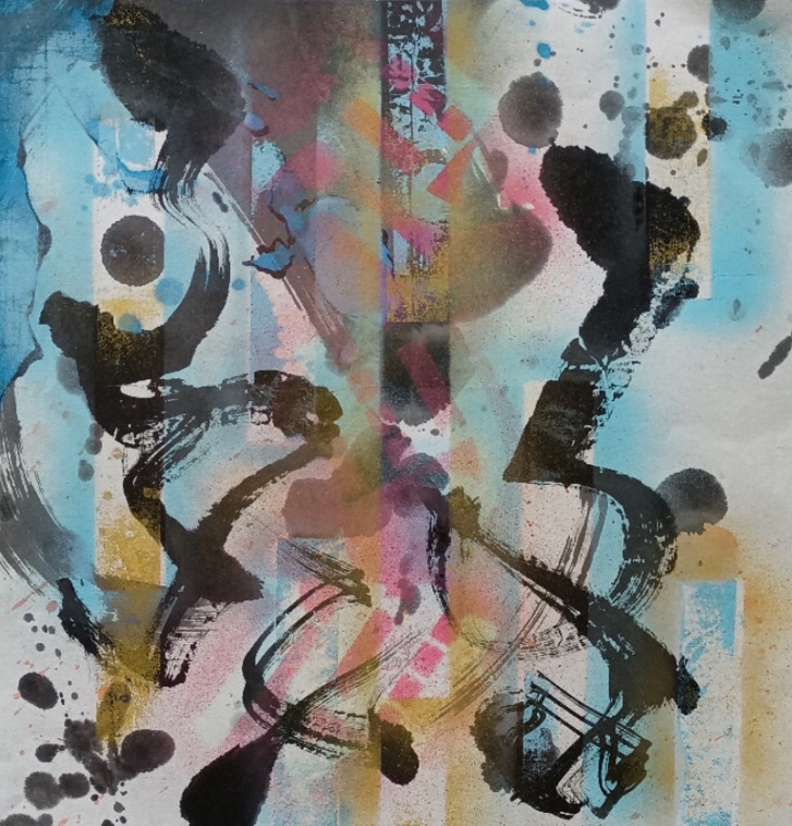 通常,抽象绘画是指“以直觉和想象力为创作的出发点,排斥任何具有象征性、文学性、说明性的表现手法,仅将造形和色彩加以综合、组织在画面上。因此抽象绘画呈现出来的纯粹形色,类似于音乐。”胡亚雄的的绘画也有这样的特点, 他从事平面设计数十年,是一位在设计领域颇有建树的设计师,有学习西方现代当艺术的背景。他从事的设计行业,以平面为主,对空间和产品设计也有着浓厚的兴趣,西方构成艺术的训练和中国传统图案设计的素养,成就了他的艺术语言和艺术特质,他的水墨艺术创作并不是完全从传统的”中国画“脉络发展而来。他没有按部就班的经历中国画家必须经过《介子园画谱》训练的过程,他对画面的经营得益于早年有一些书法练习的基础,,更多则是他从事“设计”数十年来的艺术素养和审美积累。