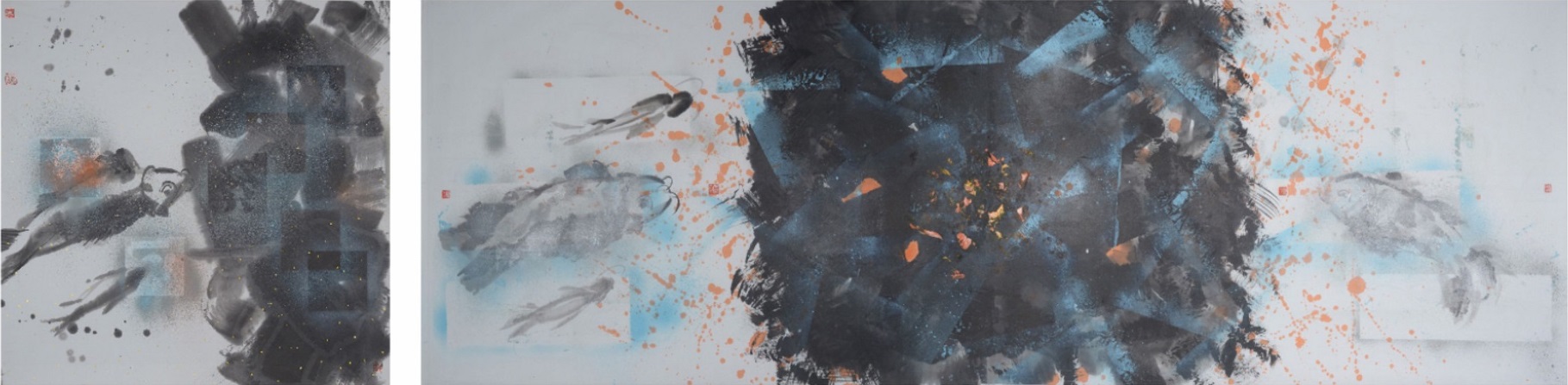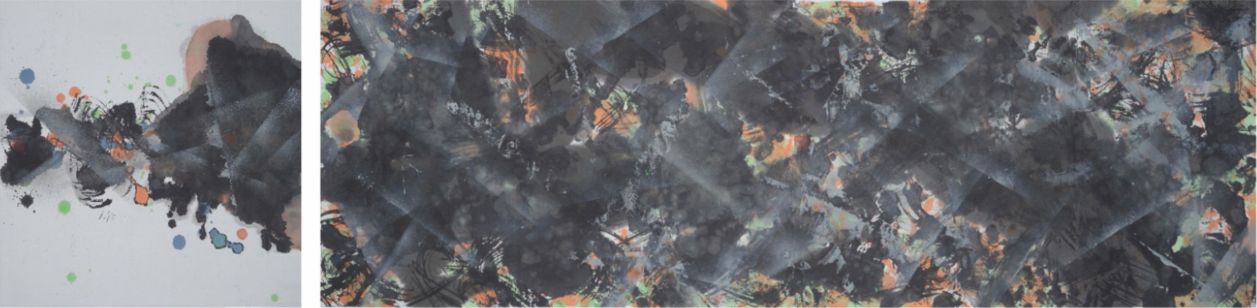 抽象绘画在中国已经有30多年的历史,由于使用表达媒材的差异,以及抽象的程度难以界定,有着并不统一的中国式称呼(当然其他国家也不例外)。拿油画笔,用油画颜料或者丙烯颜料,在画布上画画的人,得到的称号是“现代艺术家”或者“当代艺术家”;而拿毛笔,用水用墨在宣纸上画画的画家又被称为“实验水墨画家”和“当代水墨画家” 等。 胡亚雄似乎就是这么一位实验水墨画家、或者当代水墨画家。迄今为止,他还没有用油画颜料在油画布上画画,但很难排除将来他不会尝试新的媒材去表达。所以水墨的概念,我也不想在他的身上作过多的强调。我更愿意在抽象的范畴讨论他的作品。