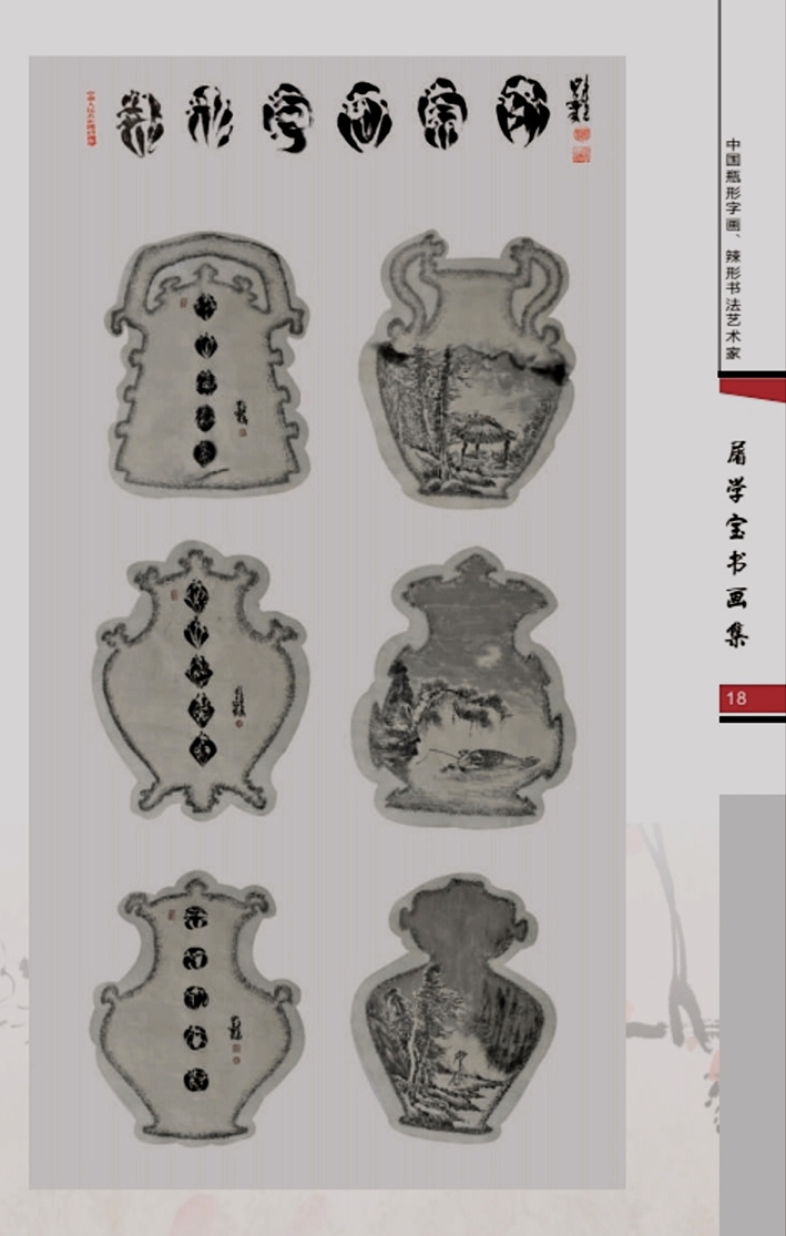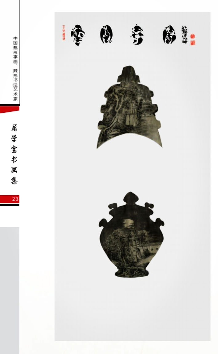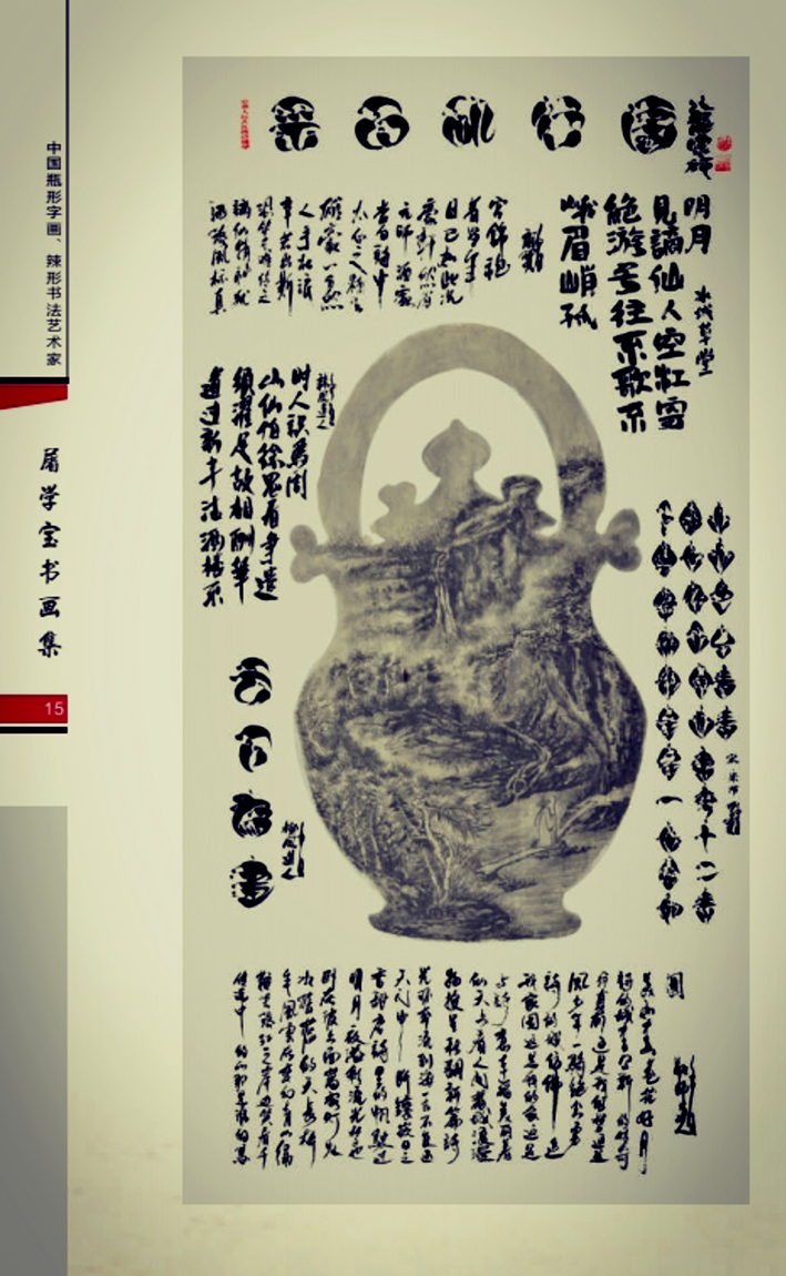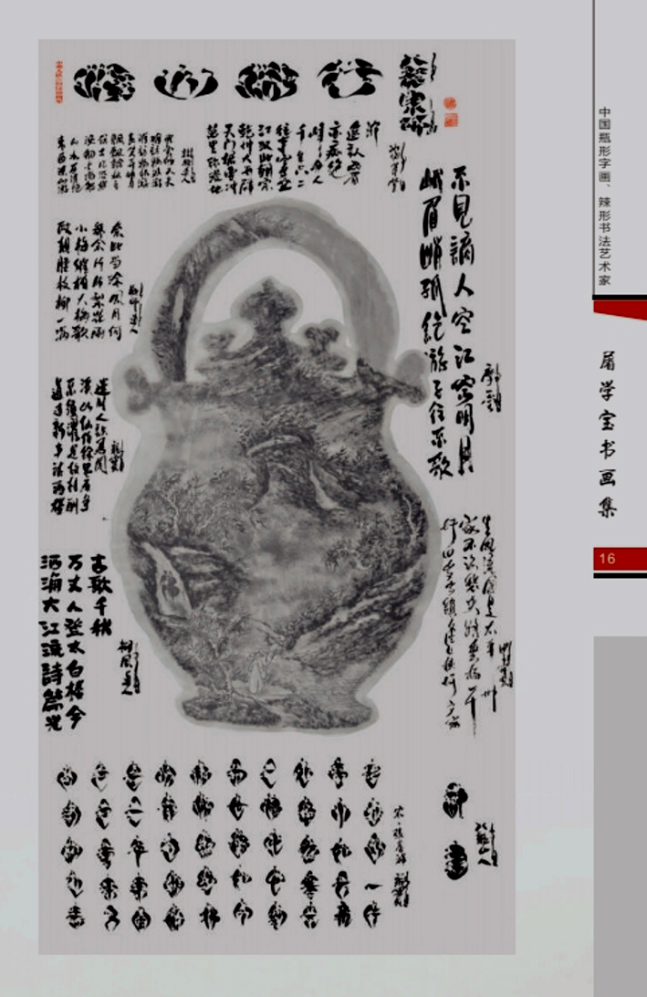 "瓶形字画"是指一种主要用在透彻的古今形象陶、青铜、瓷器、玉石器、黄金白银器等种类,小瓶子内的绘画,有人物、山水、花鸟等无所不及一系列和自创"辣形字画"柳体、鱼体、鸟体、竹体、叶体、龟园书体等无所不及创作。可以说是国际创始人。学宝深切体会而自求:以一种心绪来展示中国传统文化自然而生的"澄怀味象"从"天人合一"中去拓展绘画,将传统的中国绘画解读一种新的人文精神境界,去灵牲入化的"如梦家园"。孔子语:"坐而渝道,不如起行之"…