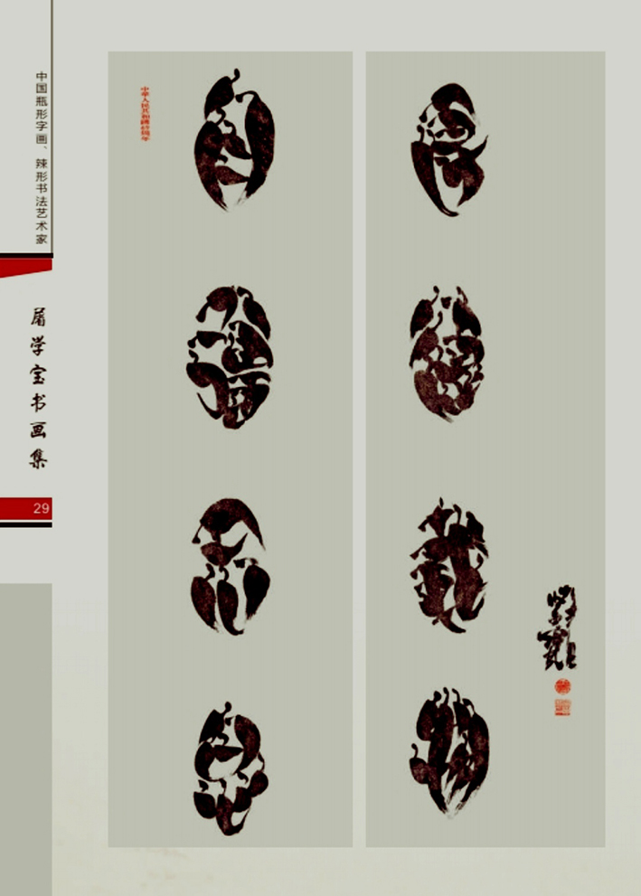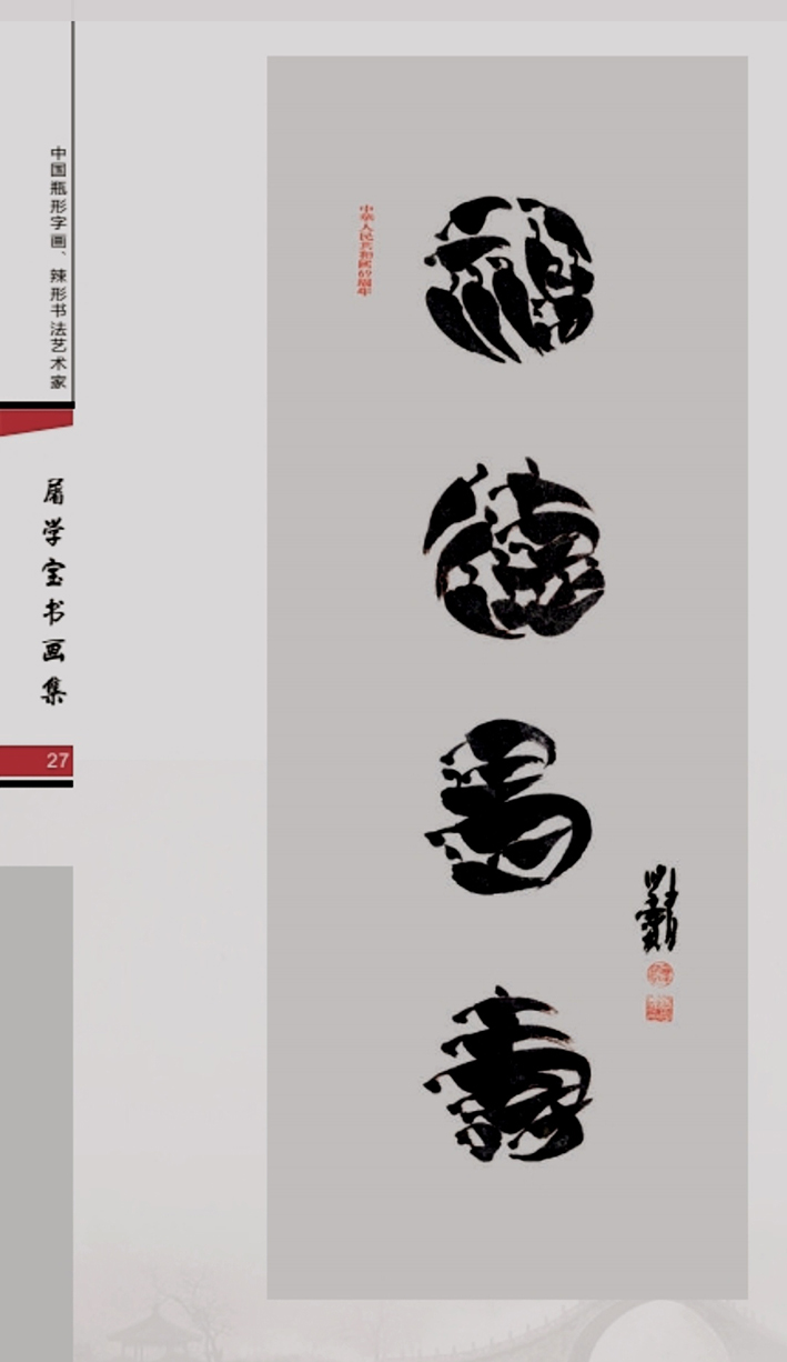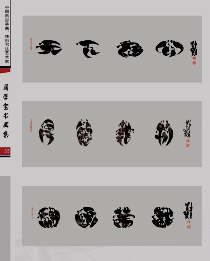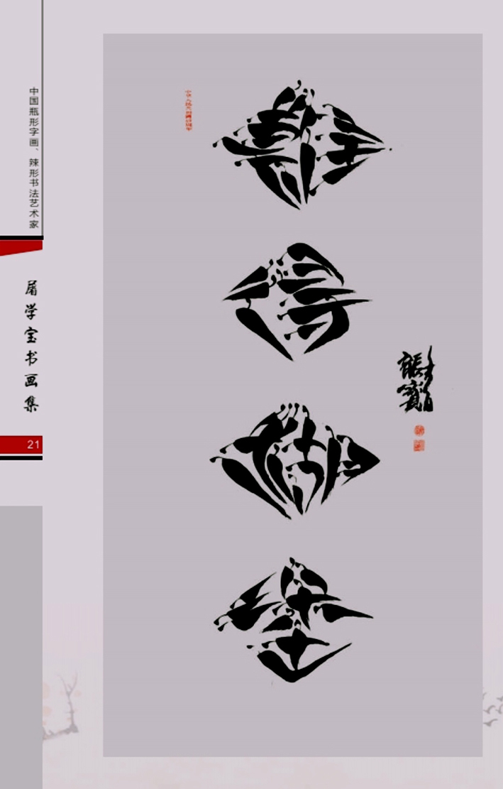 "瓶形字画"是指一种主要用在透彻的古今形象陶、青铜、瓷器、玉石器、黄金白银器等种类,小瓶子内的绘画,有人物、山水、花鸟等无所不及一系列和自创"辣形字画"柳体、鱼体、鸟体、竹体、叶体、龟园书体等无所不及创作。可以说是国际创始人。学宝深切体会而自求:以一种心绪来展示中国传统文化自然而生的"澄怀味象"从"天人合一"中去拓展绘画,将传统的中国绘画解读一种新的人文精神境界,去灵牲入化的"如梦家园"。孔子语:"坐而渝道,不如起行之"…