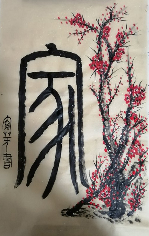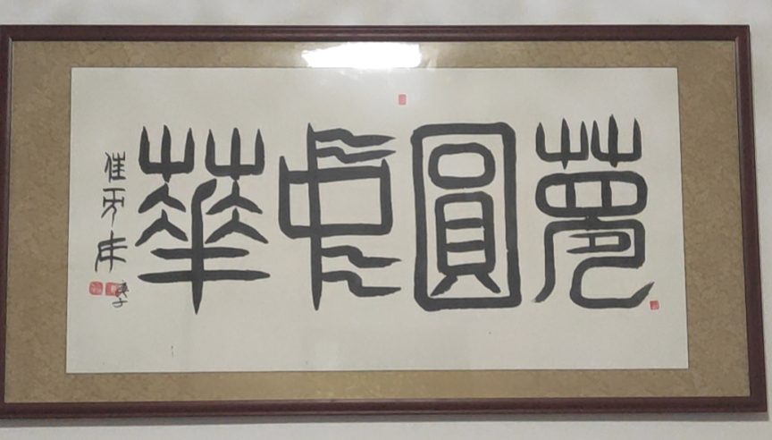 她的甲骨文书法,随势布局。巧妙地因文之形状、走势而著字。字之行间距,若有若无,但基本成行以吻合阅读习惯。还有,字体大小布局自然有序。在黄家芳的书法作品里,字体大小自然,因字而定,大则大之,小则小之。让人在阅读中,感到一种清新自然,脱俗不同的享受。再者,互文(字组)运用得当,有的两字是因互文而产生,但更多的已形成了字组,提高了章法布局的方便与美观。最可贵的是,她有机地利用大面积留白,尽管是实用性的原因造成的,但也尤具情味。总之,黄家芳的甲骨文书法,严谨中有着充分的自由。她很好地把握好书法的“度”:如果写的太严谨,就失去生动性,如果太随意,则少却了文静之质。在传承和创新的过程中,黄家芳自成一体,既有传统的远古韵味,又有现代书法不可替代的丰润。所以,观赏她的甲骨文书法,也是一种怡情怡性的精神享受。