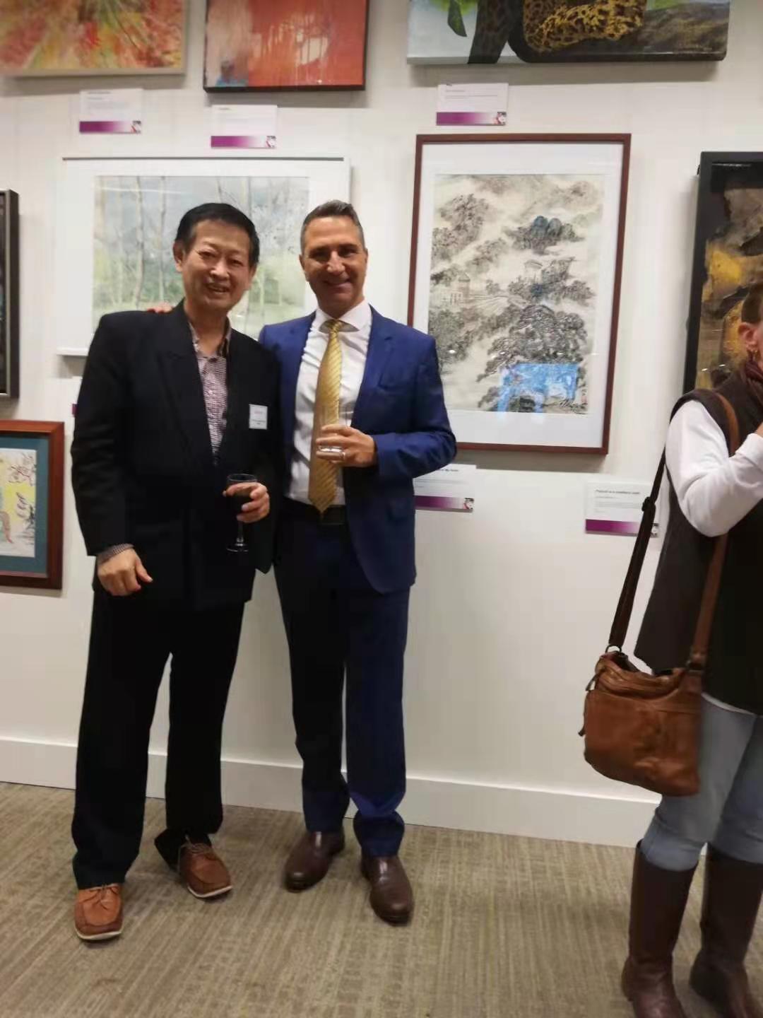 他在澳洲多次举办画展,受到当地居民的喜爱。画作为广大书画爱好者,收藏爱好者,以及当地政府机构收藏。现在是澳大利亚中国传统文化协会会长,澳大利亚文化艺术研究院副院长,澳大利亚炎黄画院艺术顾问。