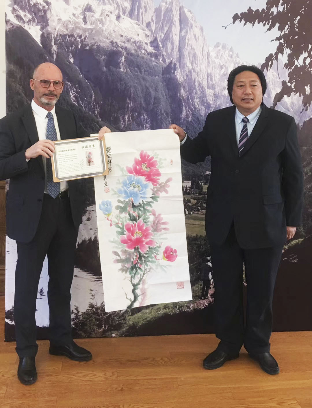 2019年11月29日参加阿尔巴尼亚共和国国庆日,中方送给阿尔巴尼亚的艺术家,我的牡丹,艳冠群芳大使馆收藏。