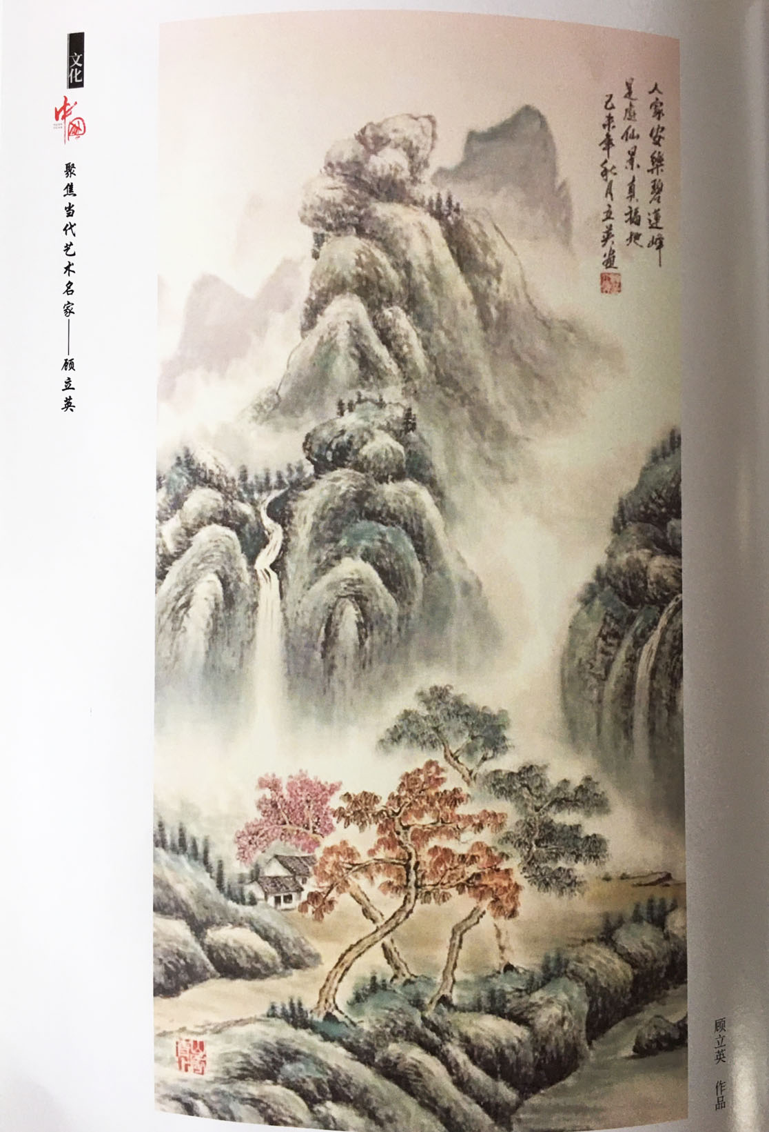 中国画传承到今天,技法流失的现象已经相当严重,纵观画坛,近乎很难再见到富有传统韵味觉感的作品,不守传统,旨糟技浮。中国画的传统正品,非常需要有人以超质作品匡扶时代,用传统的主旨的技法,让人们重温中国画的东方意韵醉美。很显然,著名画家顾立英先生,就肩负了这样的艺术使命,他是一位痴心绘艺的艺术家,精修专技,并且执守传统,回归唐宋元明,成为画坛师古大成的典范人物!鉴别一位画家是不是有传统真功力,牡丹画题可为试金石。俗家画牡丹,形态可成,韵味不足,笔法可修,彩技不佳。也就是“画牡丹还有模样,却无品位”的结果。顾立英画牡丹,绝非俗家功浅,而是笔墨直追艳雅气质,充分体现了艺术家画牡丹形韵双得的艺术全能。他的牡丹以小写意为主体画法,追求的是妙在似与不似之间的和谐恰当,传统精英画家的笔法与墨韵体现方式,被他全悉把控,勾线显动逸,无风显生动,色彩趋悦目,艳雅成馨香。因为笔法与彩韵有相当强大的艺术表现力,所以生发出强烈的艺术感染力,观赏这样的牡丹作品,感觉到的不仅仅是画法的精致,还在于格调的传统雅观。更为可贵的是,顾立英的牡丹画在承接传统功力的框架下,又非常重视当代人审美取向与古人审美取向上的变化与差别,在色彩的铺陈上更显丰富多彩,彩意饱满,盎然悦目,把绘画牡丹真正提升的“美之术”的高度,画面的美观质量极显突出,富有张力与吸引力的牡丹风情,在自然牡丹园里或许看不到,但是在他的牡丹画里却可以体味得到。功出自然超自然,这就是顾立英先生师古传统,却不趋拘泥的创建之功,也是笔墨紧随时代审美的典范进取。所以从牡丹画的高端品位来论,顾立英就是一位传统正宗丹青文化的继承大家,当然也是开拓进取,不限于旧范的执着前行者!当然,要体会顾立英艺术作品传统正宗的艺术魅力,除了看他的牡丹作品,还应该看他的山水作品。花鸟与山水,中国画题的两大代表门类,得一门可方家,得两门绝然是大家,顾立英花鸟山水双功,大家之功,牡丹画以艳雅为功,山水画则以士风为能。