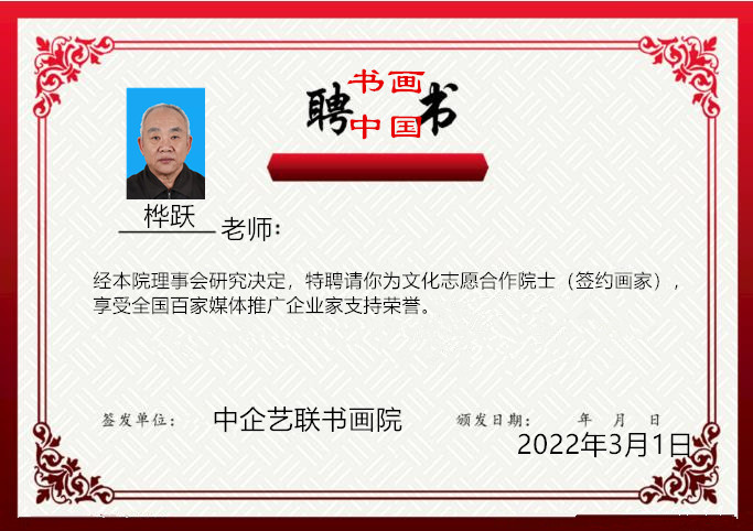 中企艺联书画院院士(书画中国频道全国推荐画家)